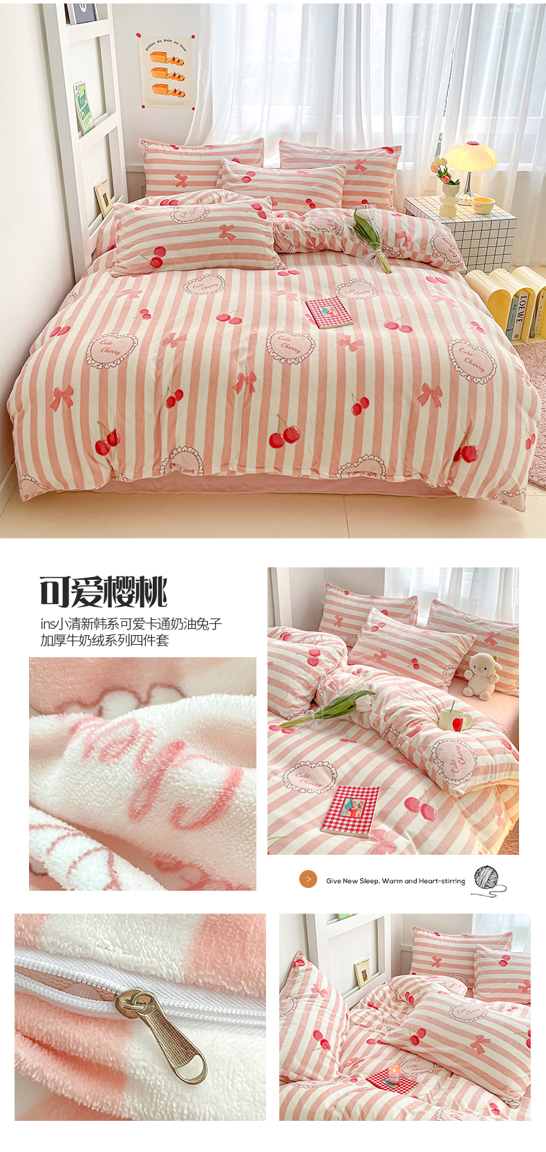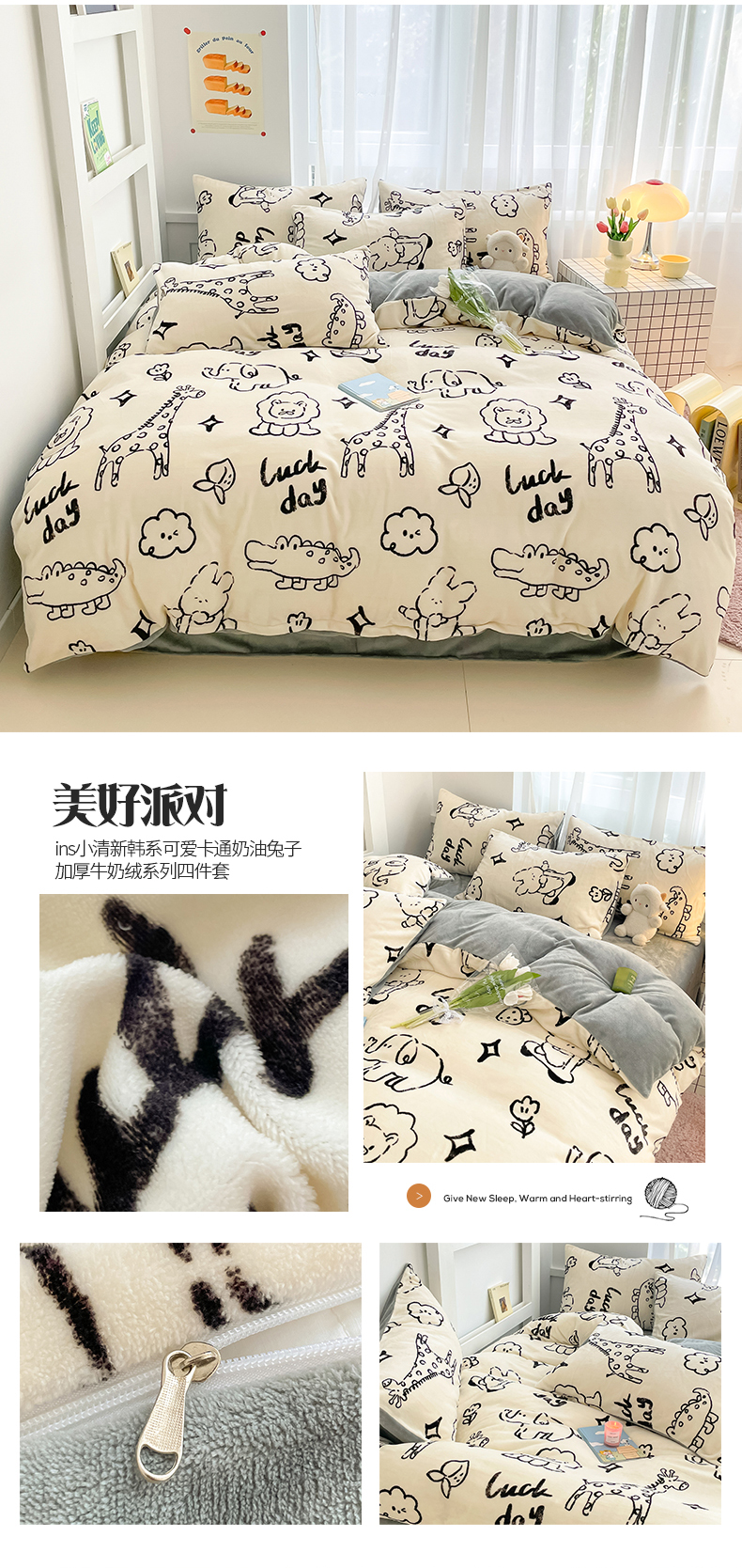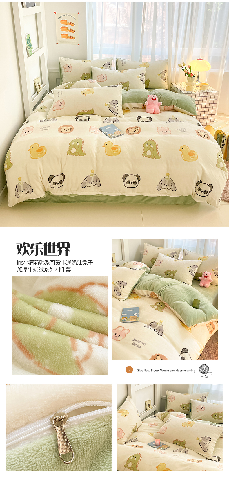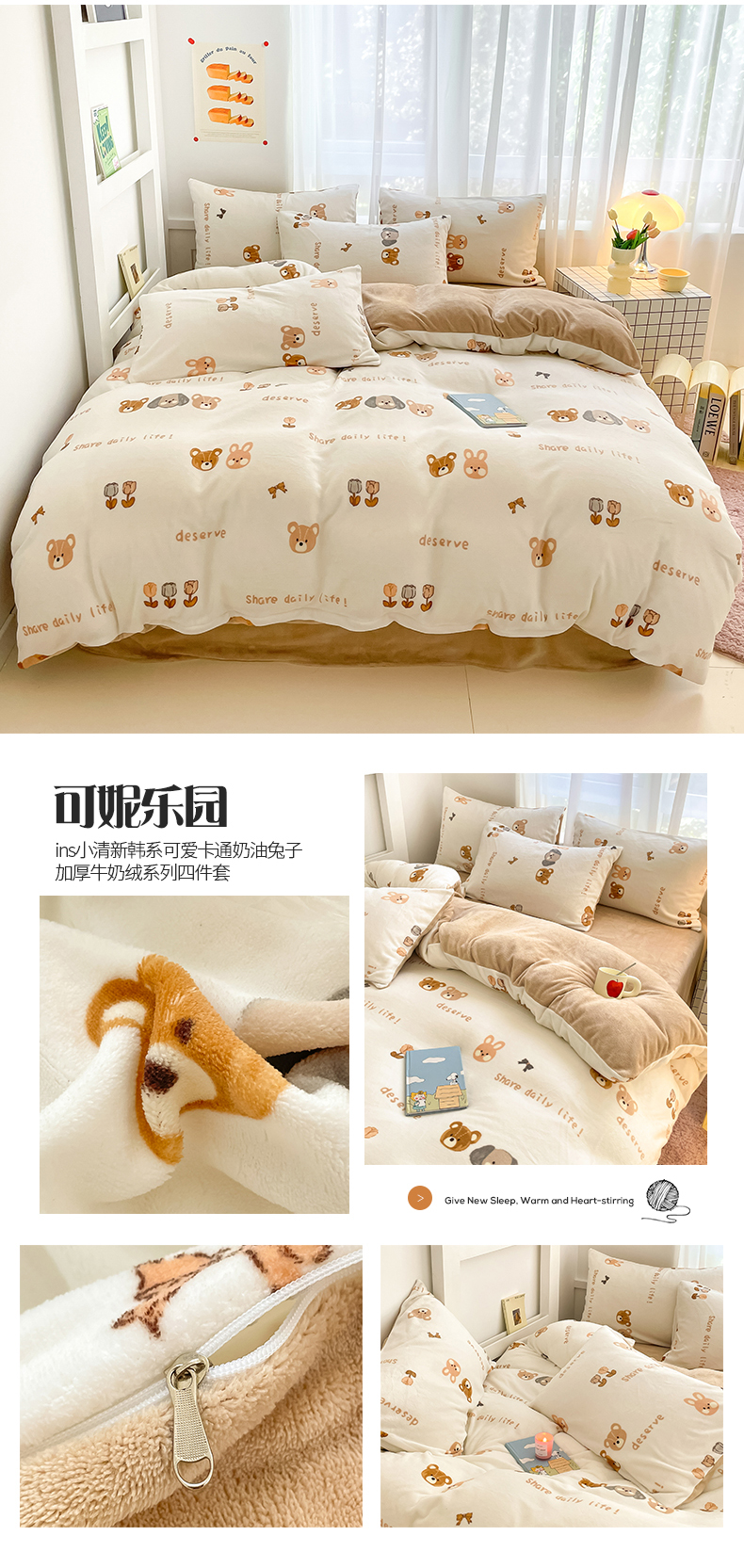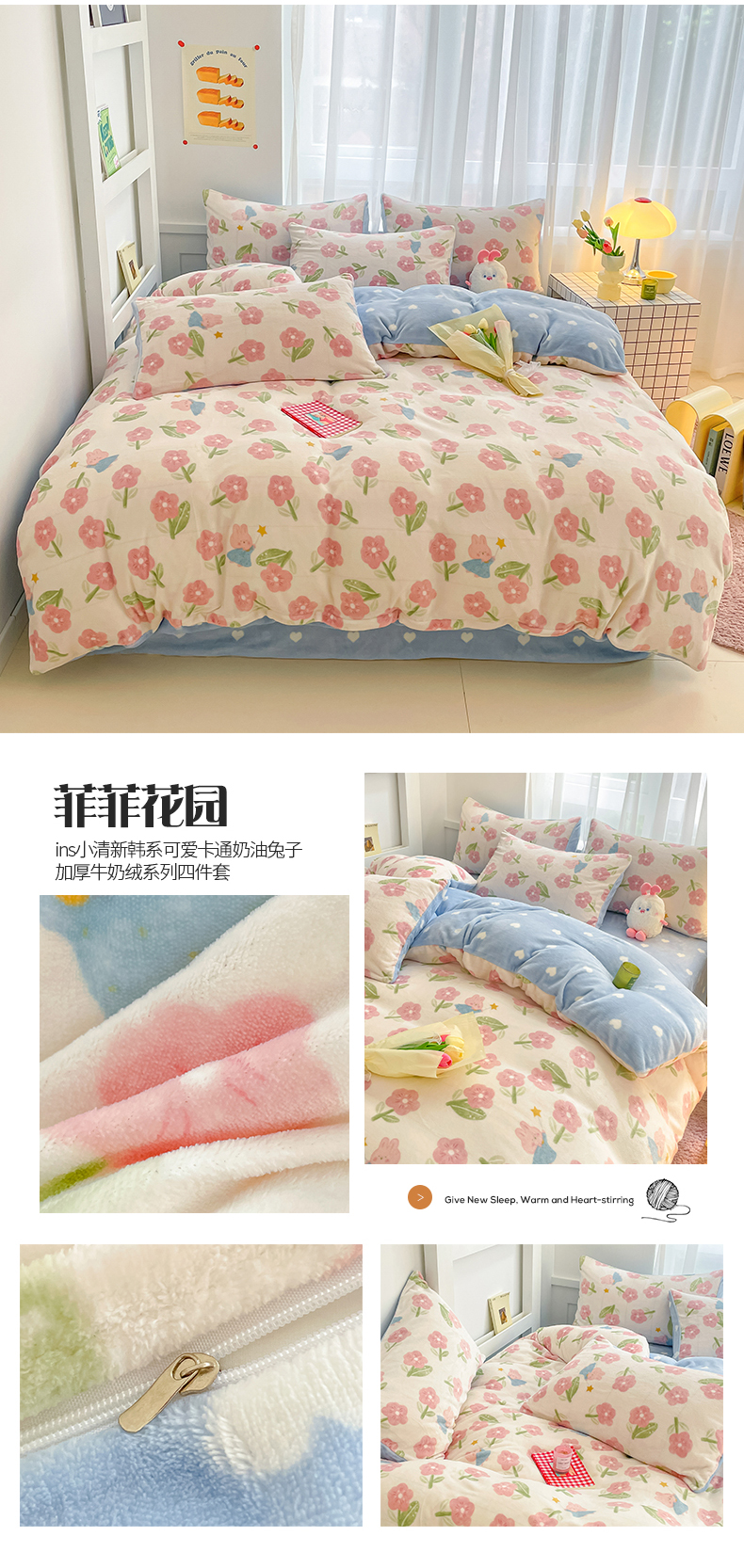 (总)桃子 2023新款ins小清新韩系可爱卡通奶油兔子加厚牛奶绒系列四件套详情第三批