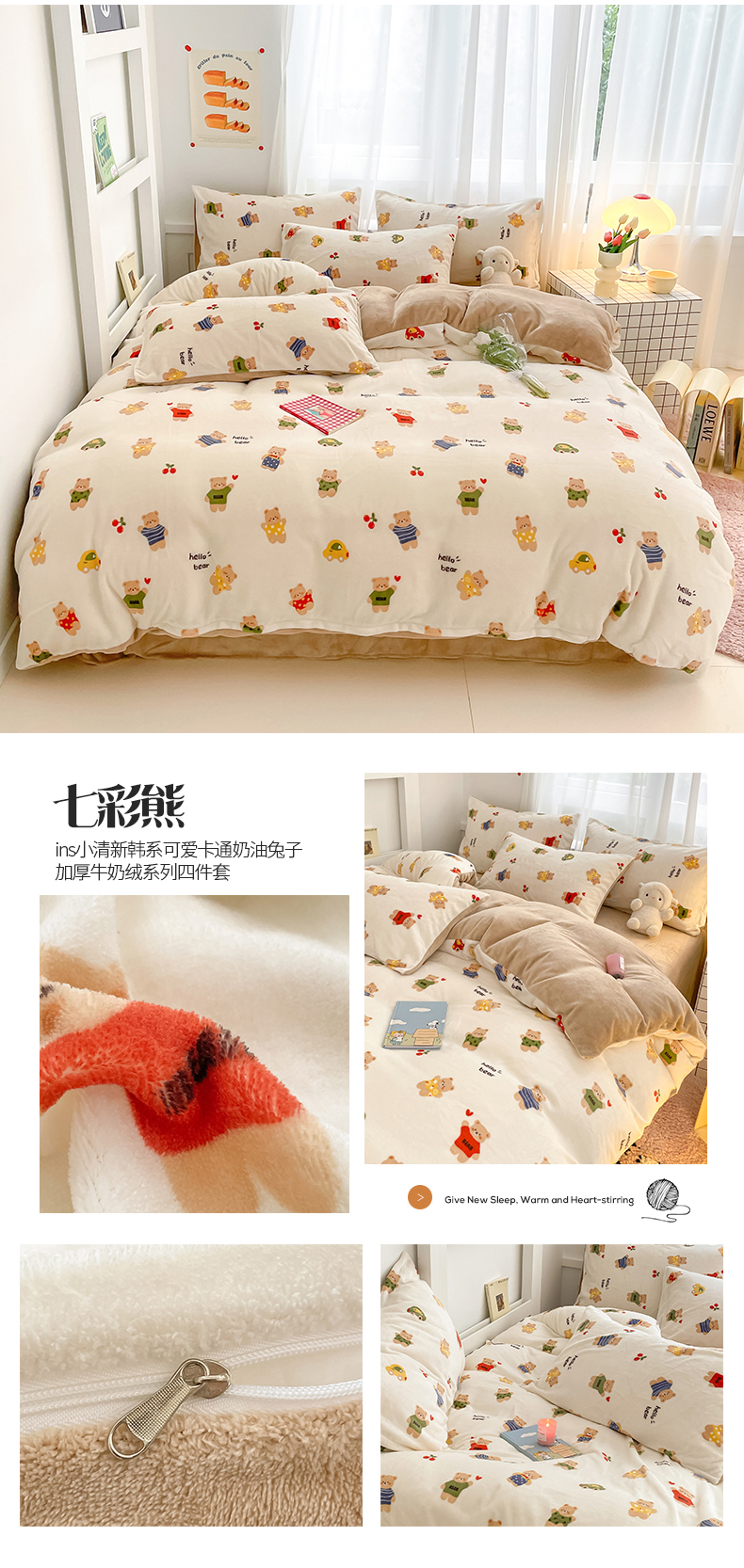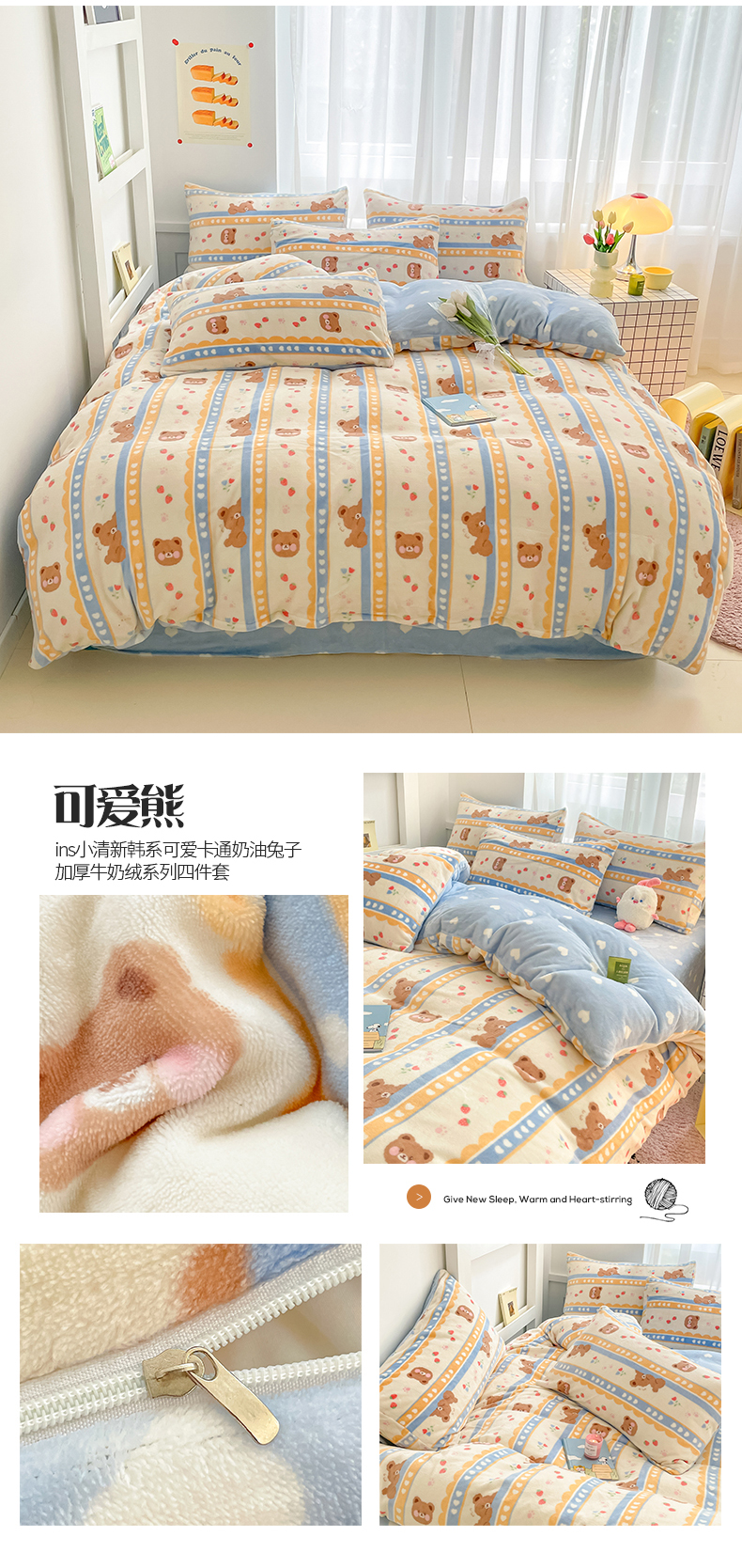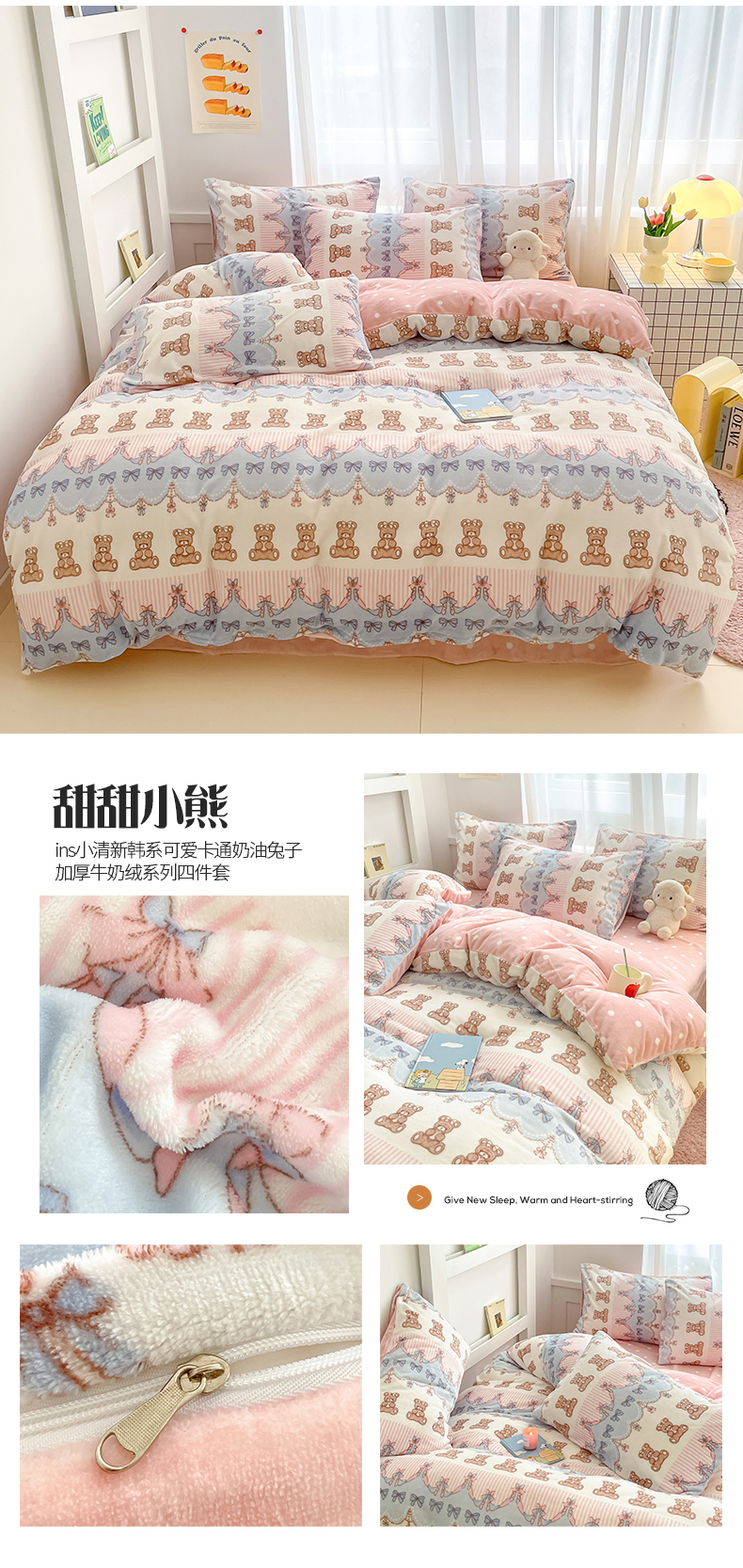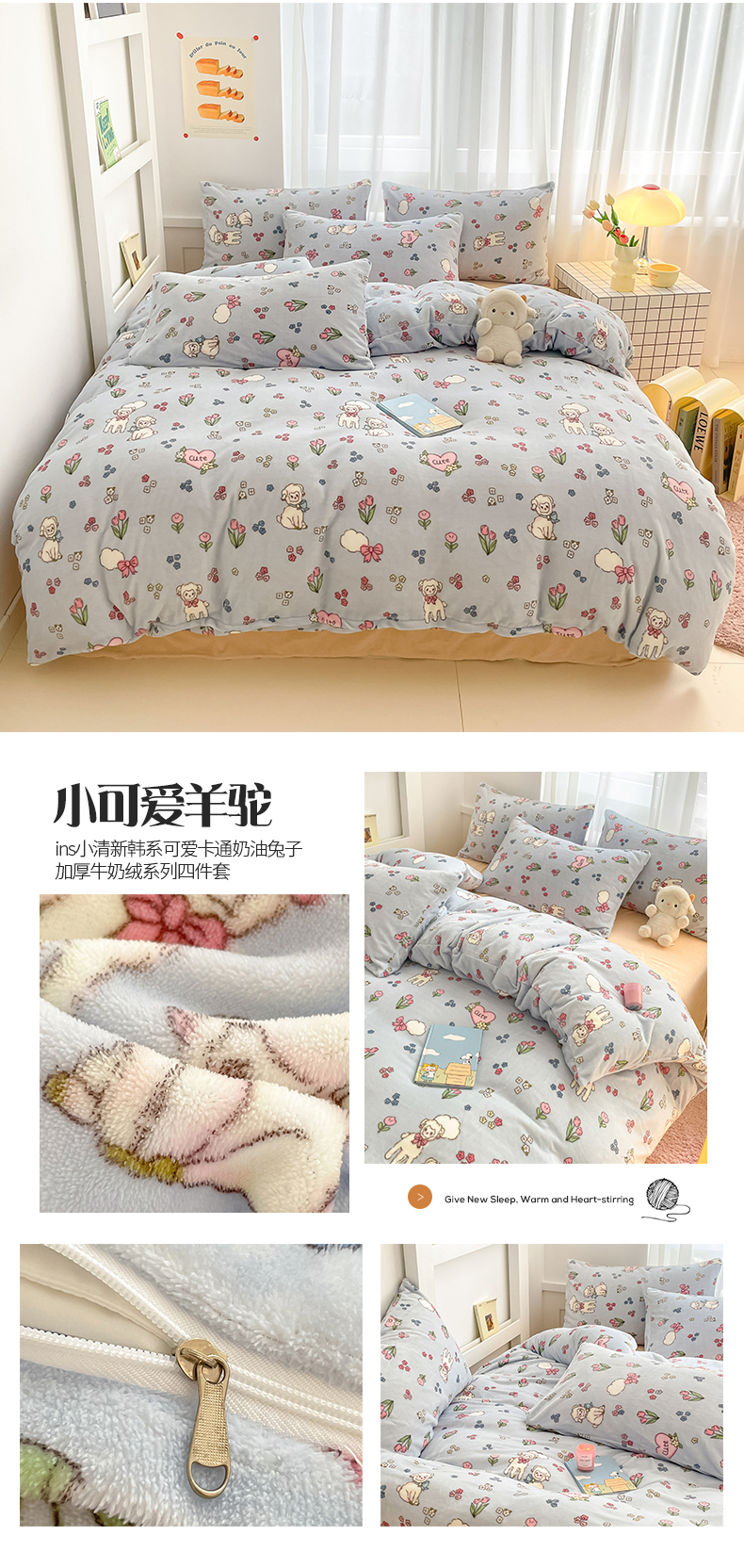 (总)桃子 2023新款ins小清新韩系可爱卡通奶油兔子加厚牛奶绒系列四件套详情第三批