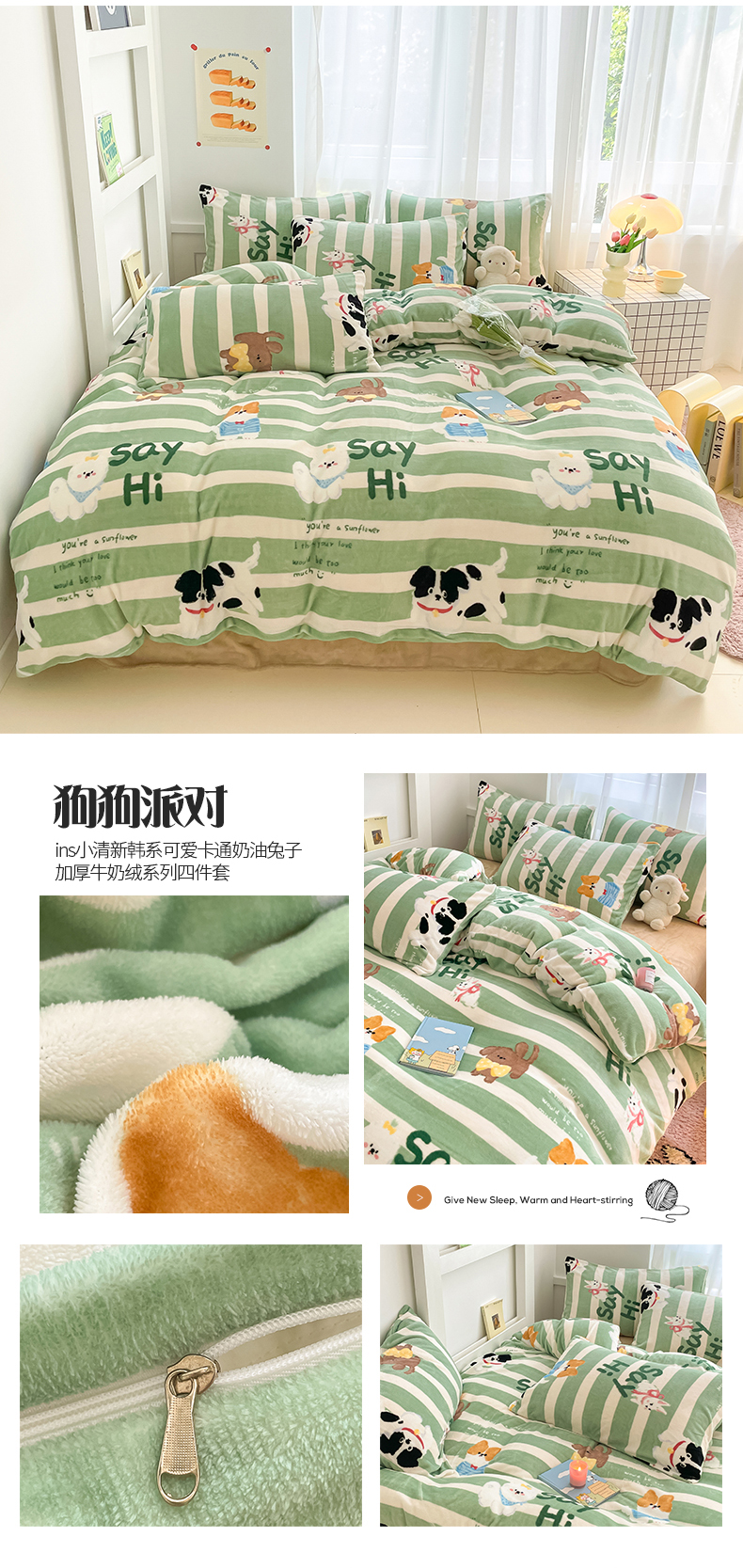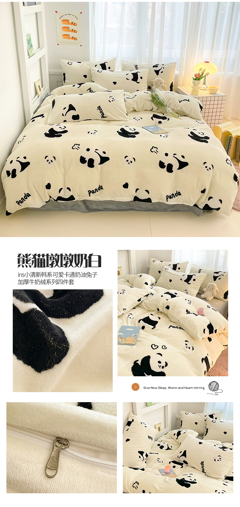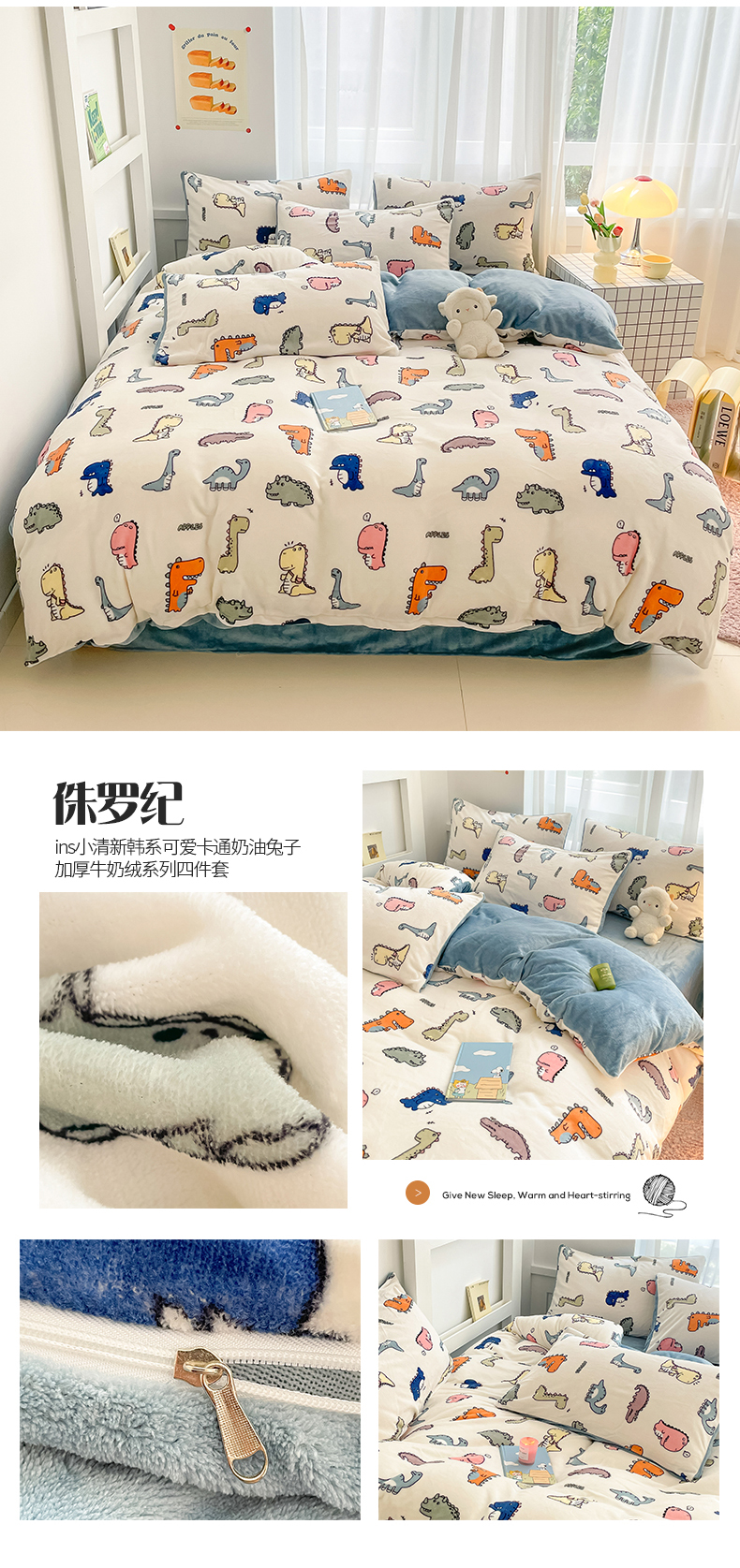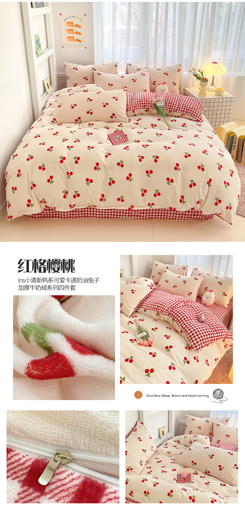 (总)桃子 2023新款ins小清新韩系可爱卡通奶油兔子加厚牛奶绒系列四件套详情第三批