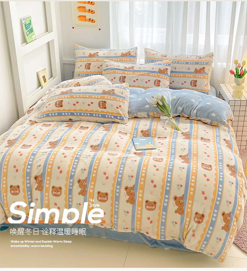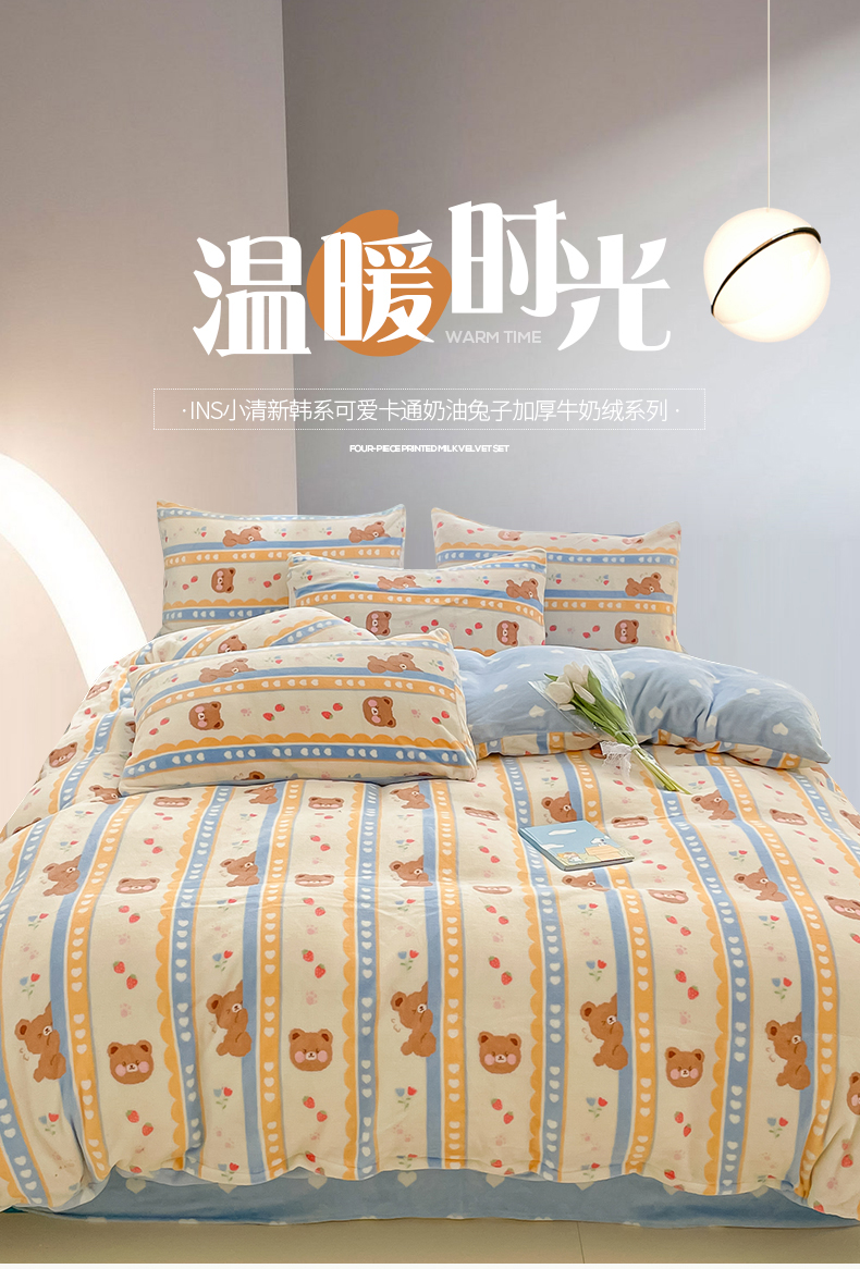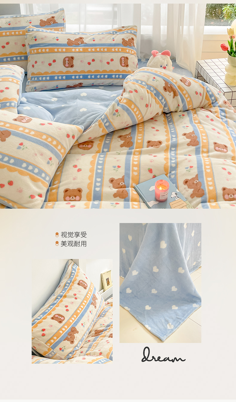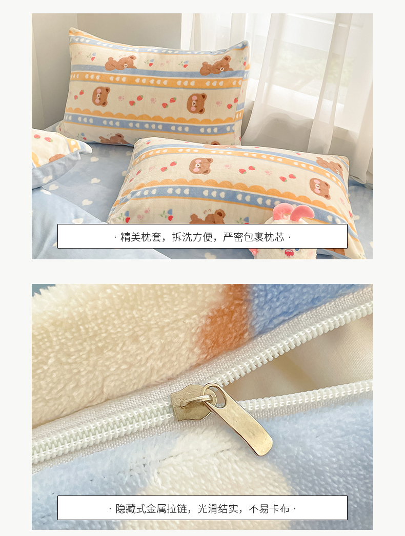 桃子 2023新款ins小清新韩系可爱卡通奶油兔子加厚牛奶绒系列四件套详情第三批 绒-可爱熊