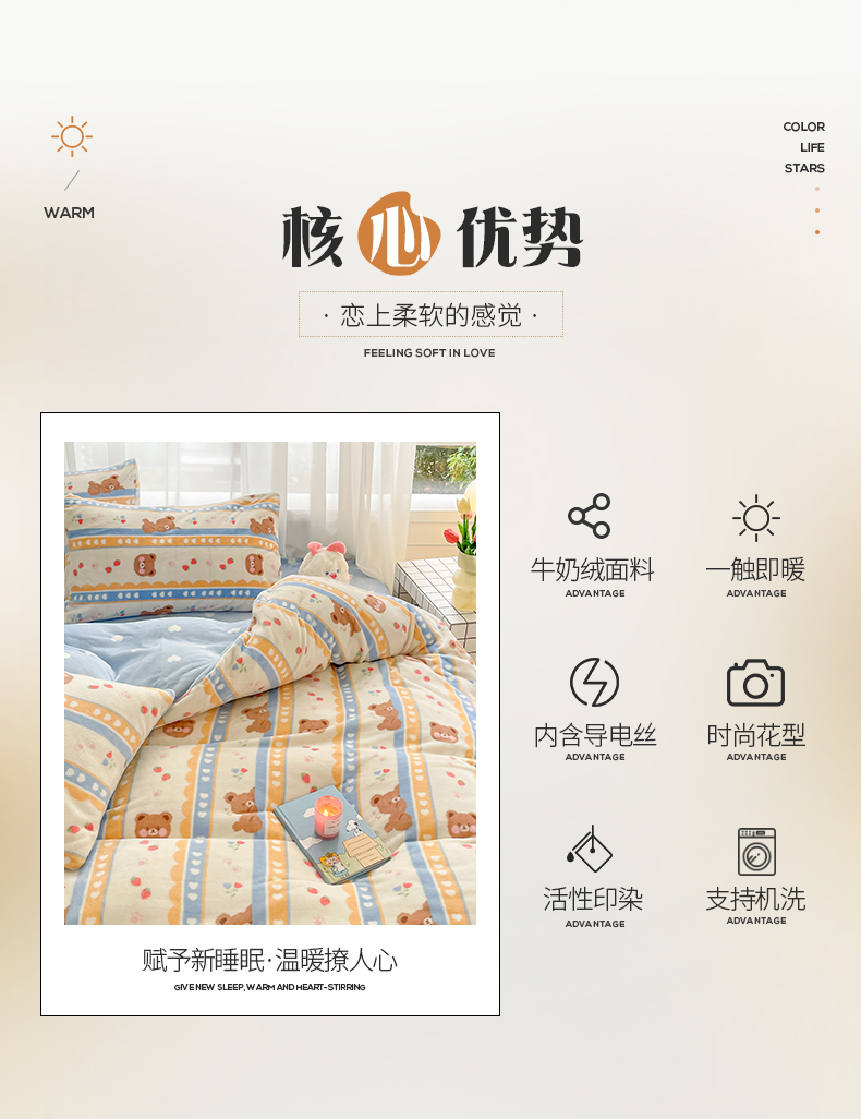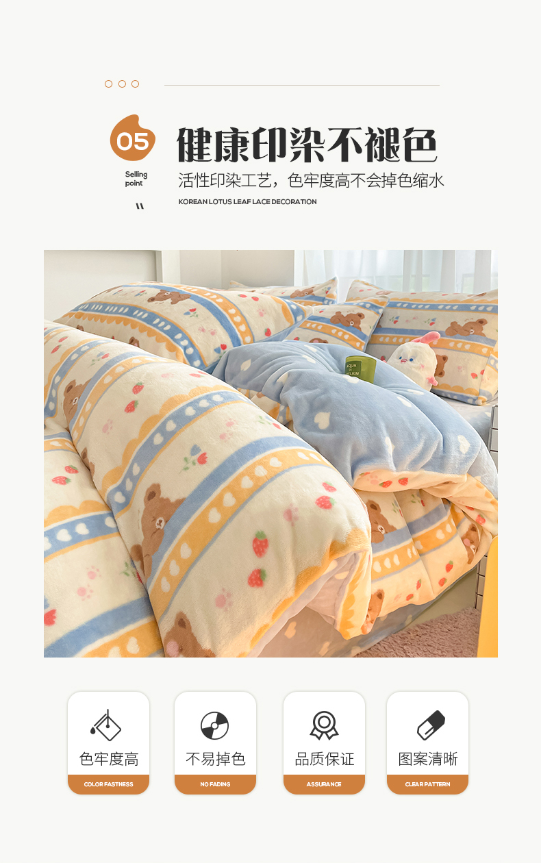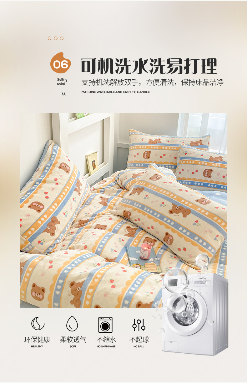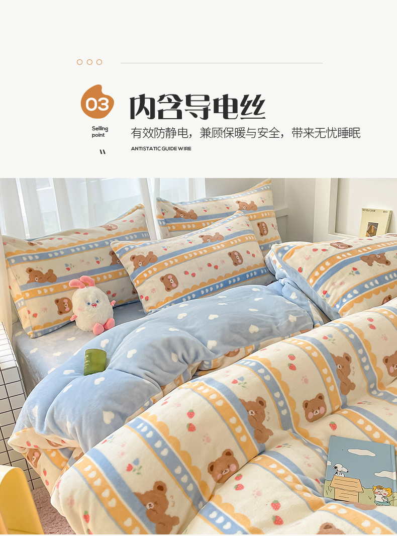 桃子 2023新款ins小清新韩系可爱卡通奶油兔子加厚牛奶绒系列四件套详情第三批 绒-可爱熊