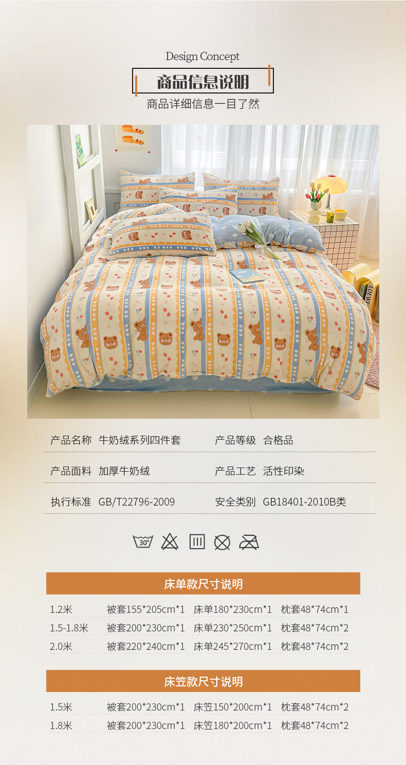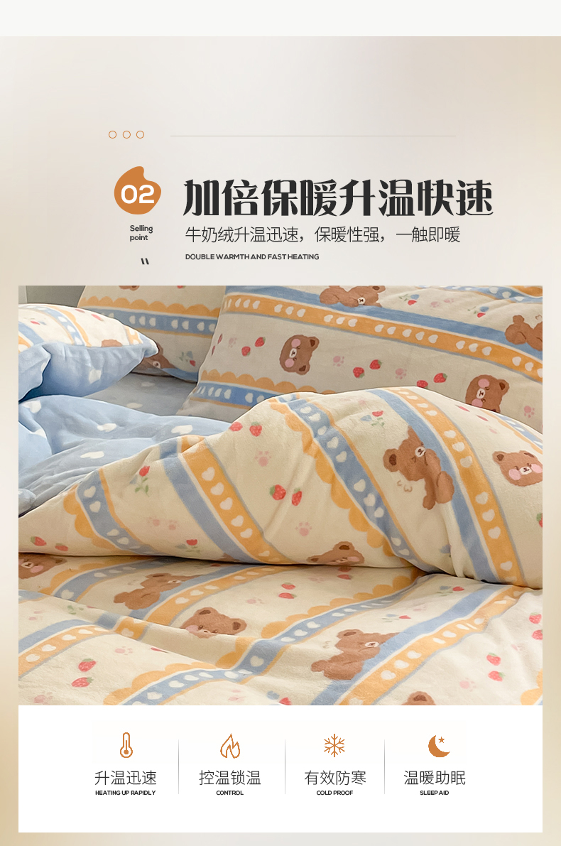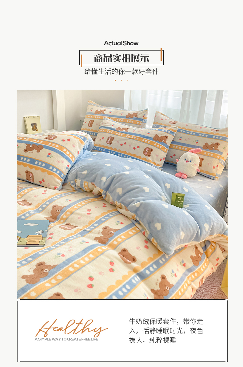 商品名称:桃子 2023新款ins小清新韩系可爱卡通奶油兔子加厚牛奶绒系列四件套详情第三批 绒-可爱熊