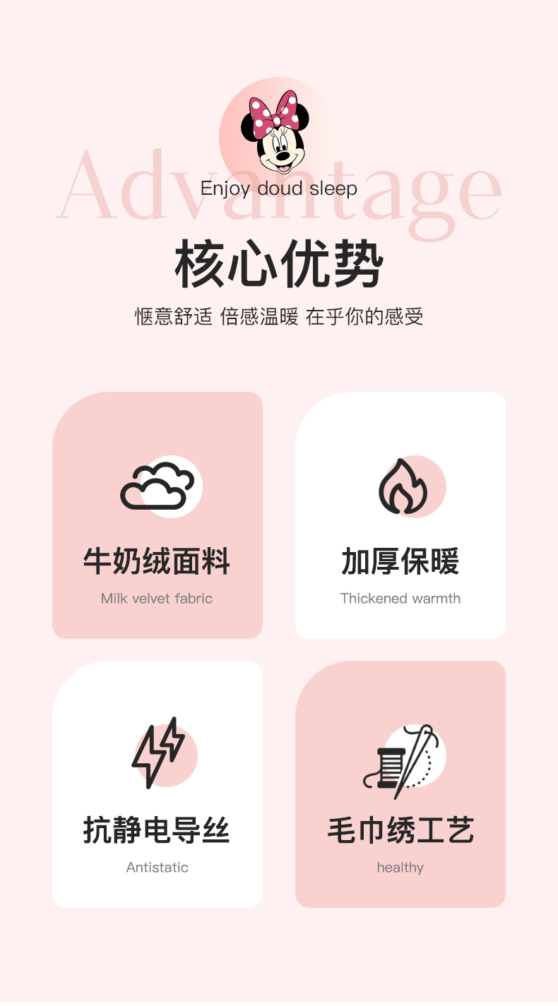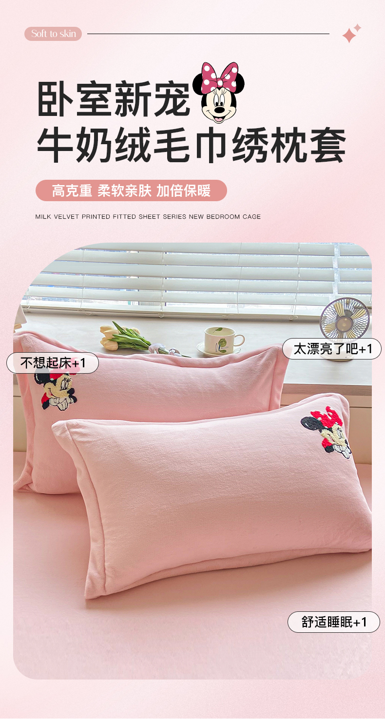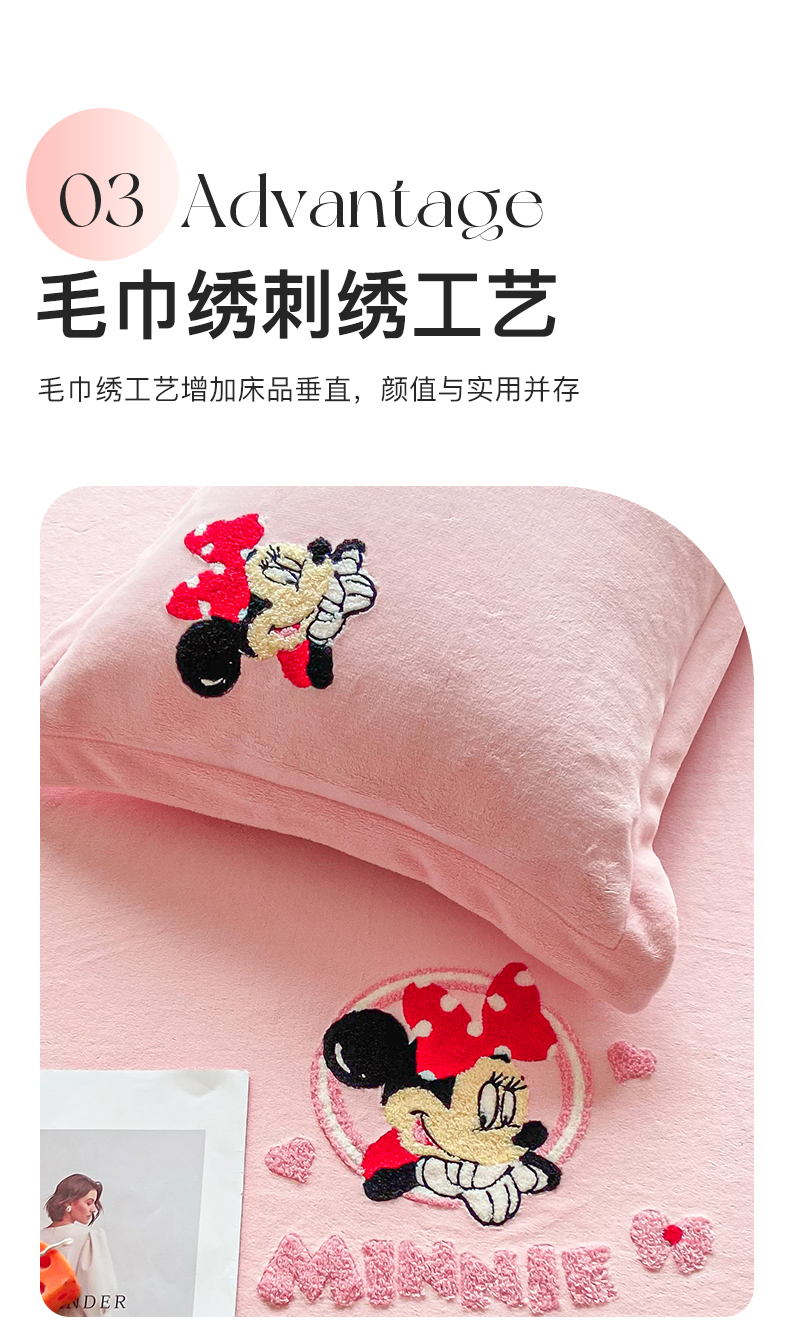 商品名称:丽美人家纺 2023新款迪斯尼牛奶绒毛巾绣枕套系列 米妮