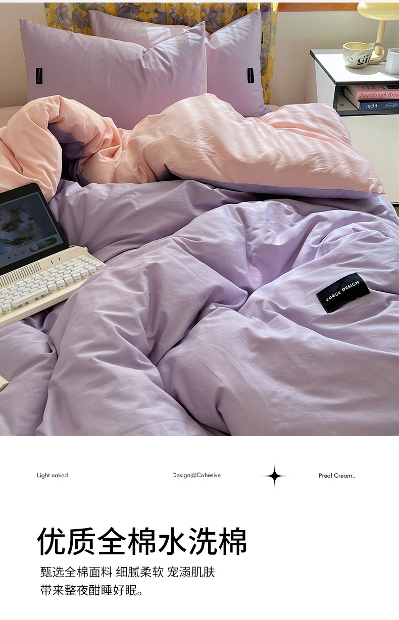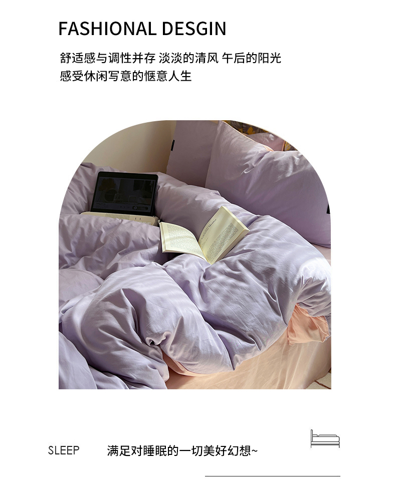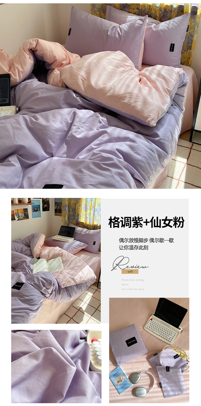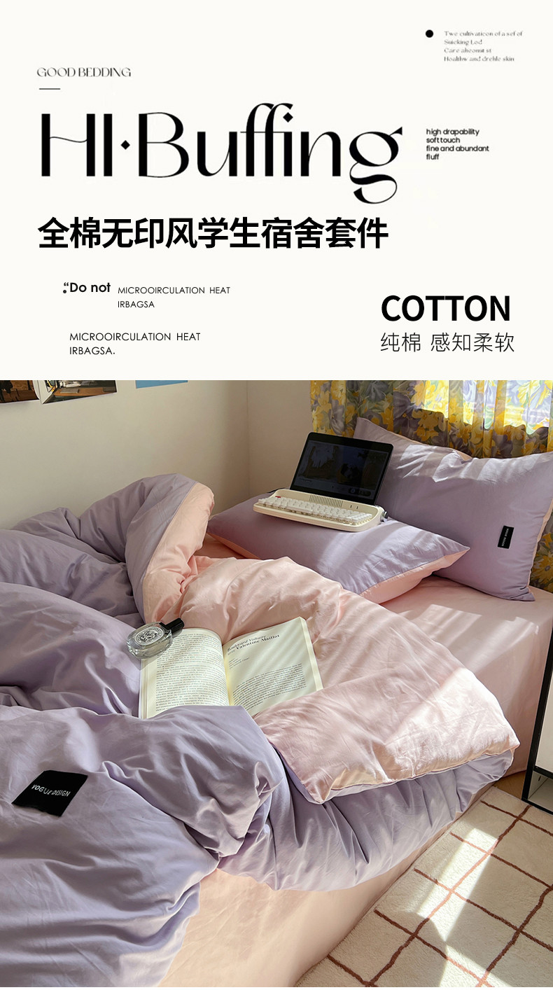 商品名称:百亿莱 2024新款全棉无印风水洗棉学生宿舍三件套四件套 格调紫+仙女粉