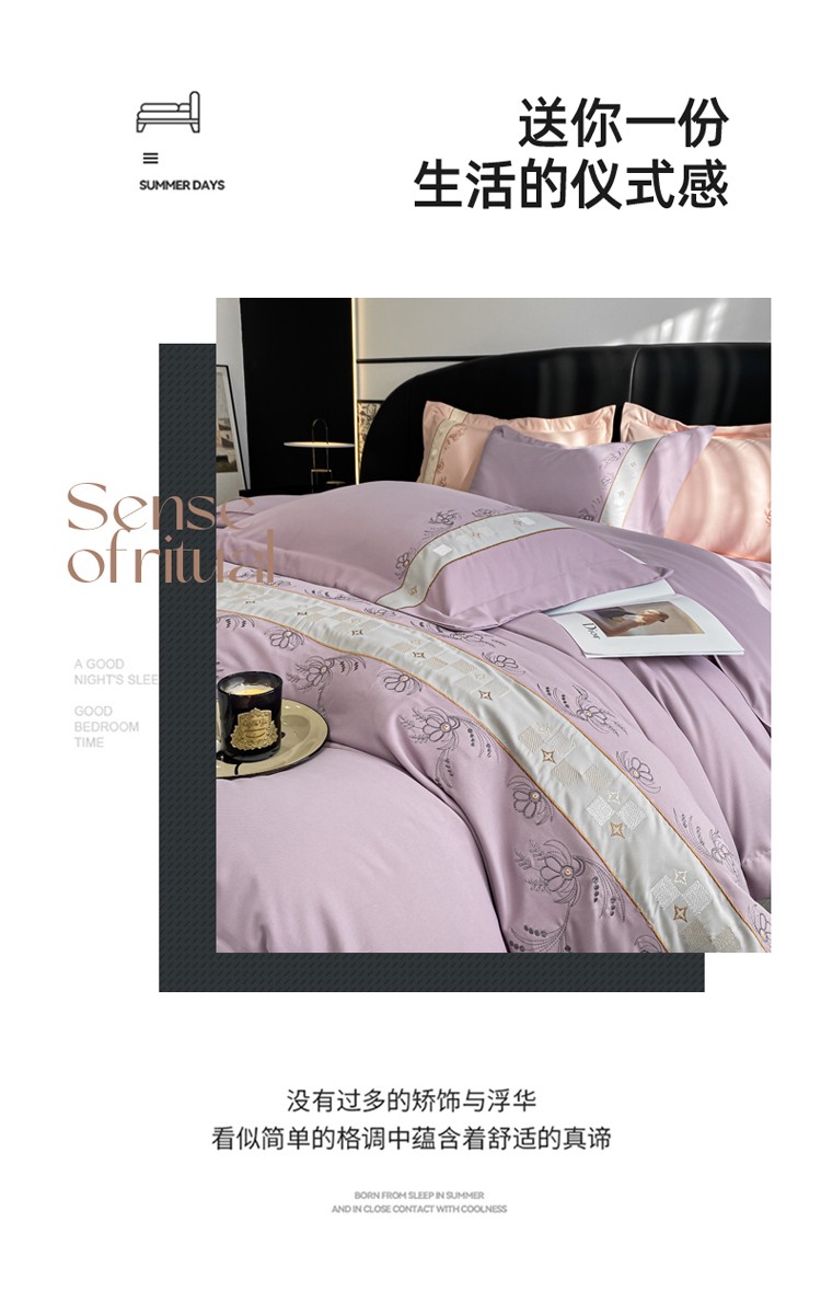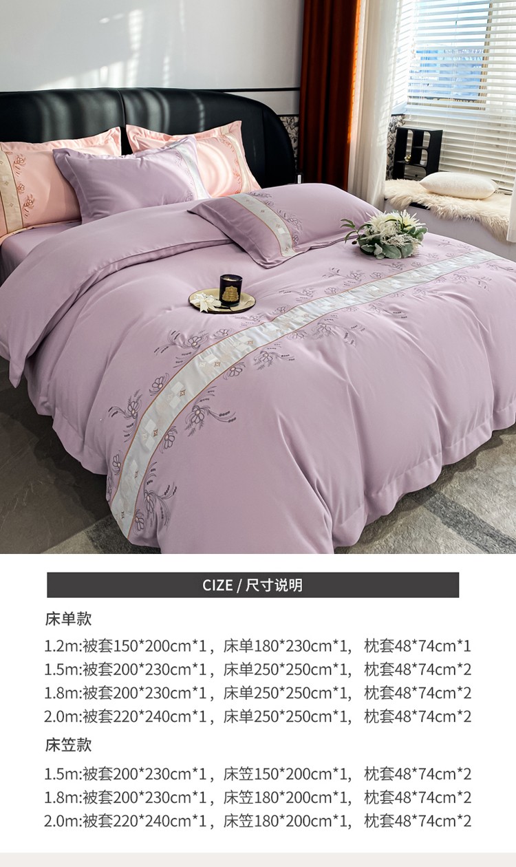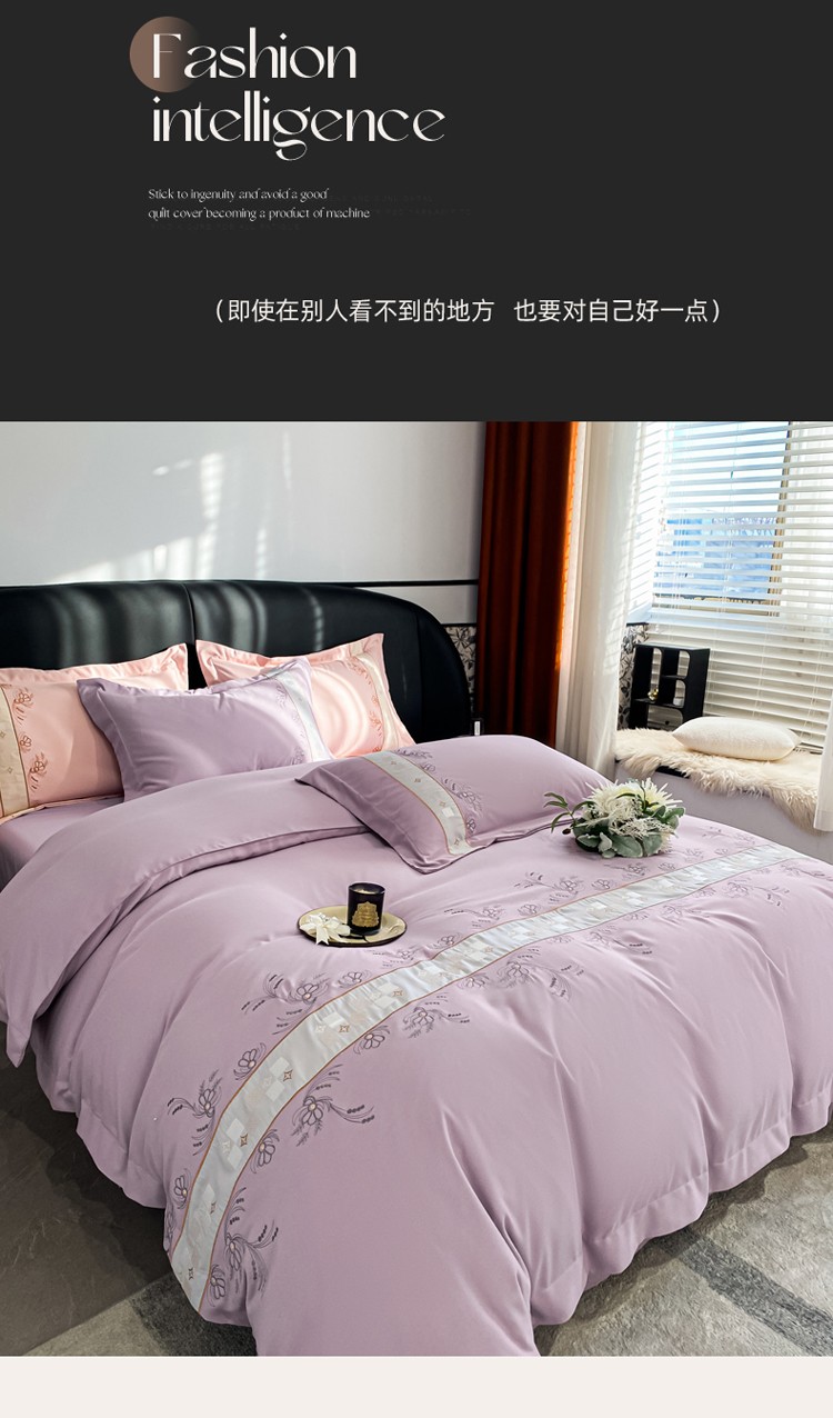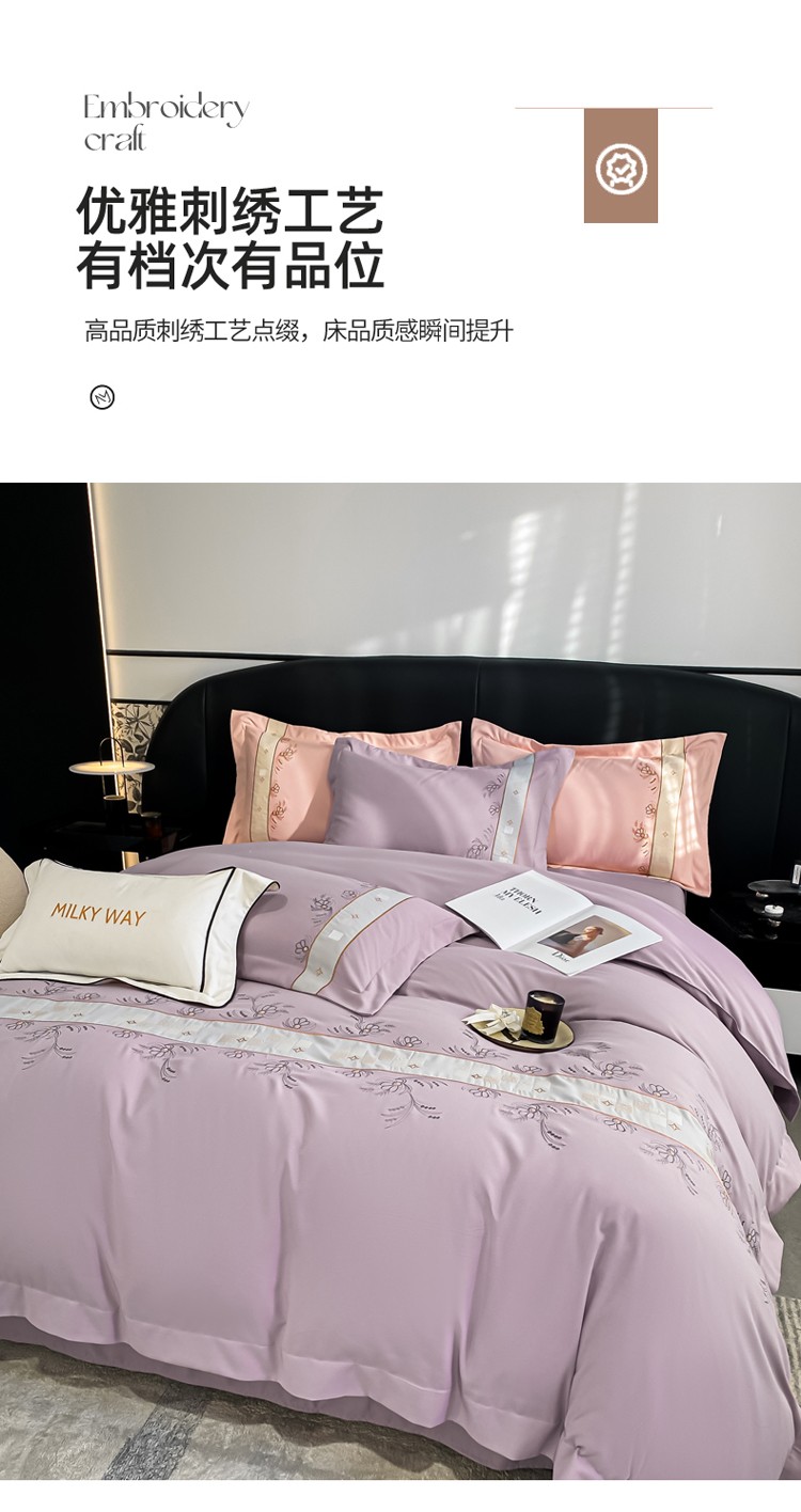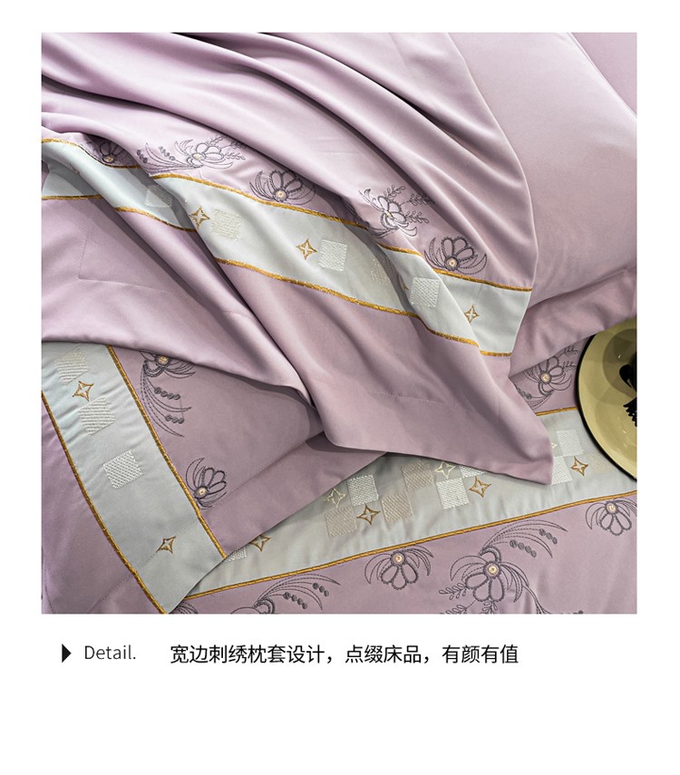 商品名称:欧冠 2023新款秋冬保暖锦绣棉简约绣花艾莎系列四件套 艾莎-香芋