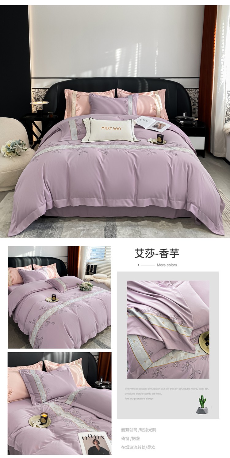 欧冠 2023新款秋冬保暖锦绣棉简约绣花艾莎系列四件套 艾莎-香芋