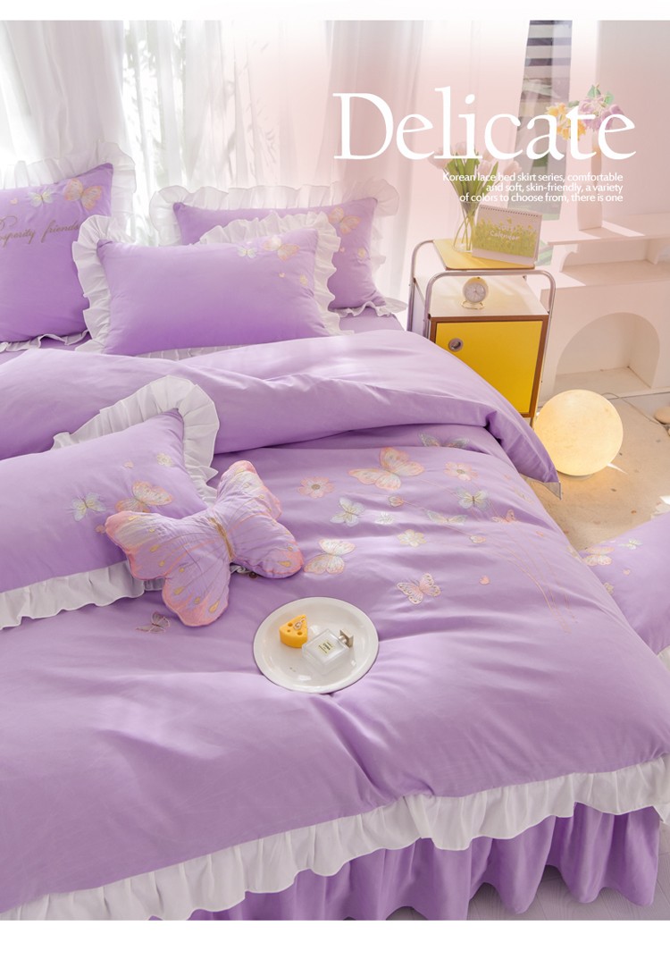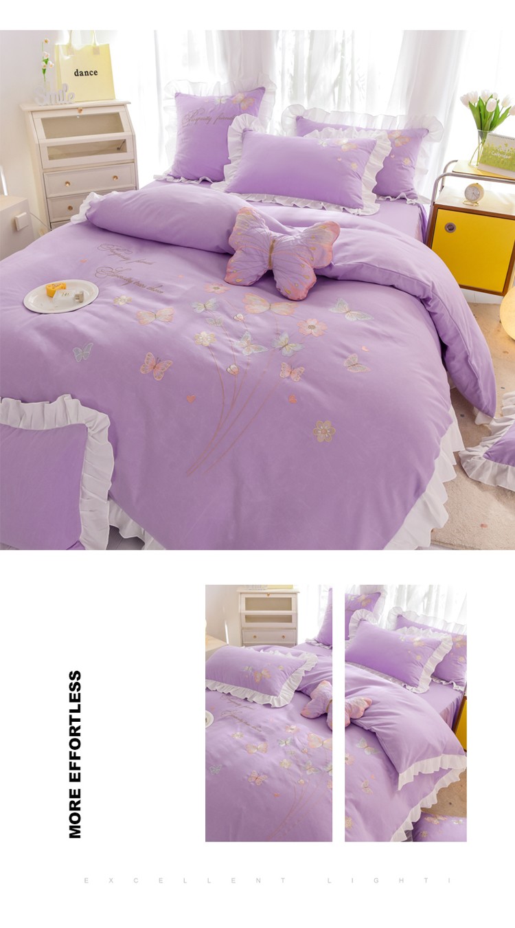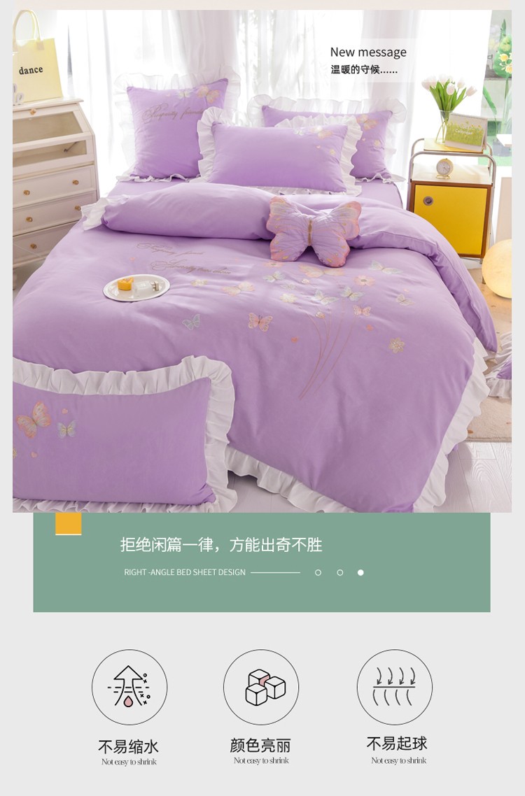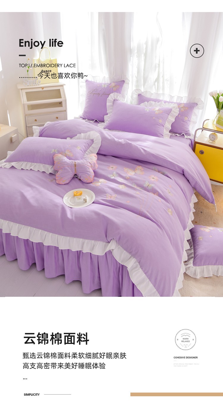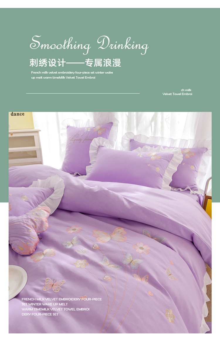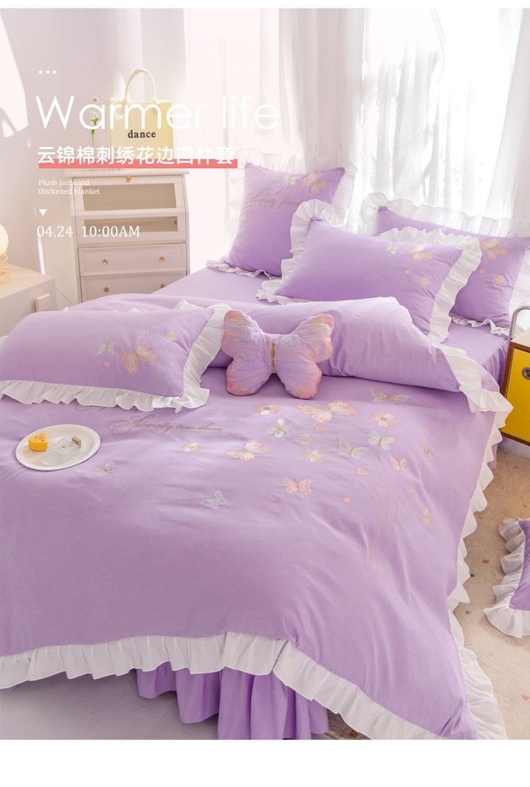 当前位置: 91家纺网 > 商品网购 > 床品套件 > 四件套 > 化纤普通四件套 > 欧冠 2023新款秋冬保暖云锦棉刺绣花边春卉系列四件套 春卉-紫色
