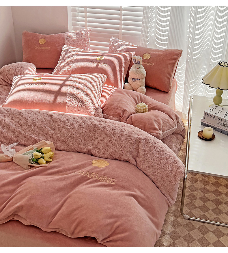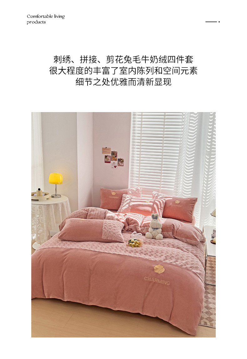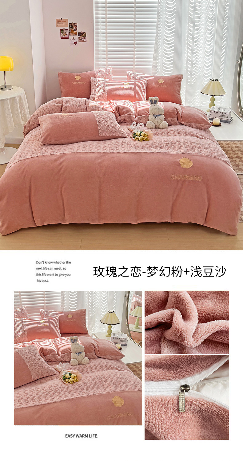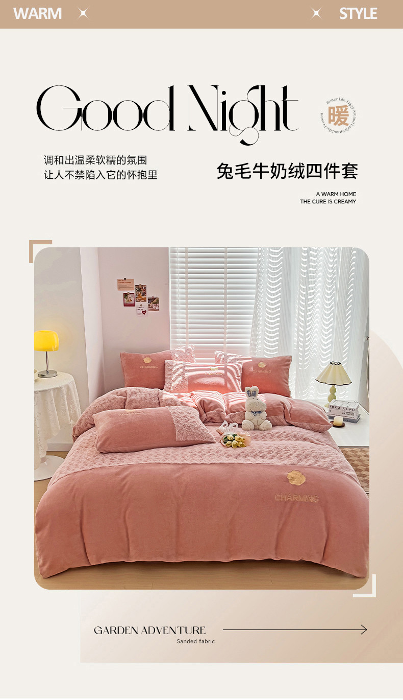 当前位置: 91家纺网 > 商品网购 > 床品套件 > 四件套 > 牛奶绒四件套 > 眷恋 2024新款兔毛牛奶绒四件套 玫瑰之恋-梦幻粉+浅豆沙