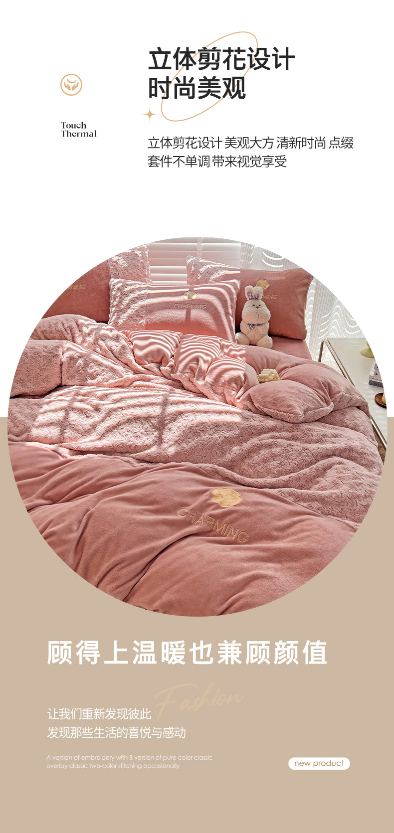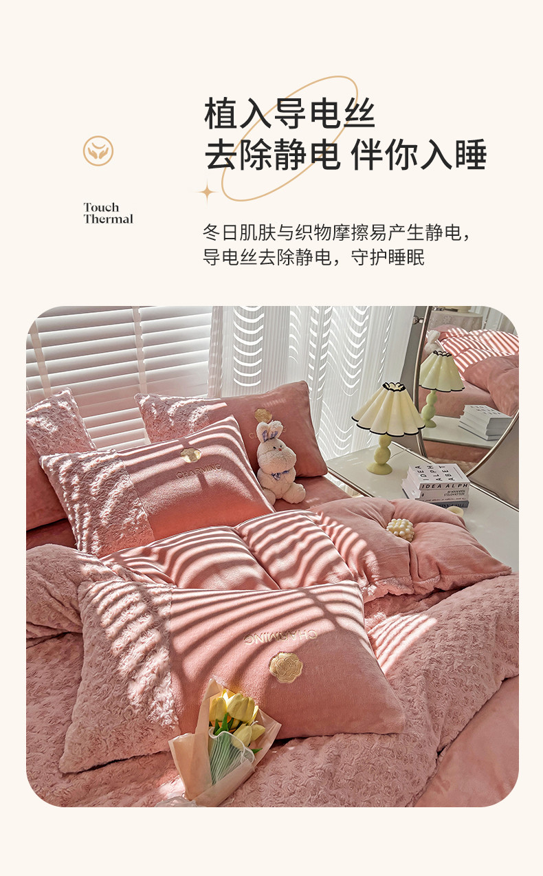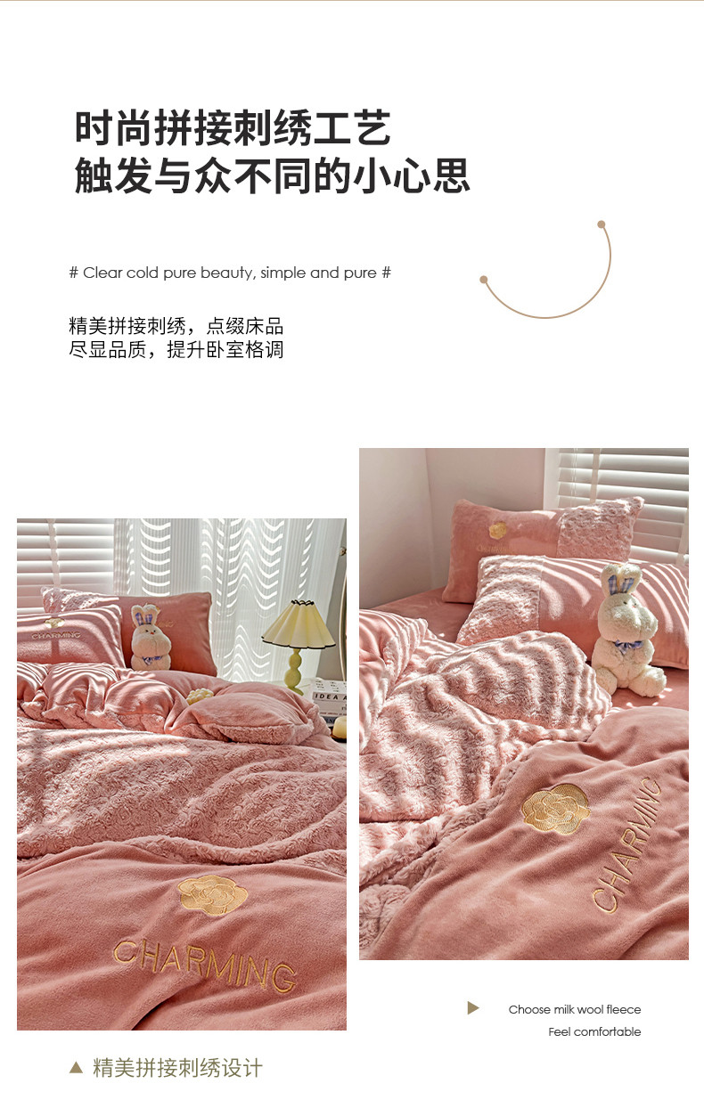 当前位置: 91家纺网 > 商品网购 > 床品套件 > 四件套 > 牛奶绒四件套 > 眷恋 2024新款兔毛牛奶绒四件套 玫瑰之恋-梦幻粉+浅豆沙