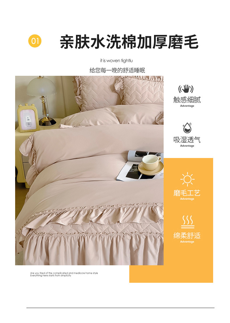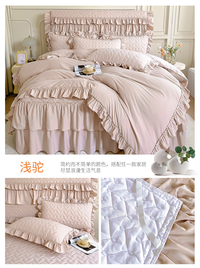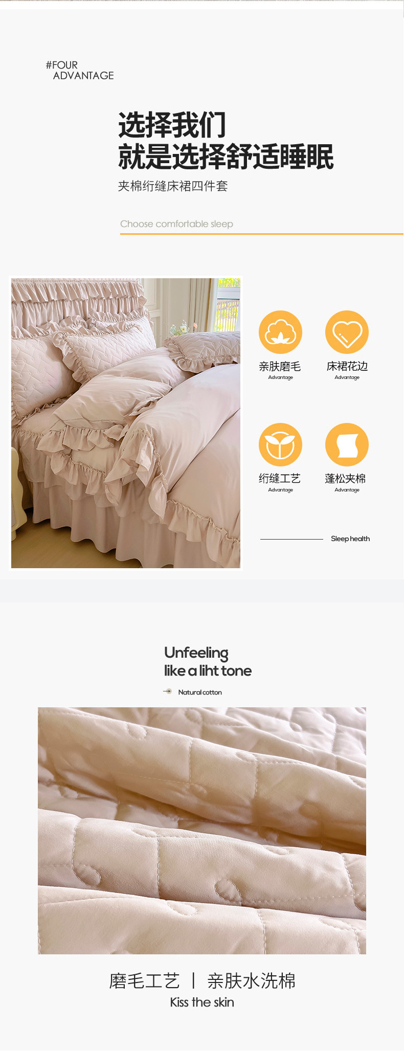 当前位置: 91家纺网 > 商品网购 > 床品套件 > 四件套 > 全棉普通四件套 > 十个点 2024新款水洗棉磨毛夹棉纤缝床裙套件星辰系列-四件套 浅驼