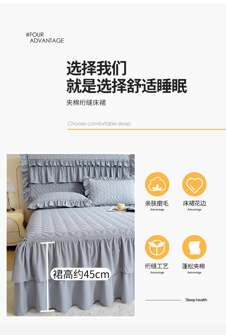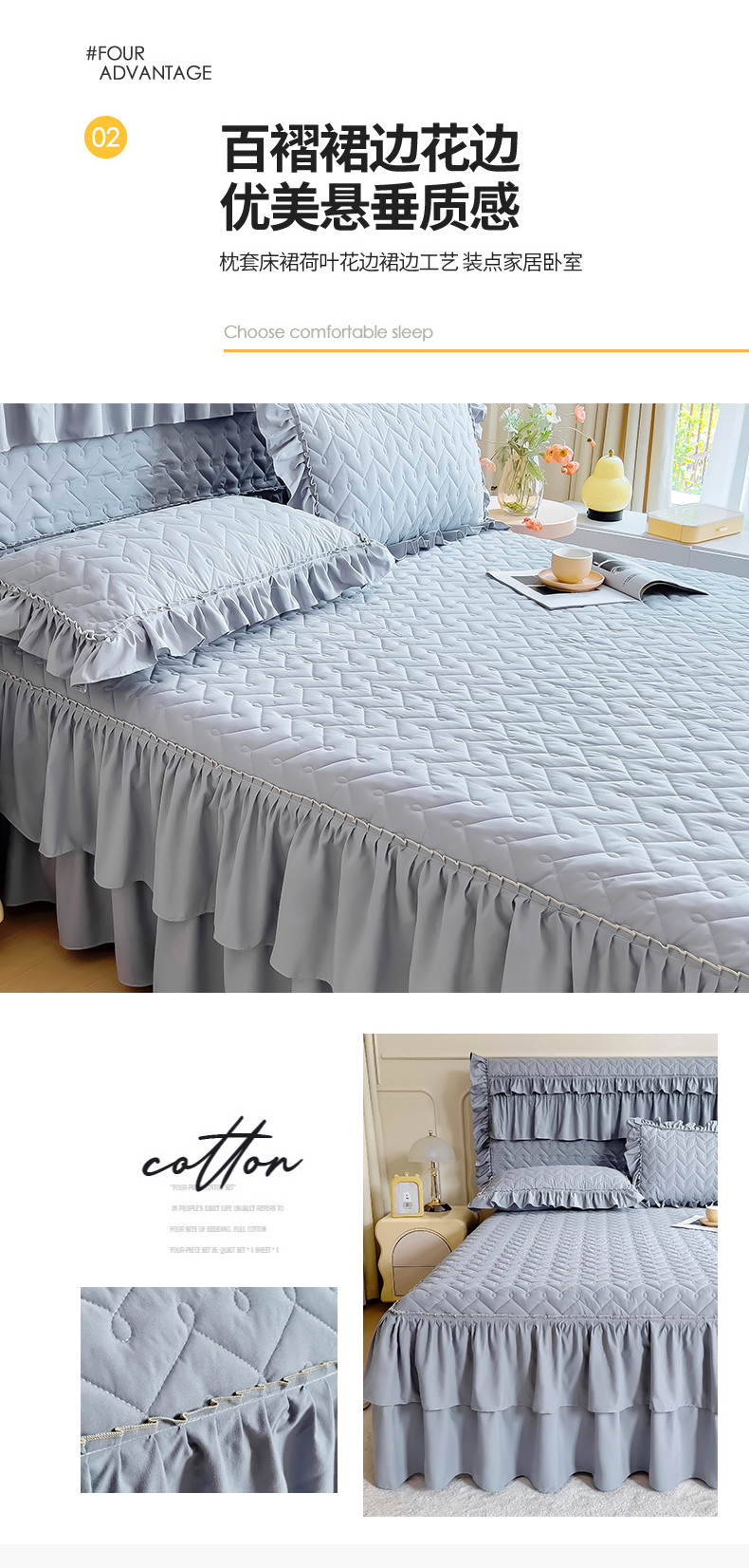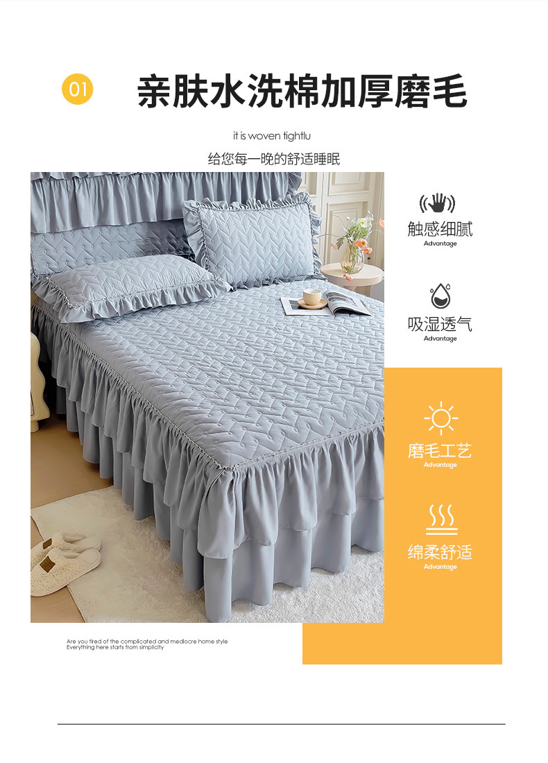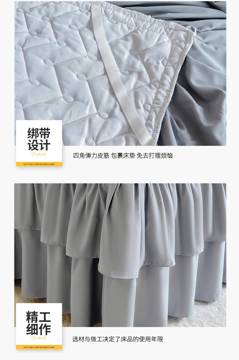 • 91家纺网 家纺一手货源 找家纺 十个点 2024新款水洗棉磨毛星辰单品套件系列单床裙 灰色