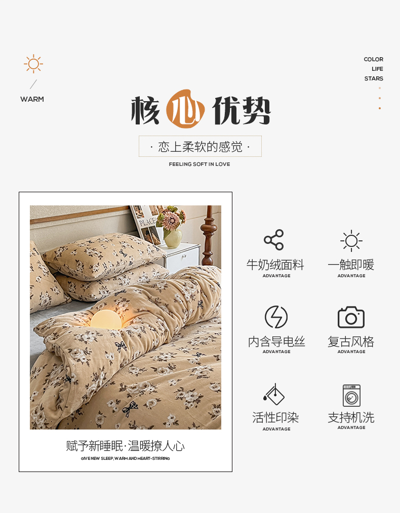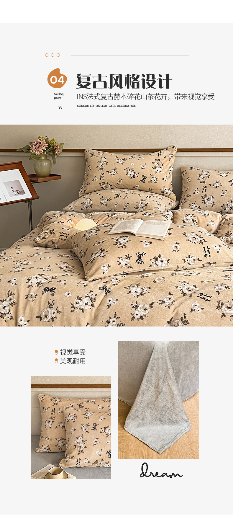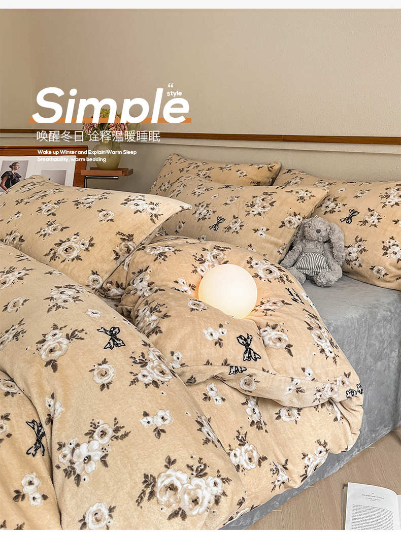商品名称:(总)桃子家居 2023新款ins法式复古赫本碎花山茶花卉加厚牛奶绒系列四件套