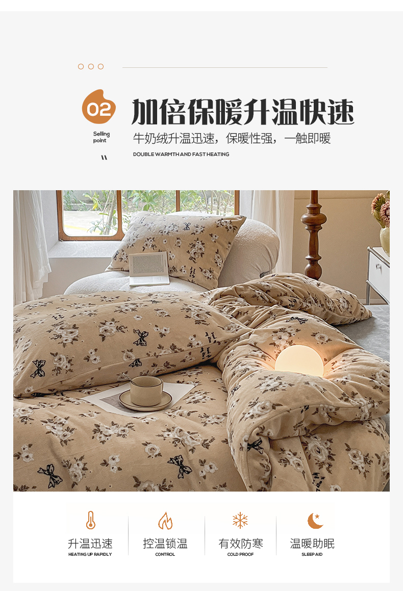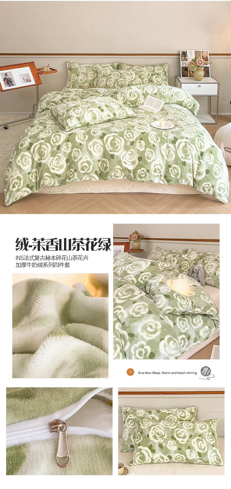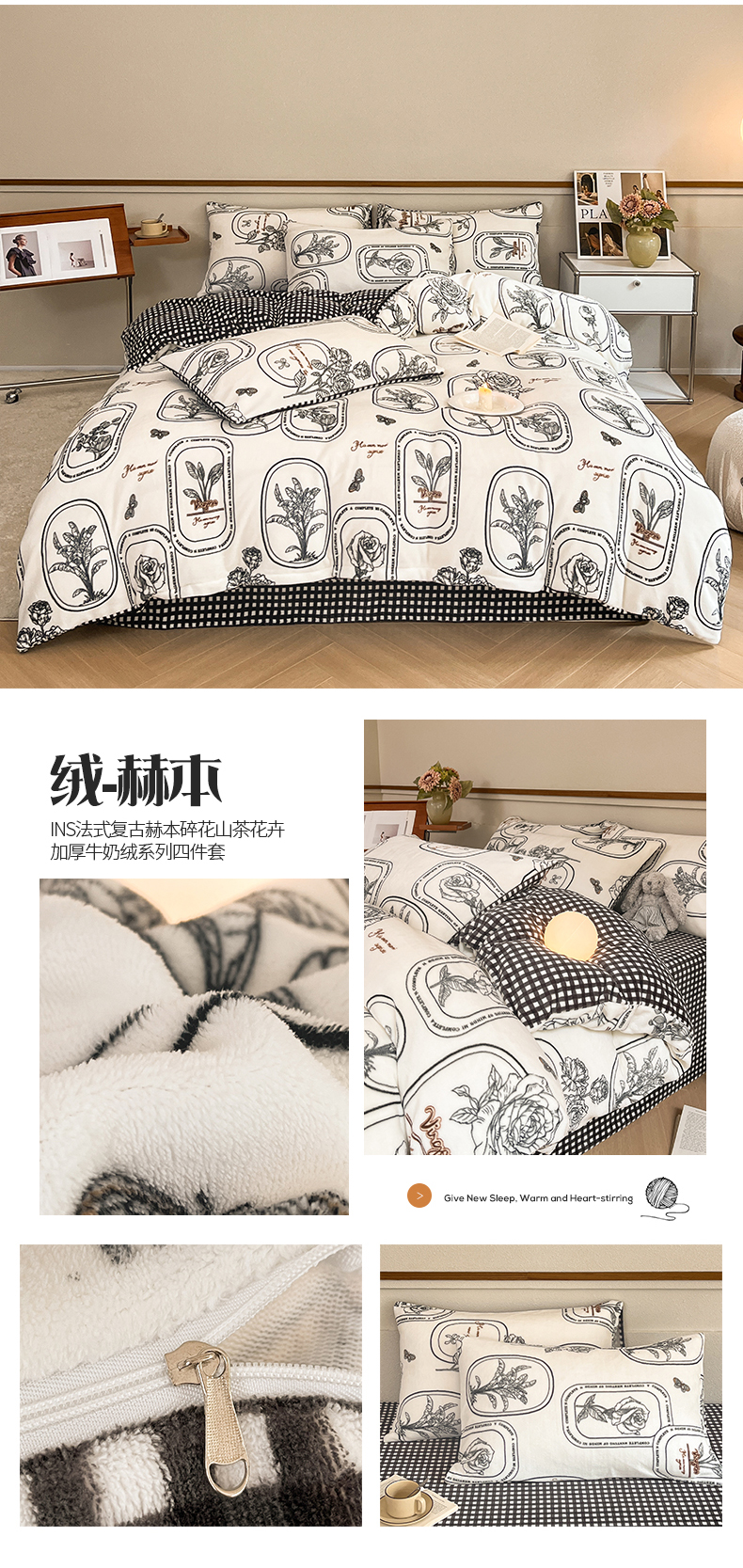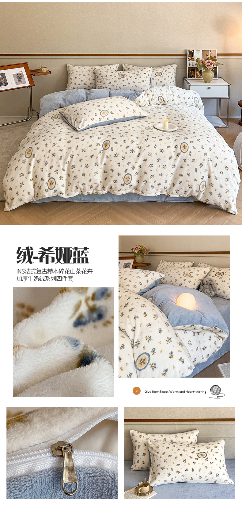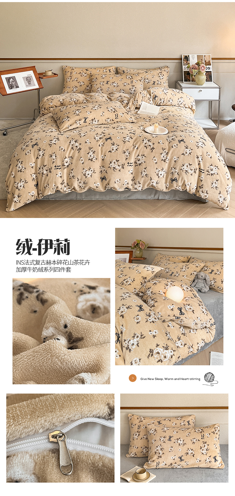 (总)桃子家居 2023新款ins法式复古赫本碎花山茶花卉加厚牛奶绒系列四件套