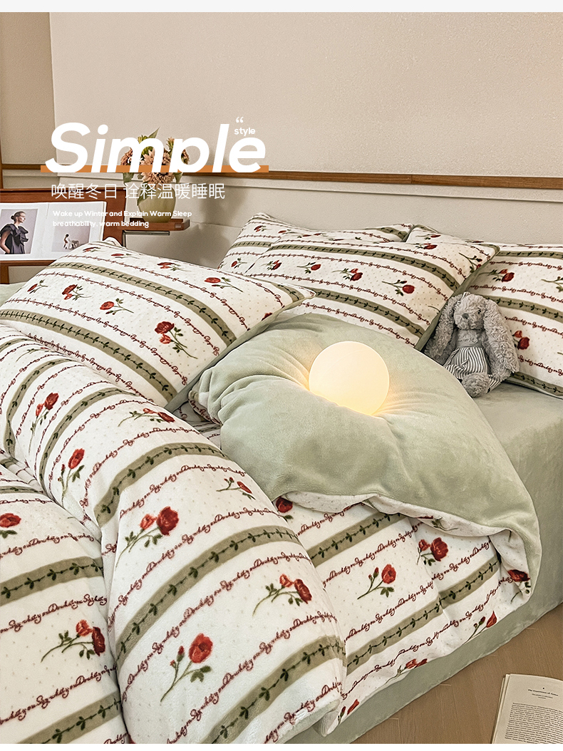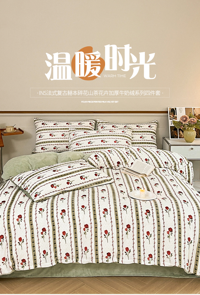 桃子家居 2023新款ins法式复古赫本碎花山茶花卉加厚牛奶绒系列四件套 绒-爱莉