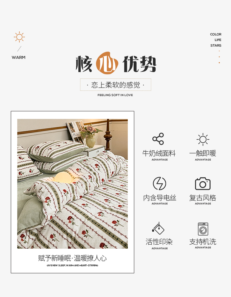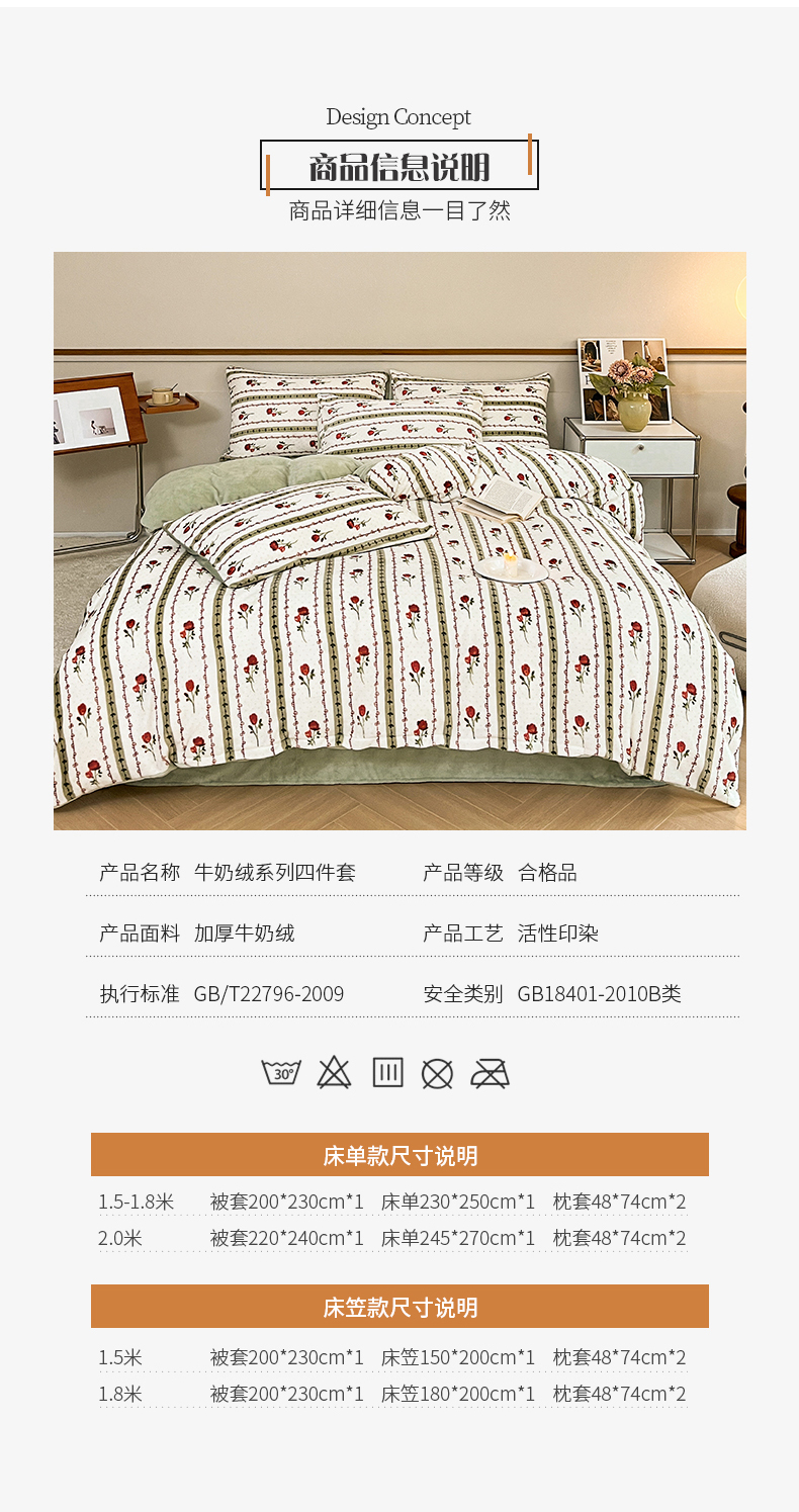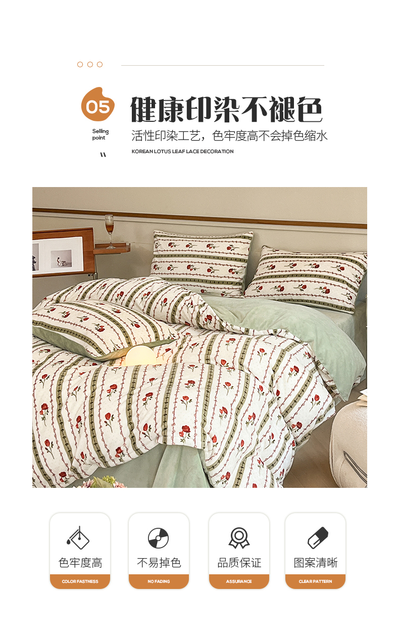 商品名称:桃子家居 2023新款ins法式复古赫本碎花山茶花卉加厚牛奶绒系列四件套 绒-爱莉