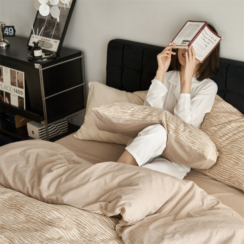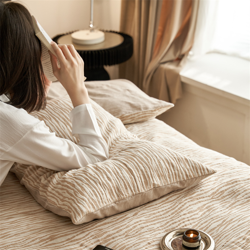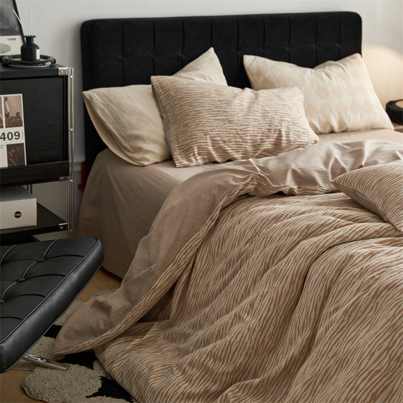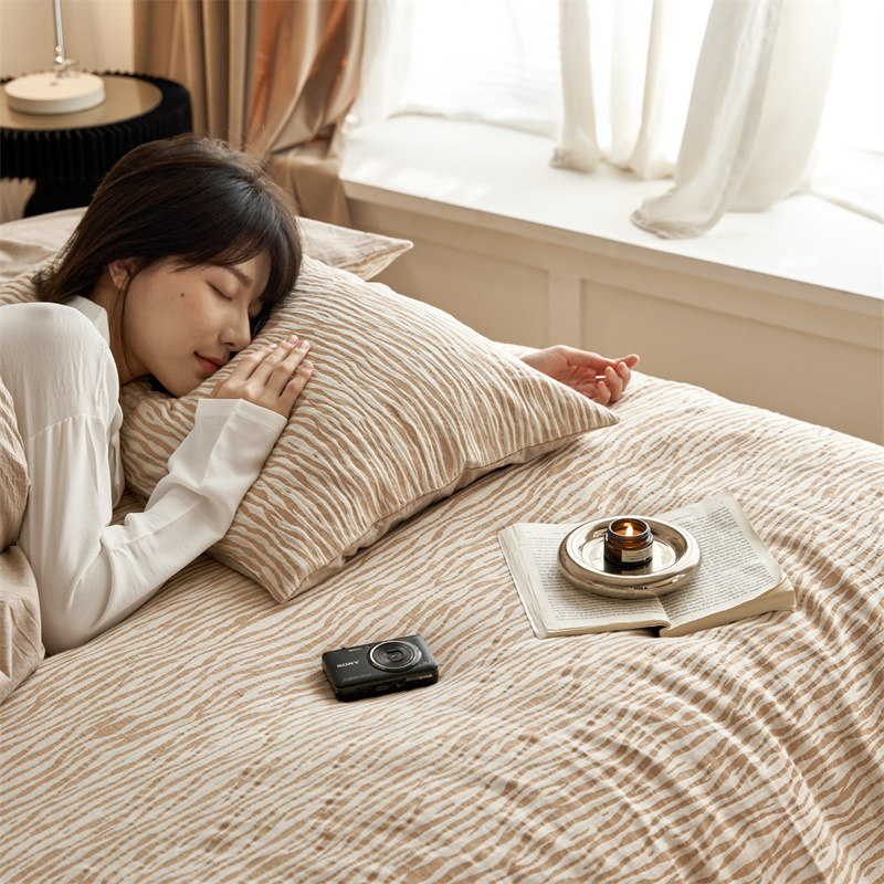 安莱生活 2023新款色纺A类双层纱格纳及豹纹系列四件套 格纳