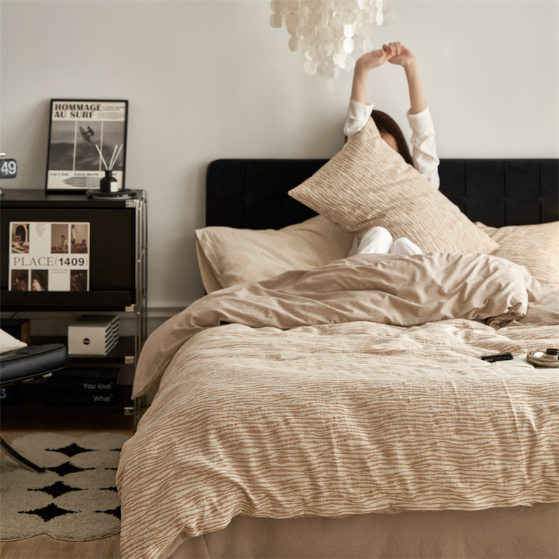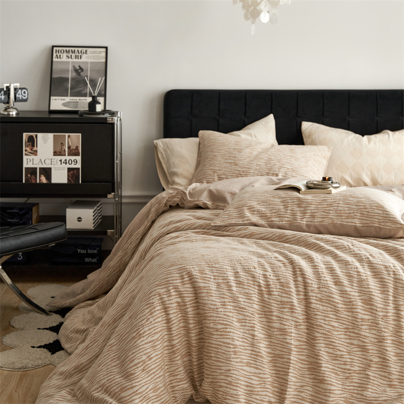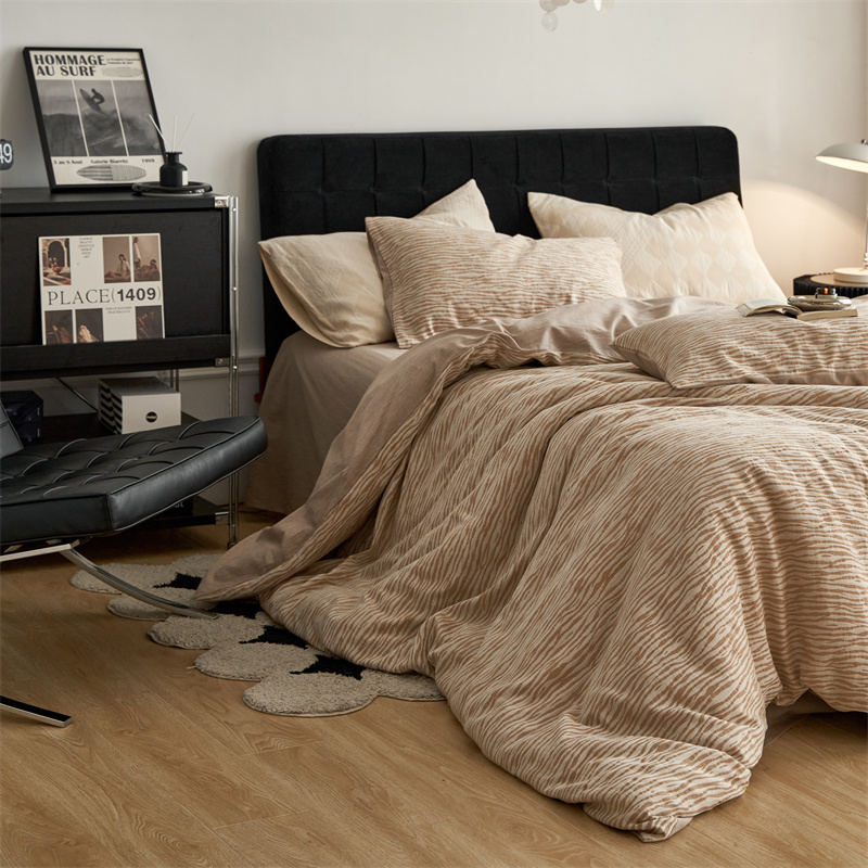 (总)安莱生活 2025春夏新款空气层色织提花四件套南阳假日系列,南阳假日-灰咖,南阳假日-卡其,南阳假日-银灰
