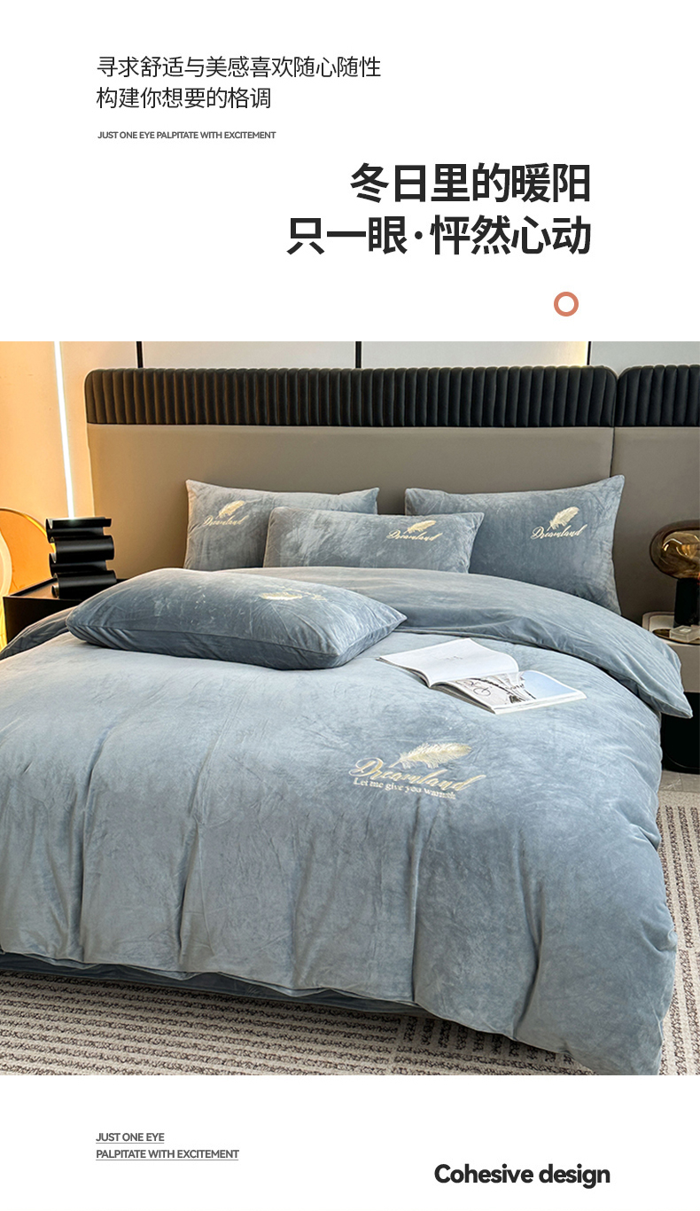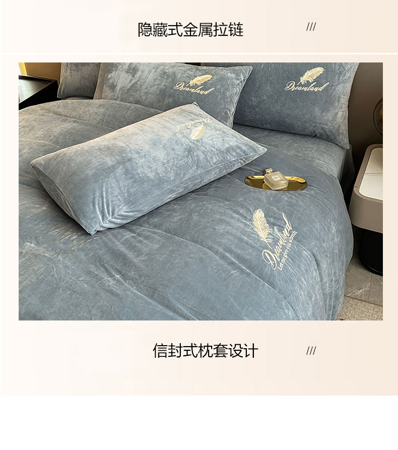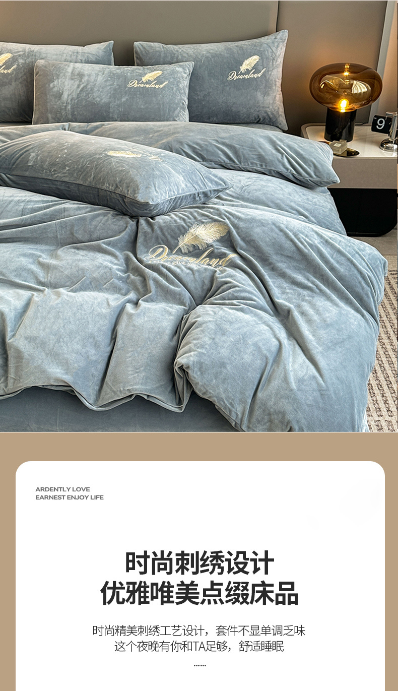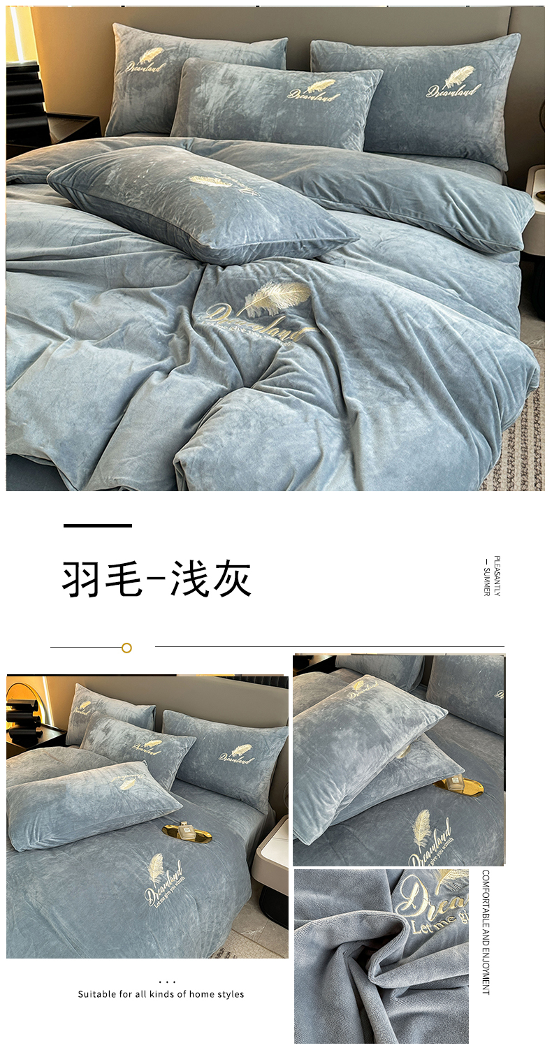 当前位置: 91家纺网 > 商品网购 > 床品套件 > 四件套 > 牛奶绒四件套 > yyds网供 2024新款短绒羽毛刺绣水晶绒四件套轻奢秋冬牛奶绒简约-羽毛系列 羽毛-浅灰