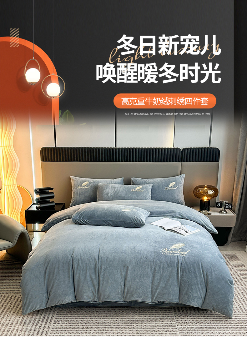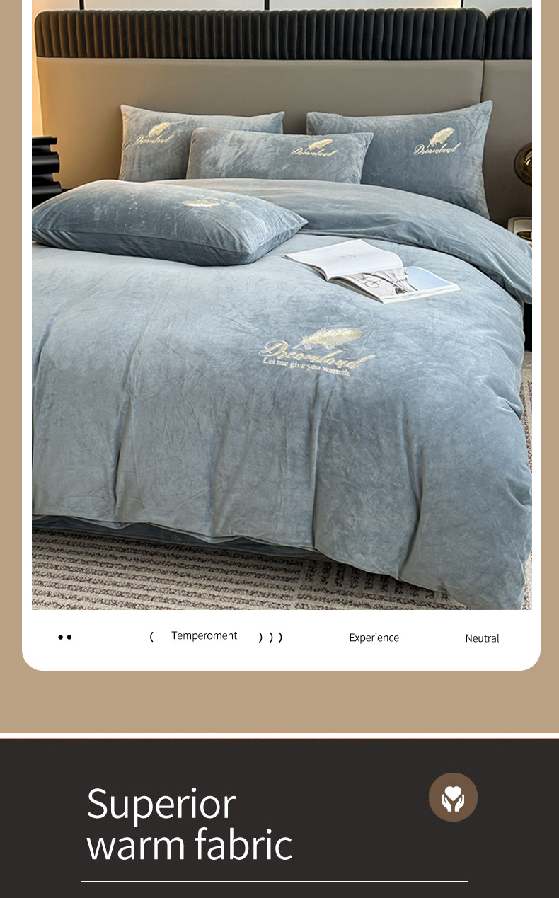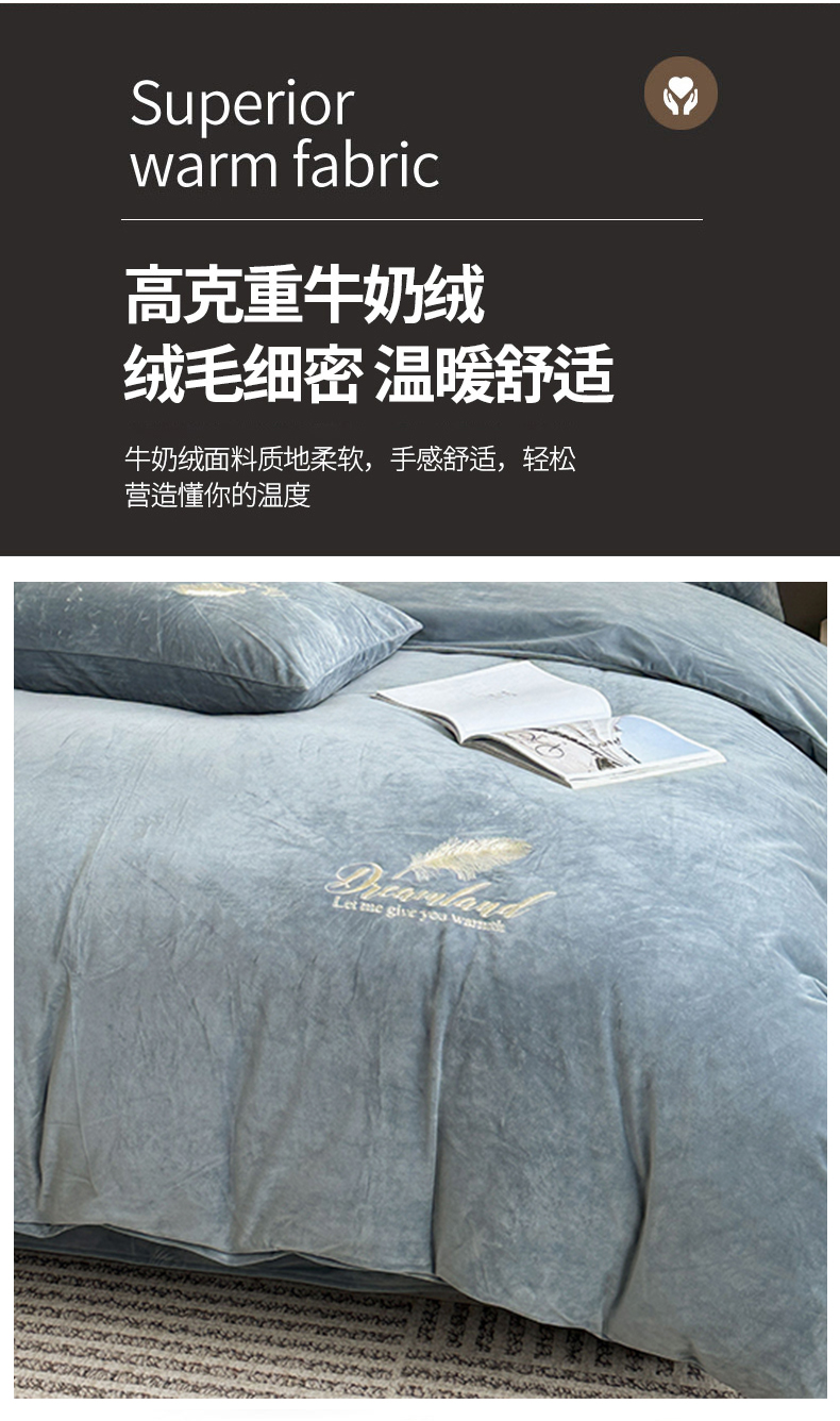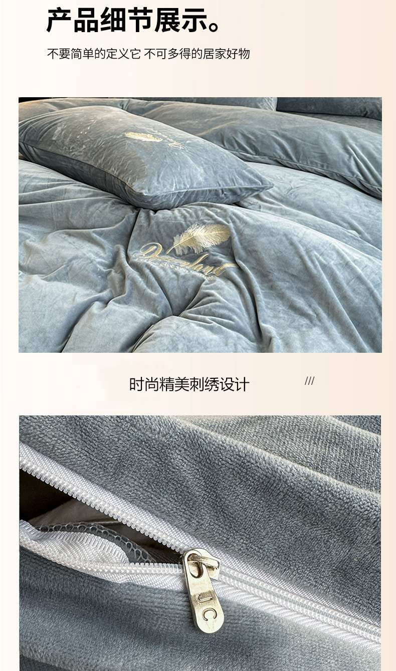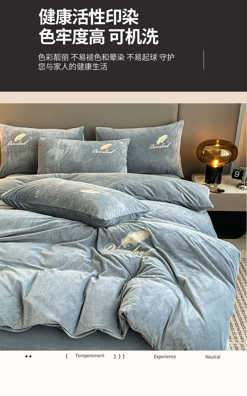 当前位置: 91家纺网 > 商品网购 > 床品套件 > 四件套 > 牛奶绒四件套 > yyds网供 2024新款短绒羽毛刺绣水晶绒四件套轻奢秋冬牛奶绒简约-羽毛系列 羽毛-浅灰
