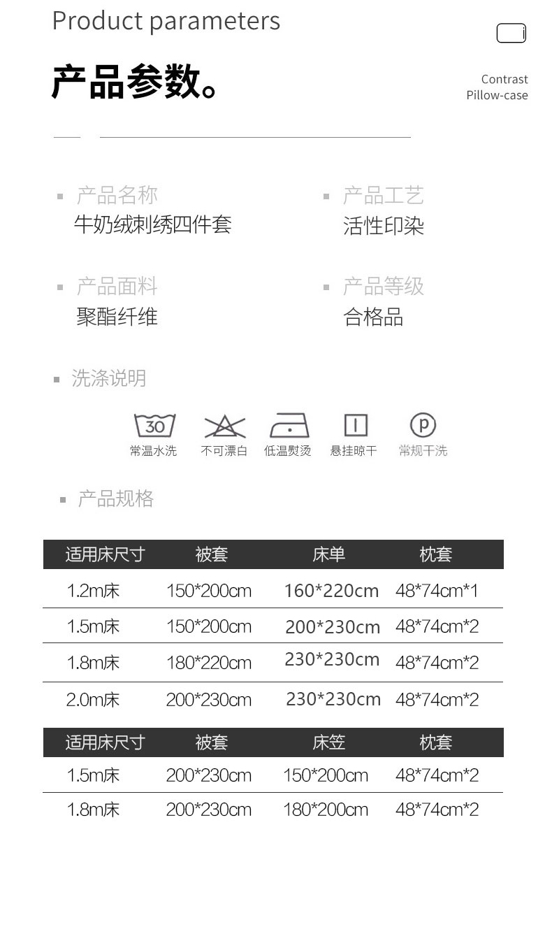 1.8m 床单款四件套(被套180*220m) | ¥75.00 |