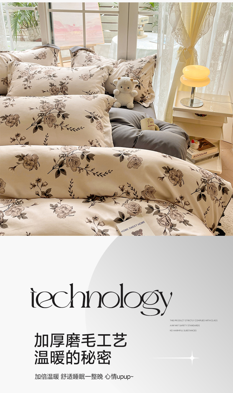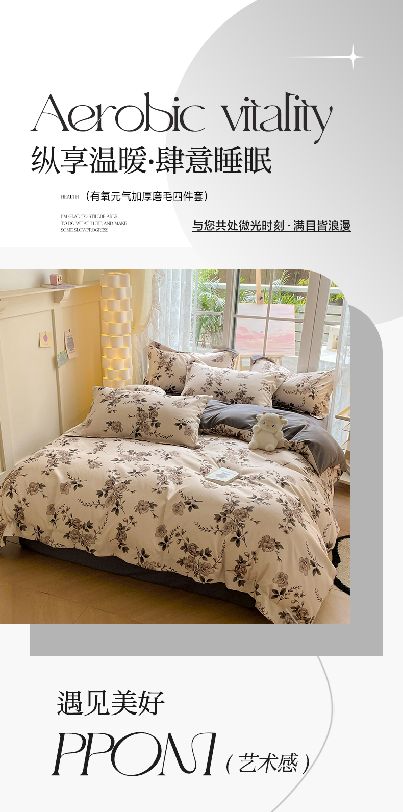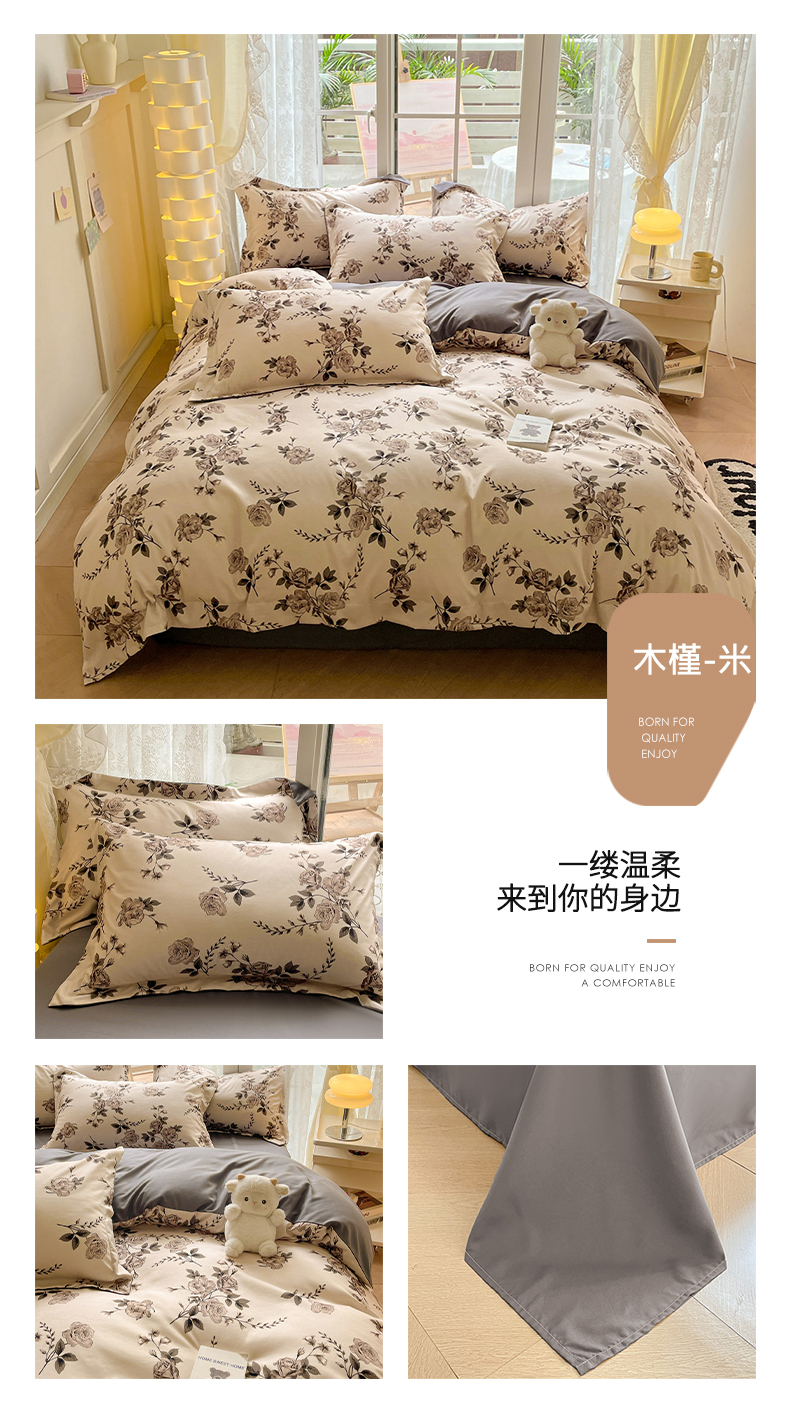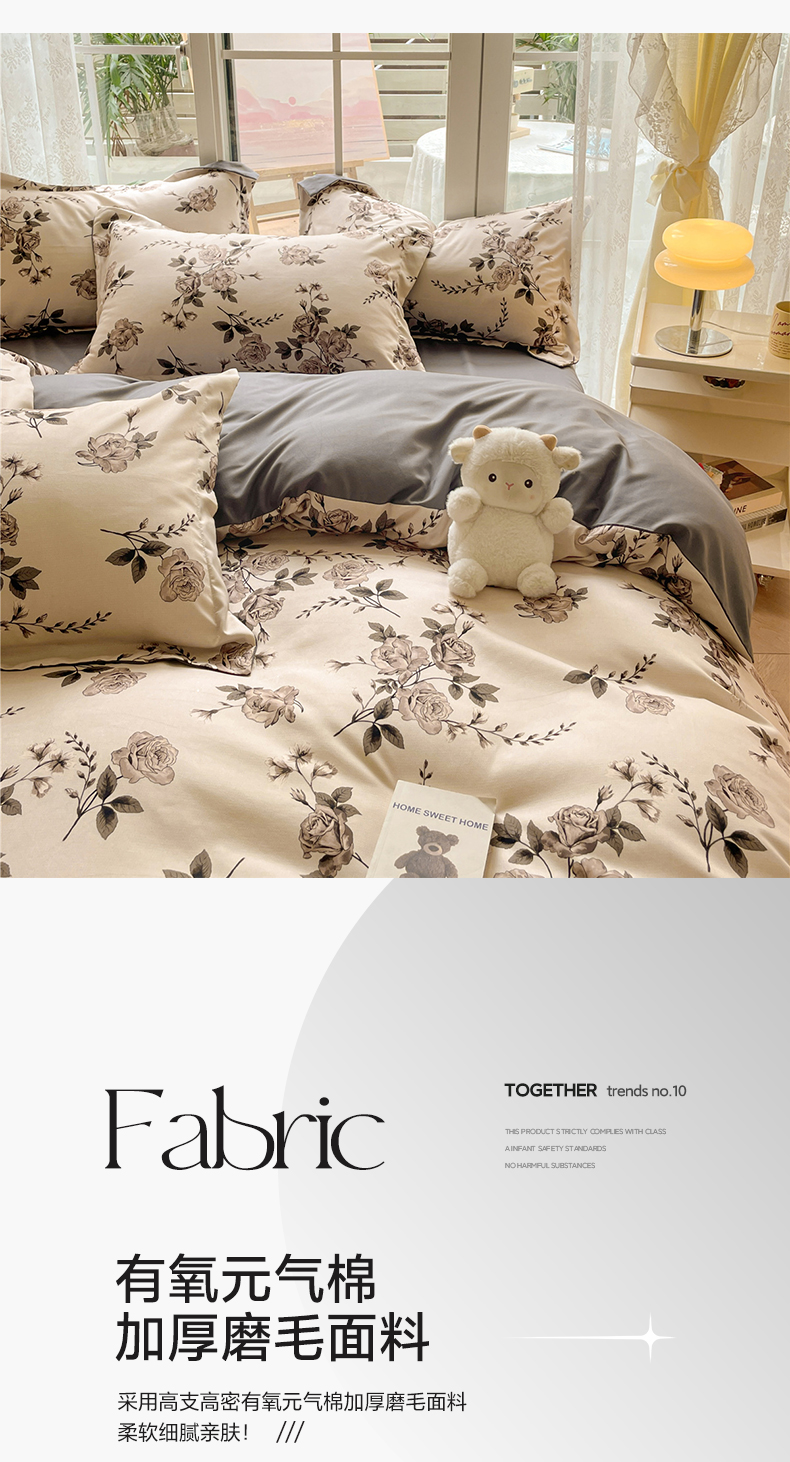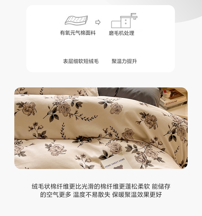 商品名称:古吉梦 2023新款A类有氧元气棉加厚磨毛四件套 木槿-米