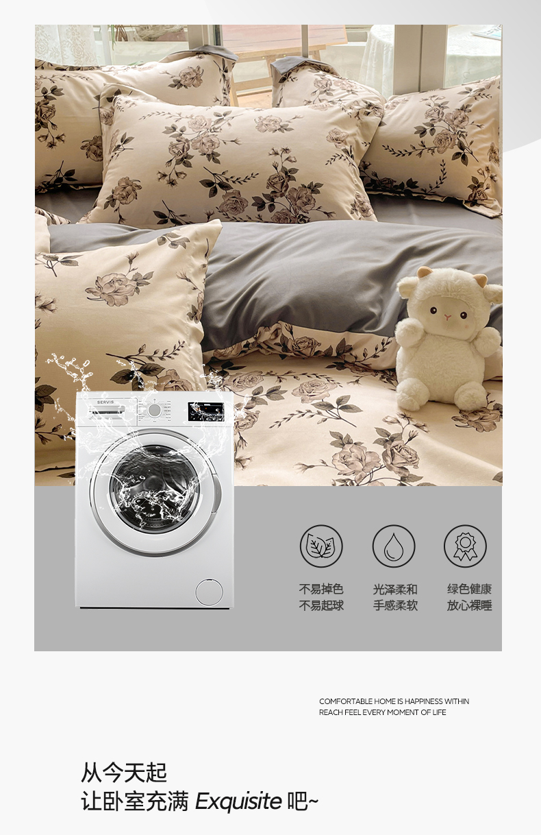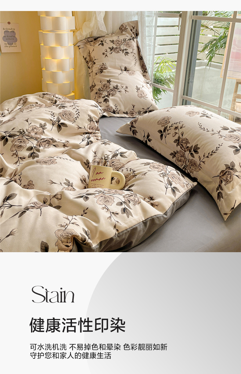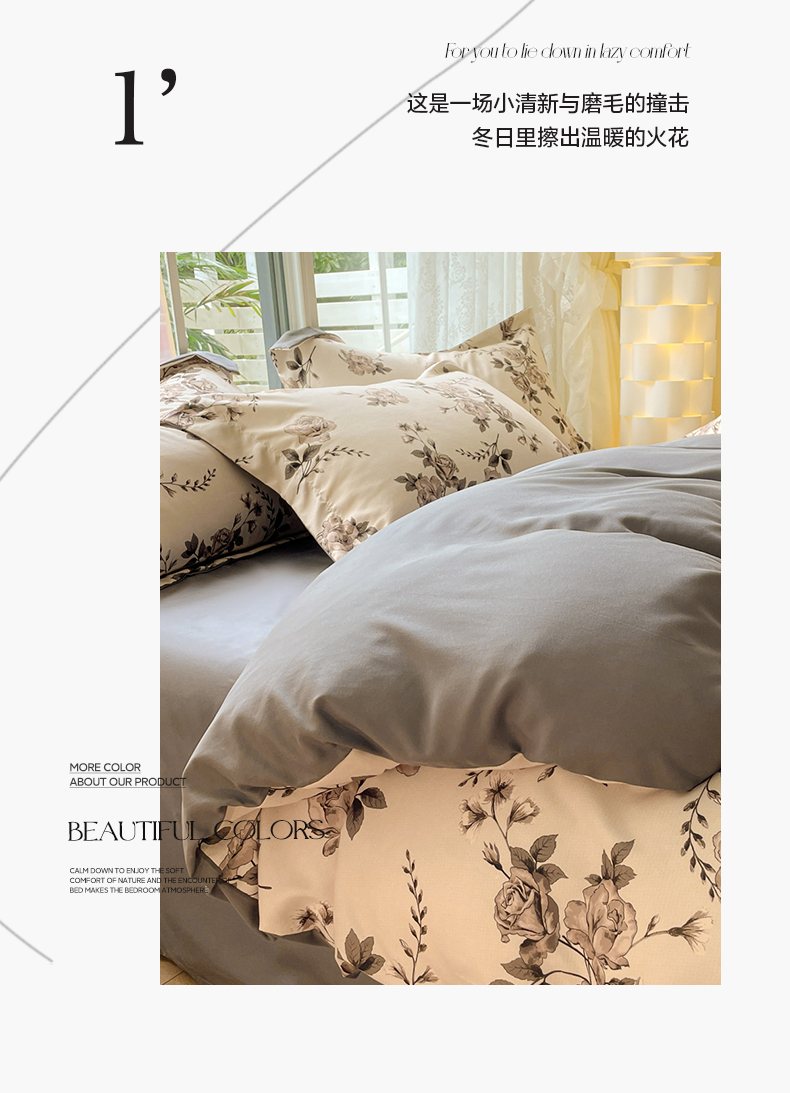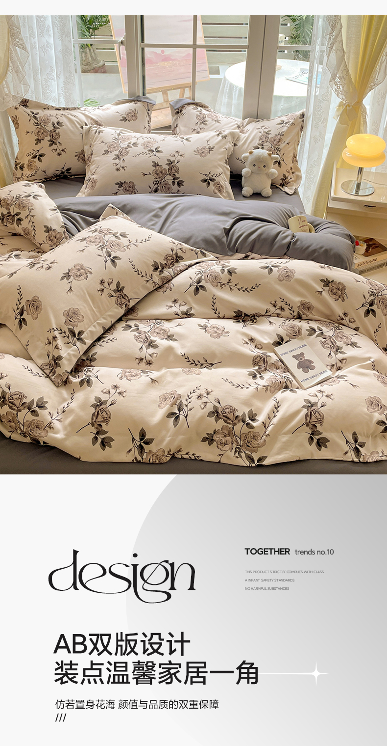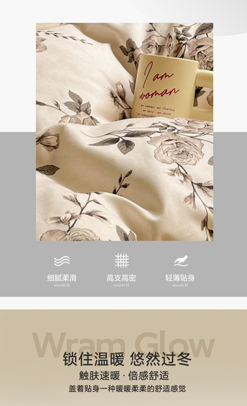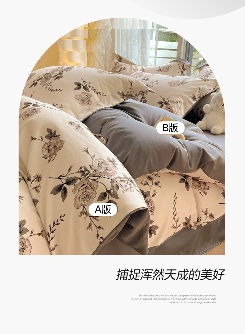 商品名称:古吉梦 2023新款A类有氧元气棉加厚磨毛四件套 木槿-米
