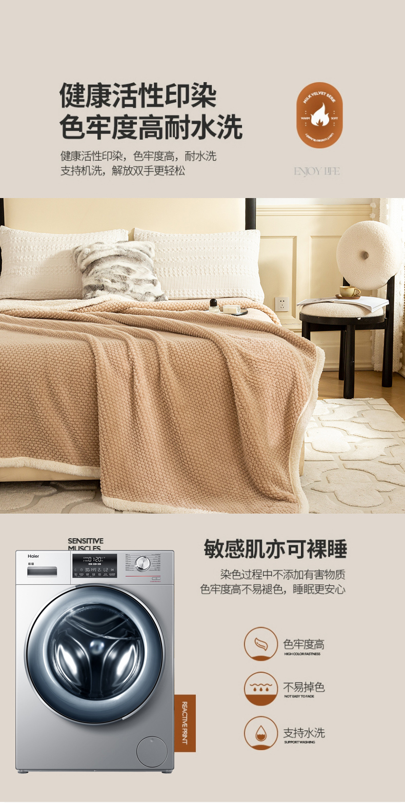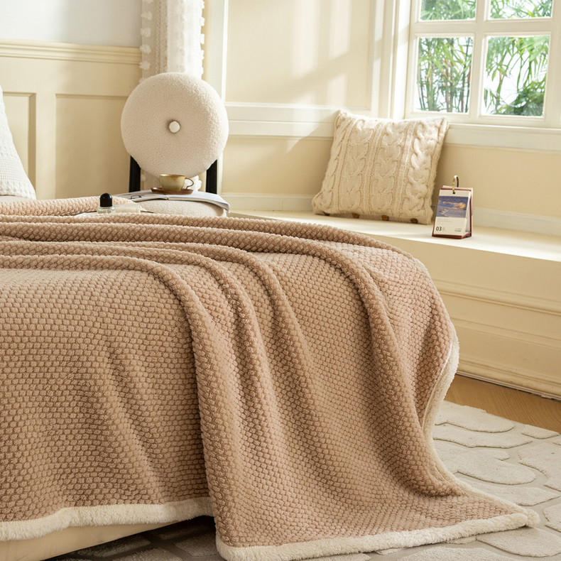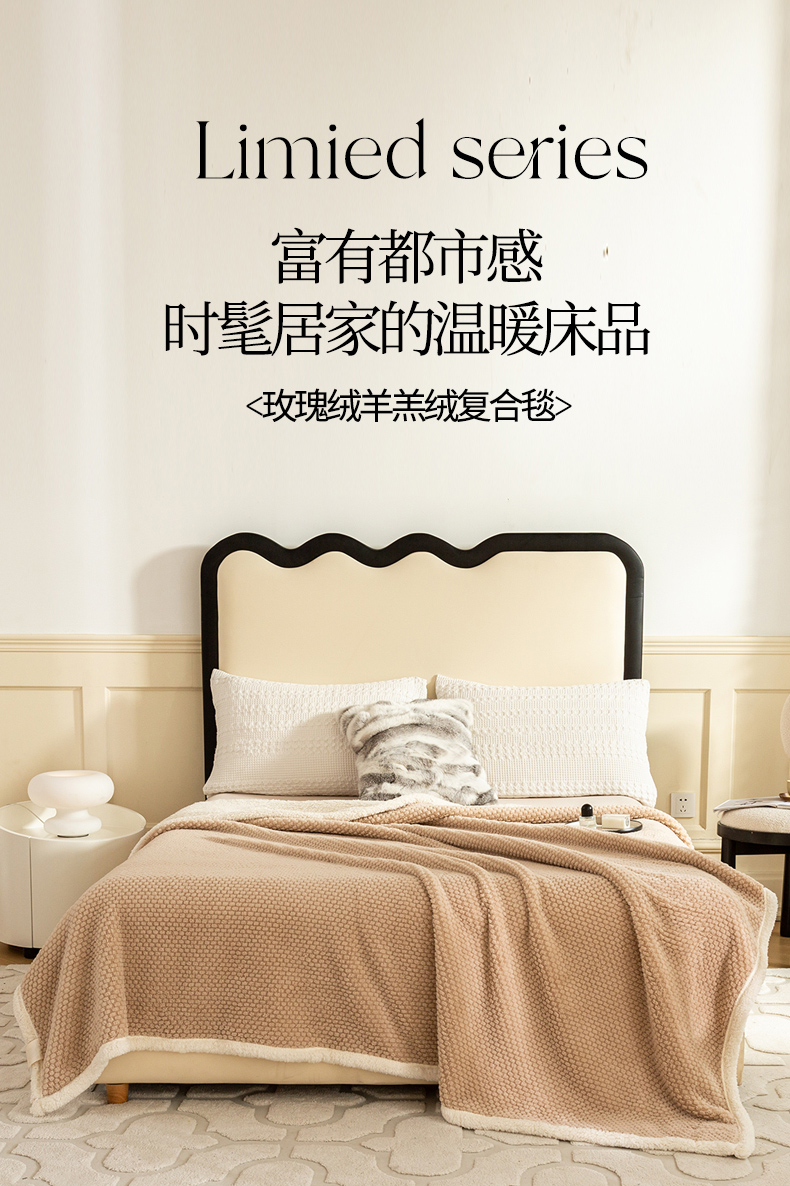 丝涟家居 2023新款舒适保暖玫瑰绒毛毯 卡其