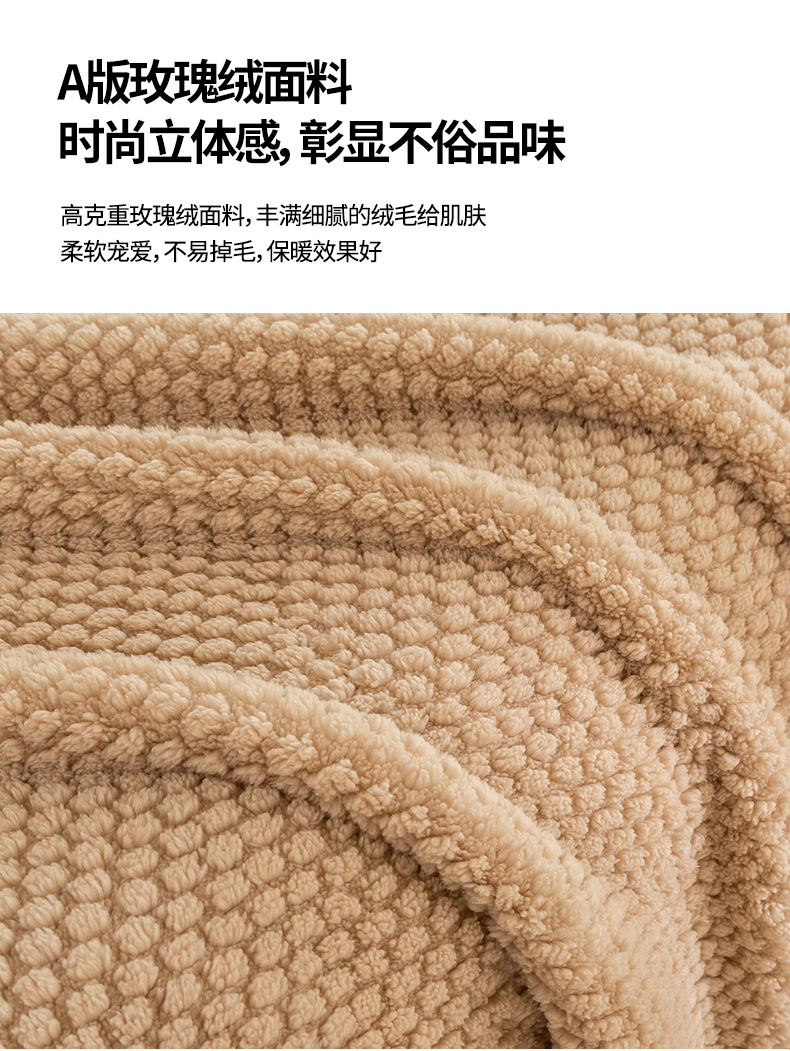 商品名称:丝涟家居 2023新款舒适保暖玫瑰绒毛毯 卡其