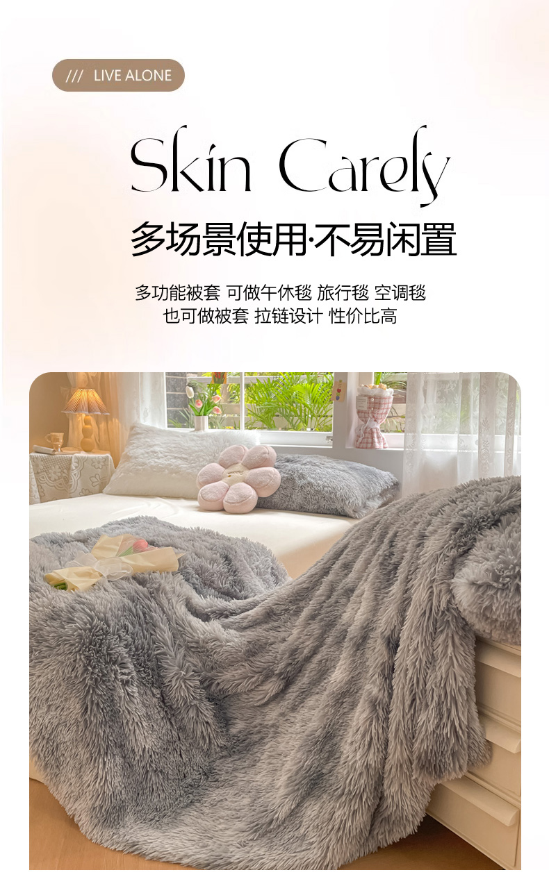 商品名称:慕澄家纺 2023新款水貂绒被套盖毯两用毯子 彩虹-浅灰