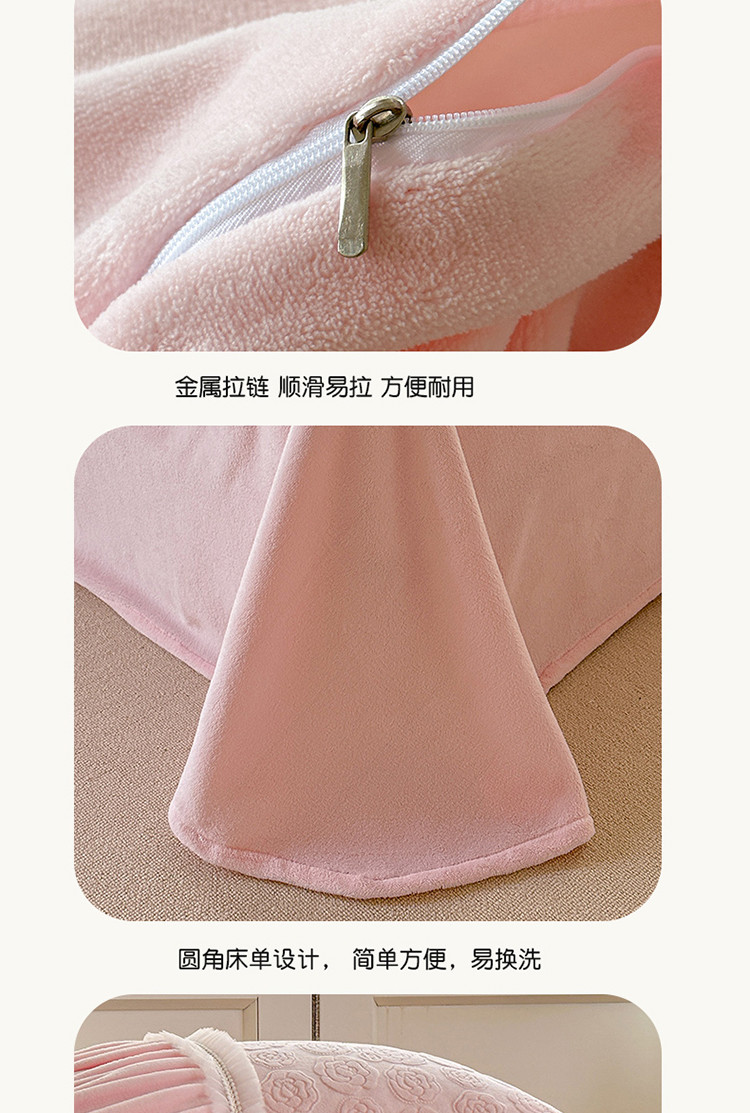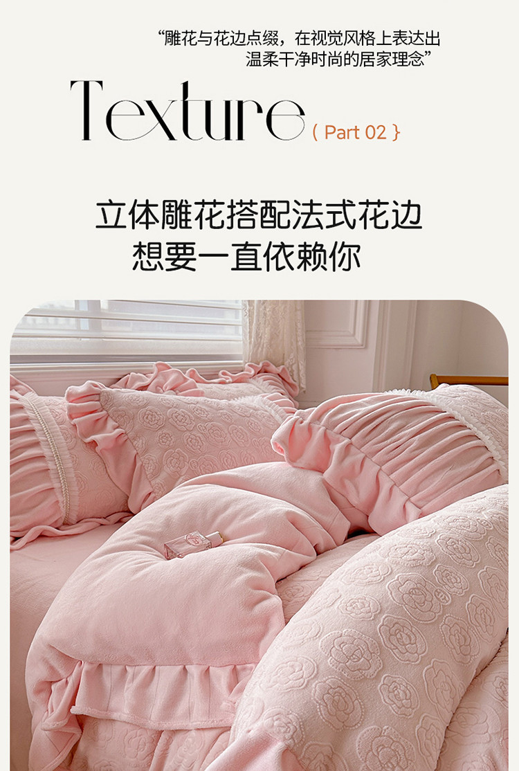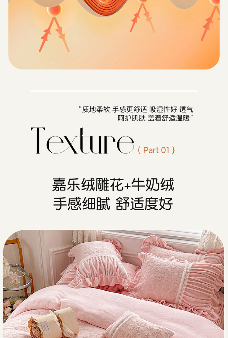 (总)亲亲公主 2025新款高克重雕花牛奶绒床盖四件套-巴黎情缘,巴黎情缘-粉玉,巴黎情缘-香草绿,巴黎情缘-奶白