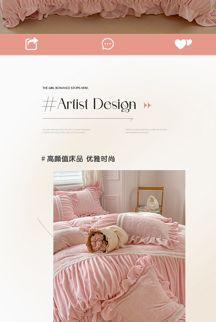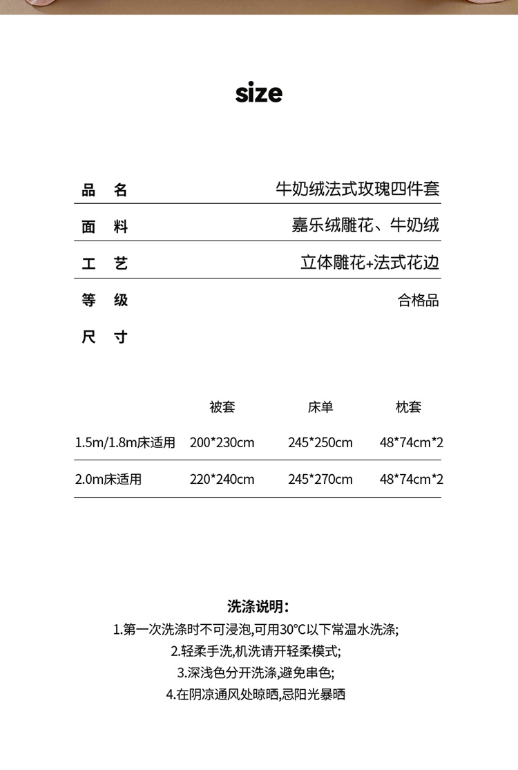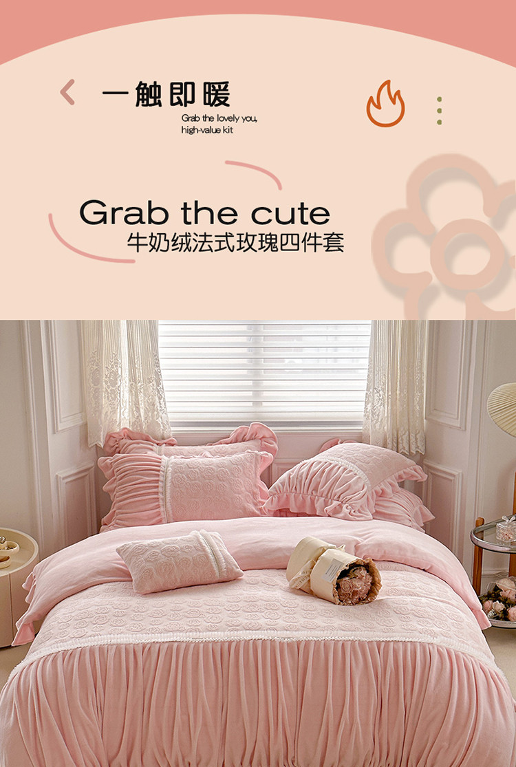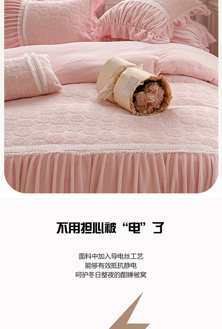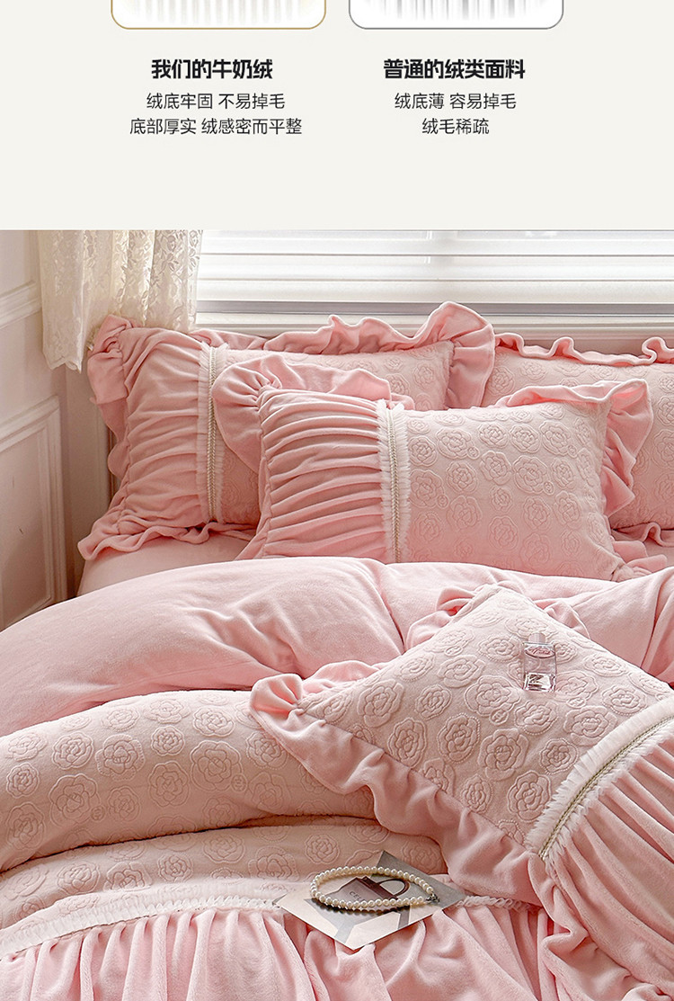 商品名称:亲亲公主 2025新款牛奶绒法式玫瑰四件套 粉色