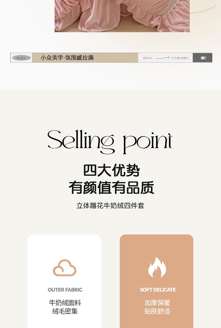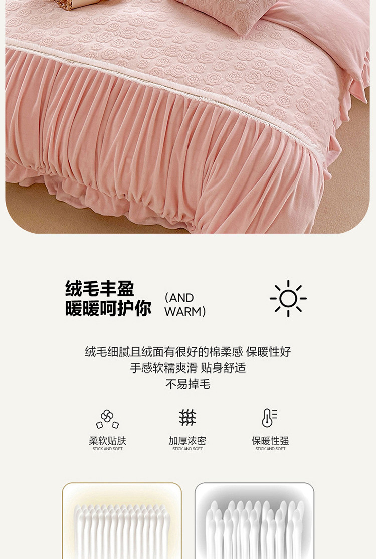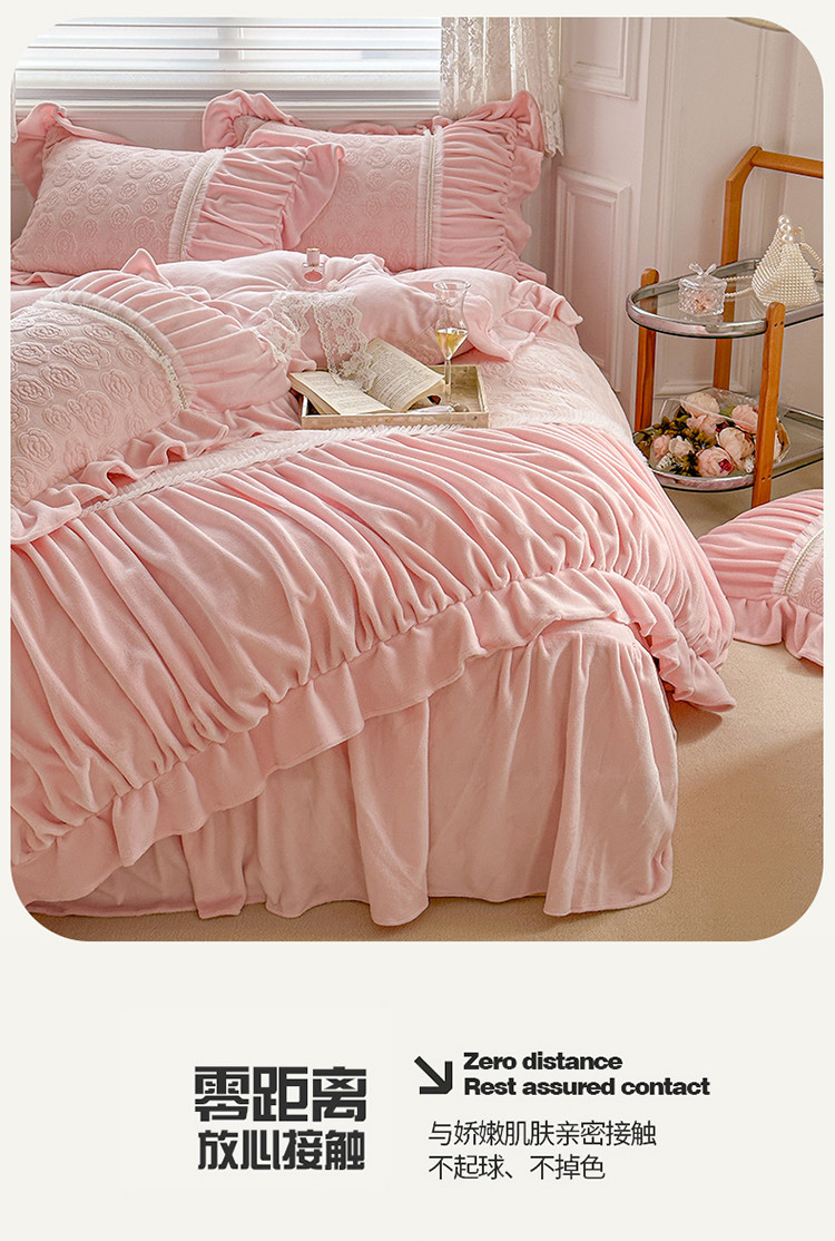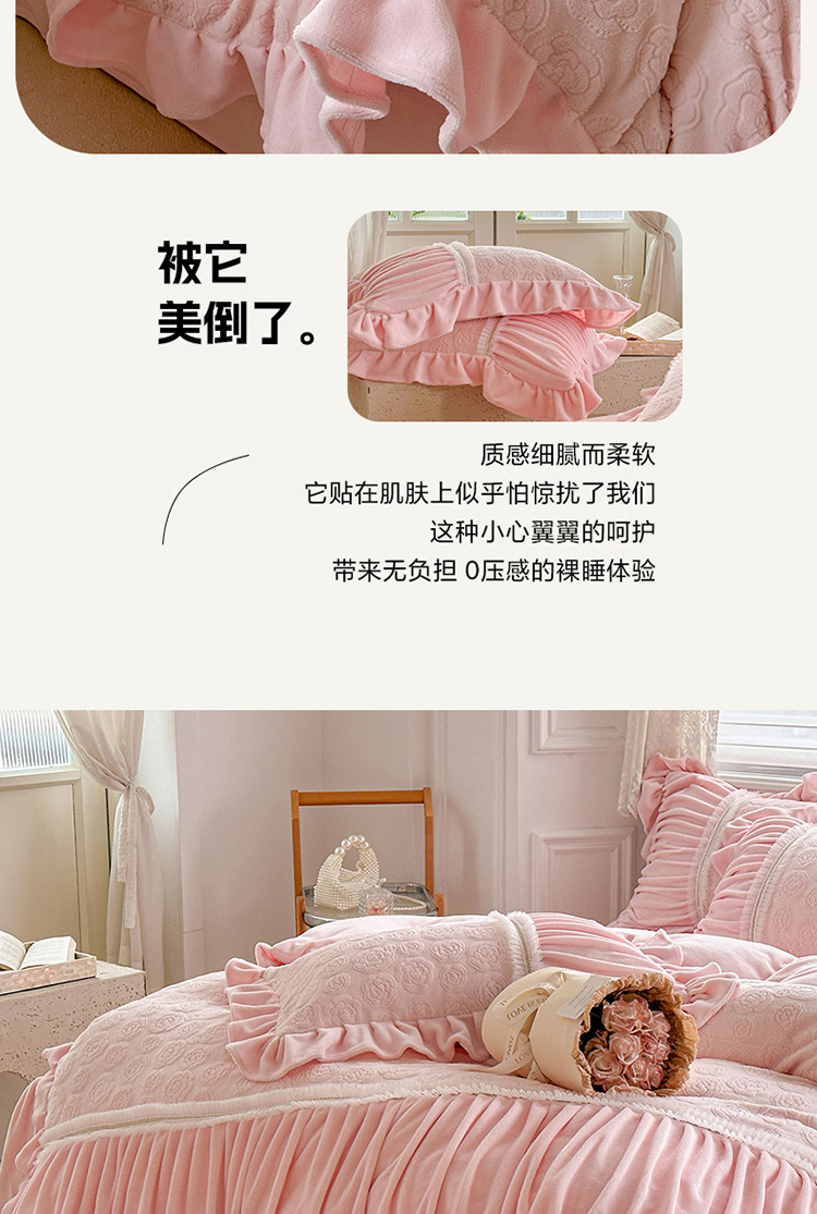 (总)亲亲公主 2025新款加厚高克重牛奶绒法式公主风四件套-热恋玫瑰,粉玉,奶白