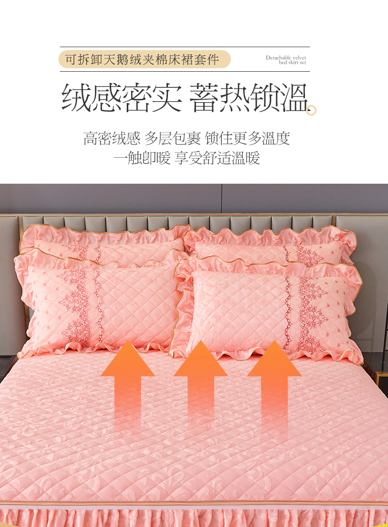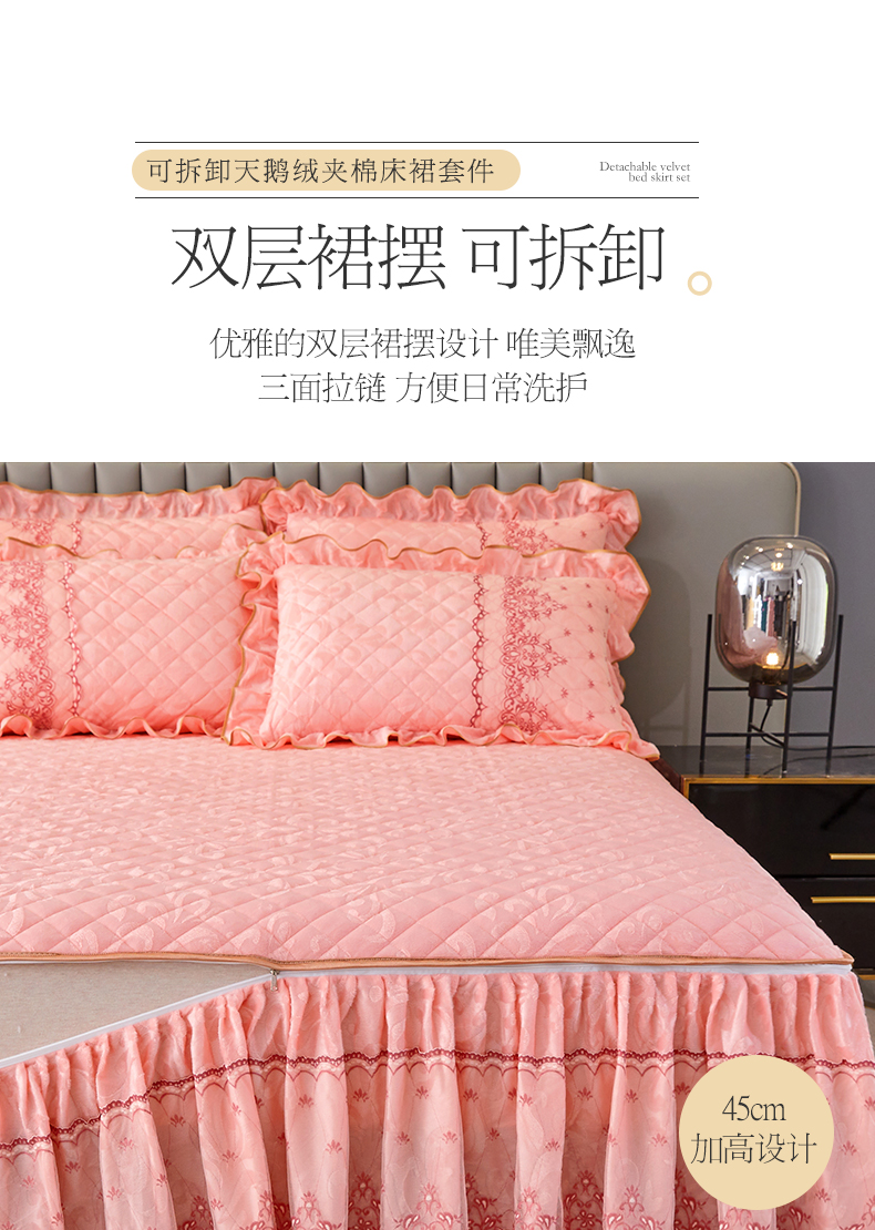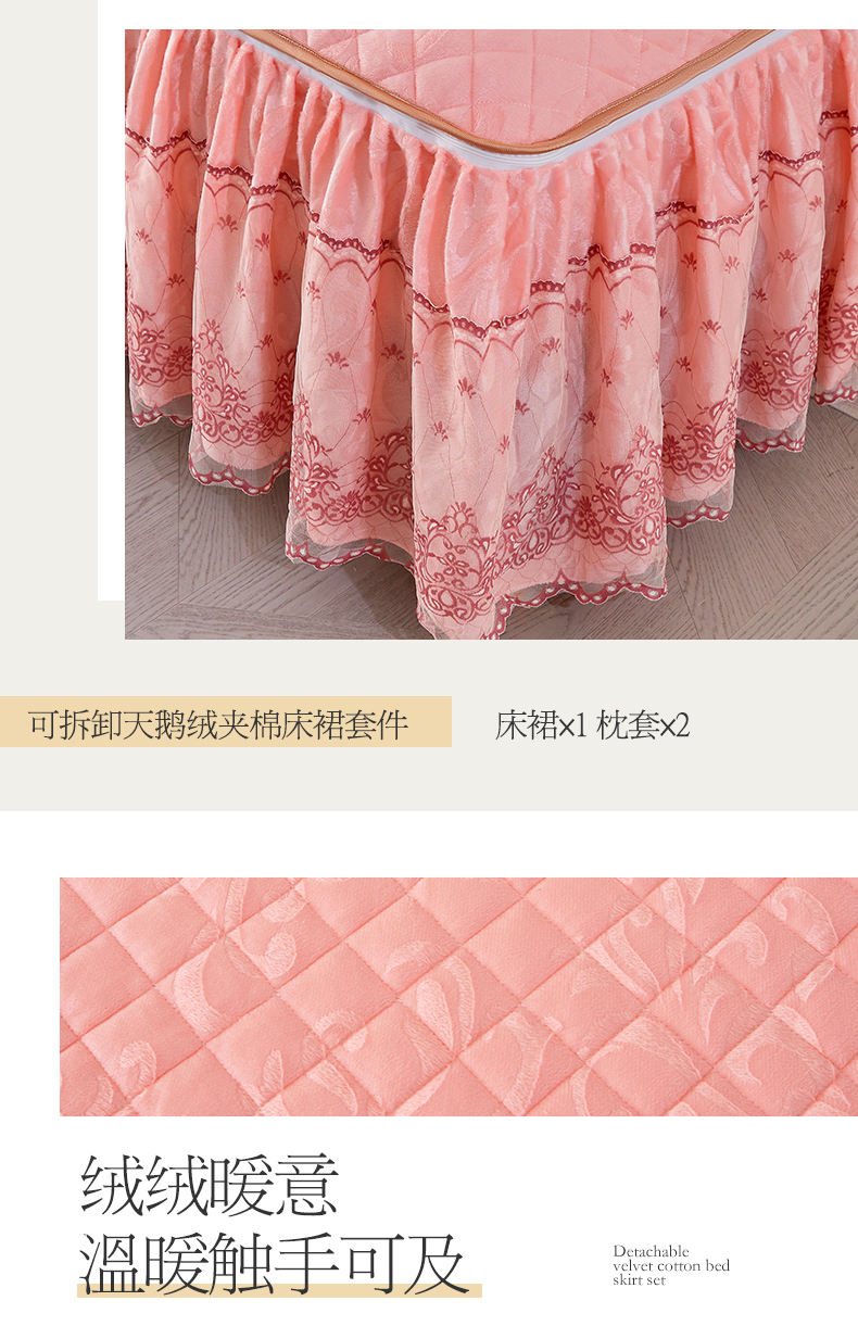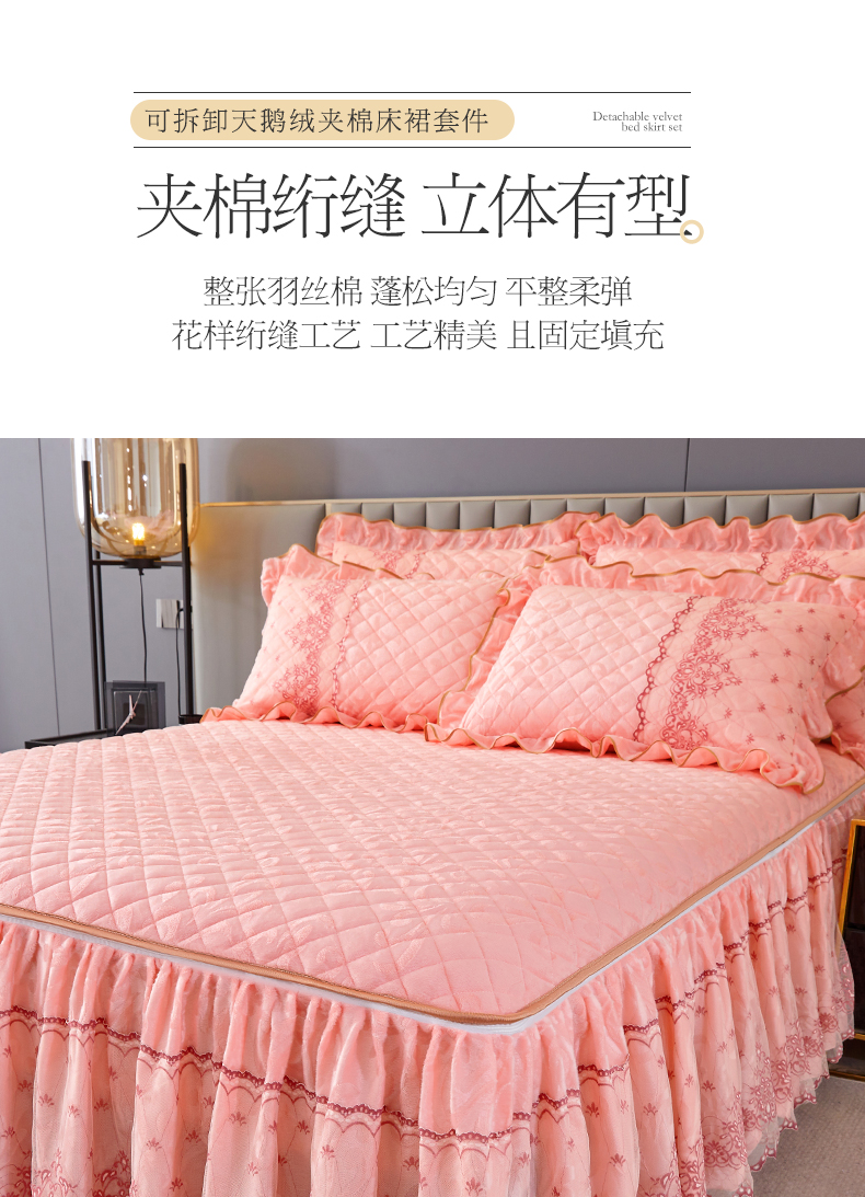 商品名称:网红馆 2025新款可拆卸天鹅绒夹棉床裙三件套-城市魅影 城市魅影 梅子粉