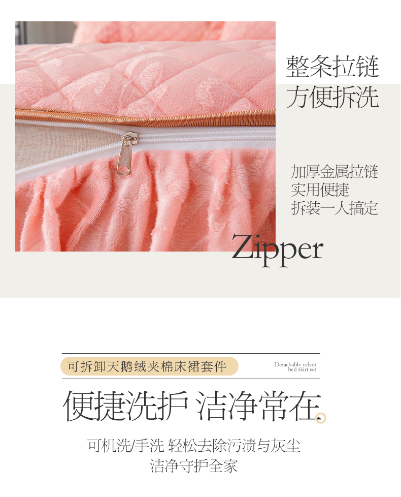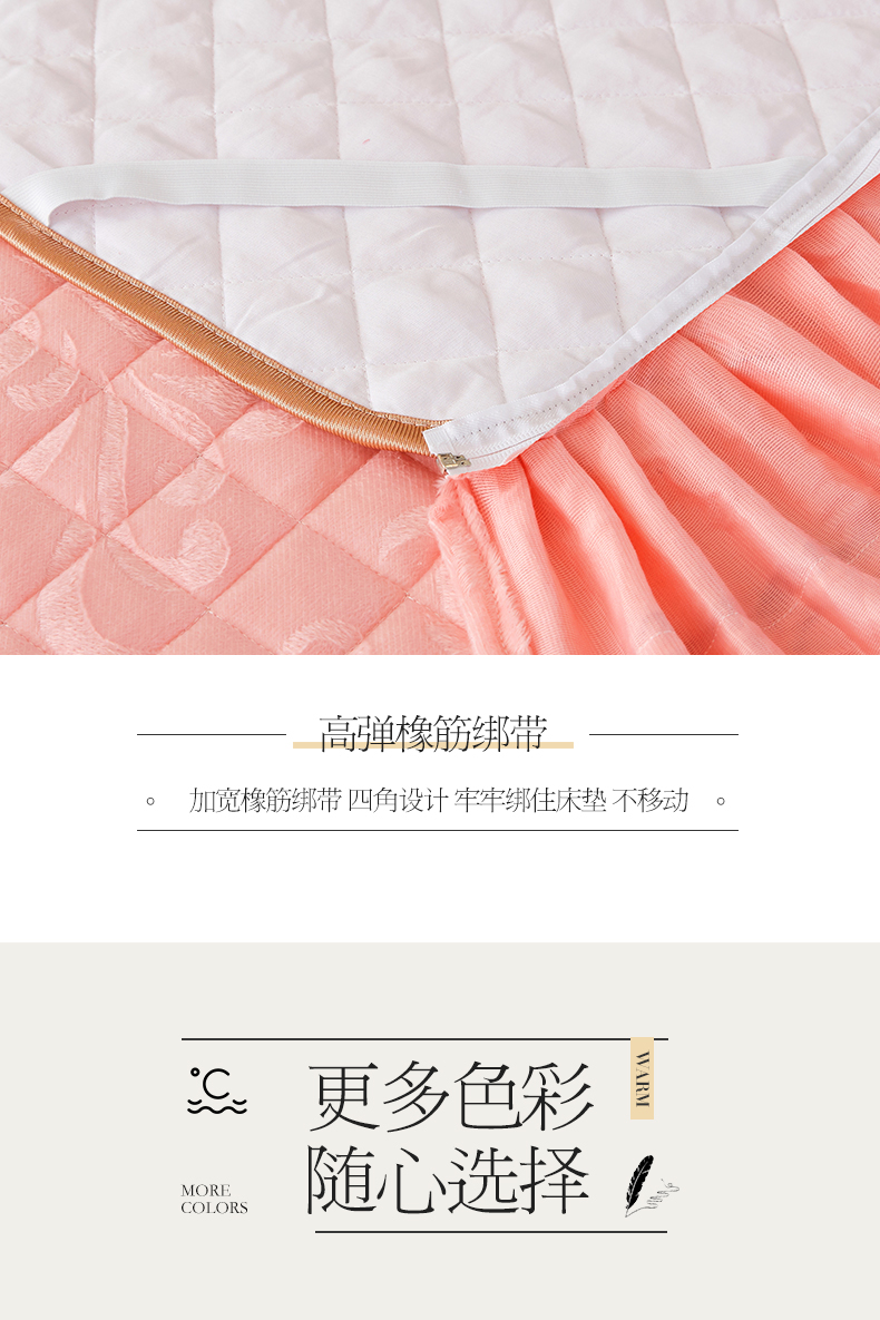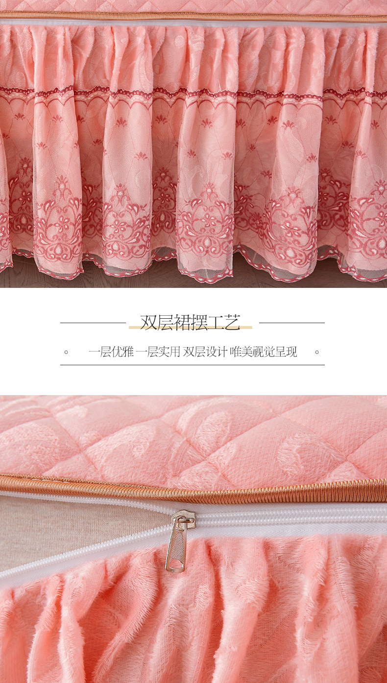 商品名称:网红馆 2025新款可拆卸天鹅绒夹棉床裙三件套-城市魅影 城市魅影 梅子粉