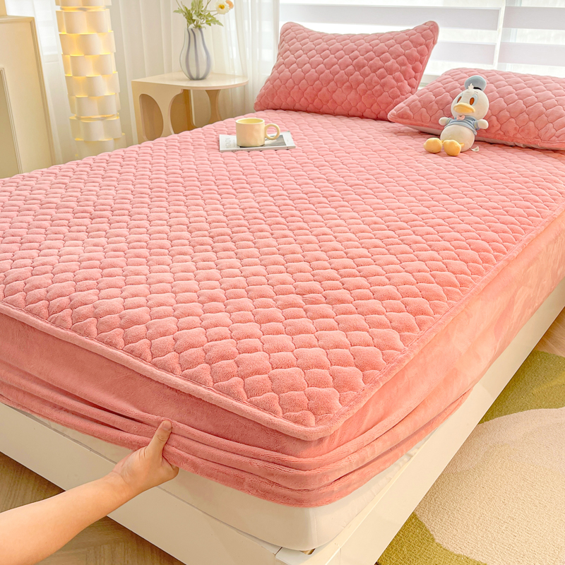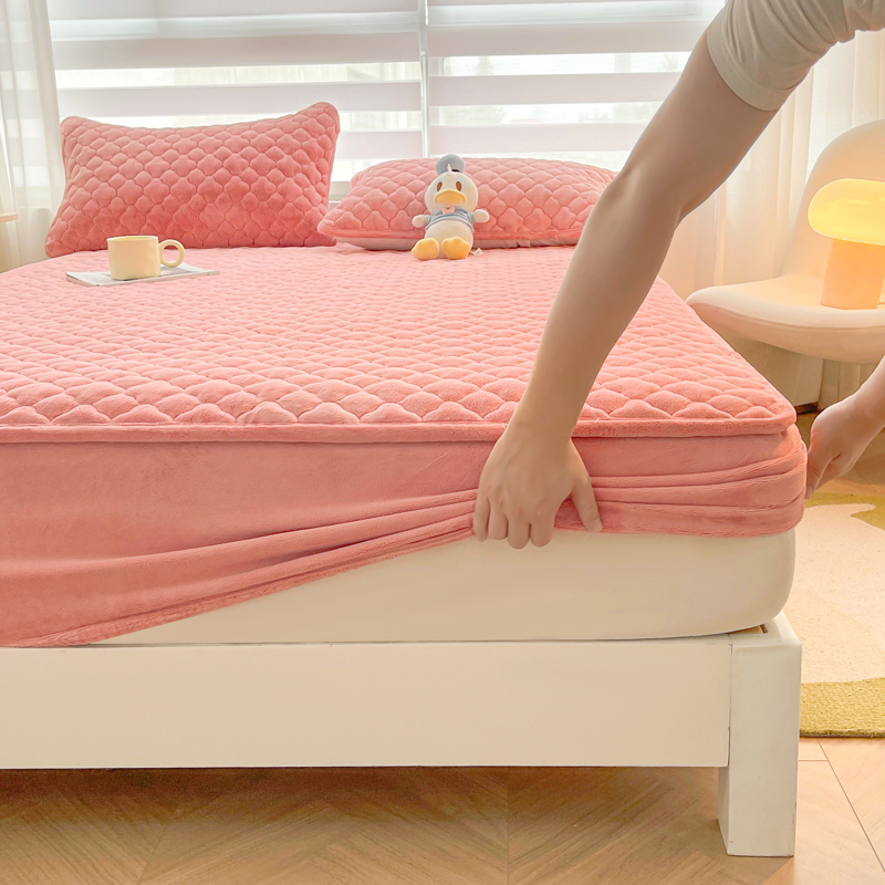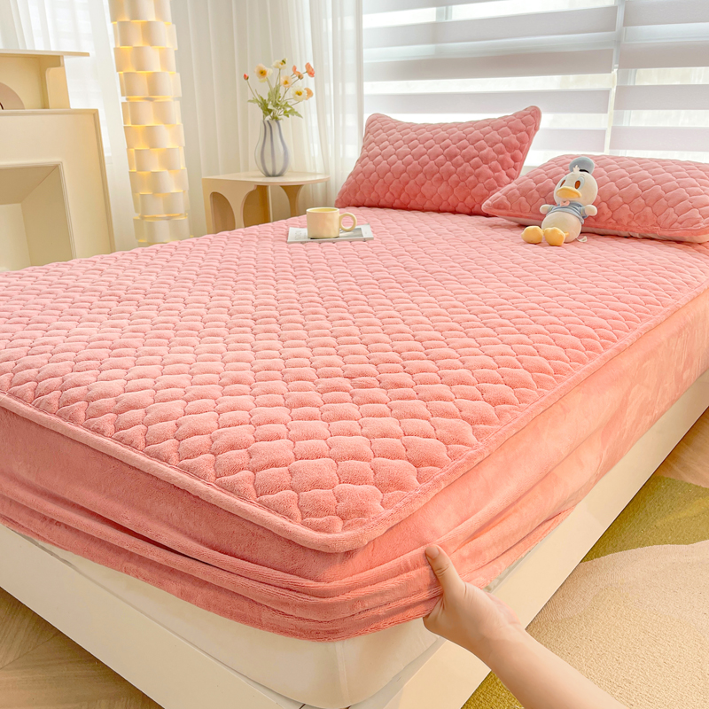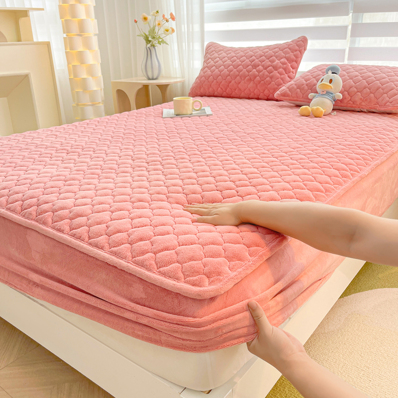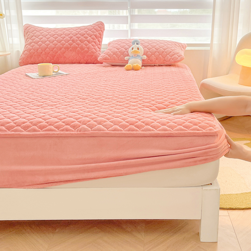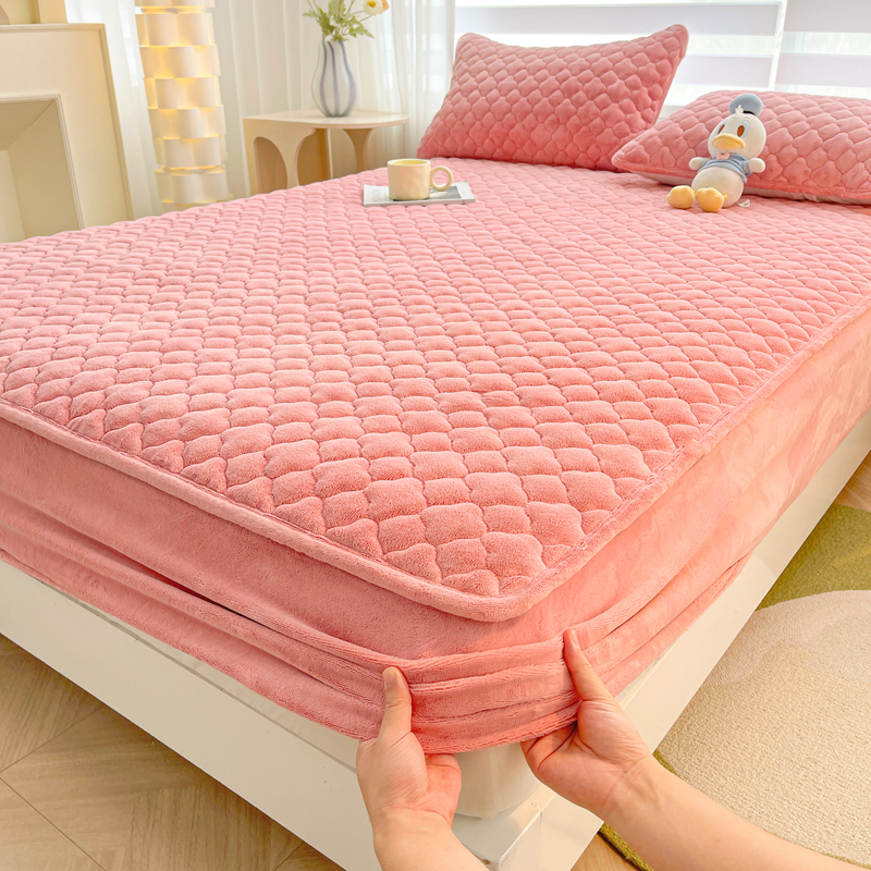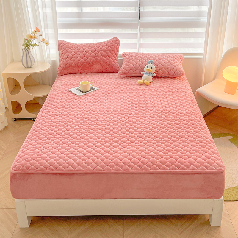 商品名称:梵朴 2023新款牛奶绒夹棉床笠 纯色-豆沙粉