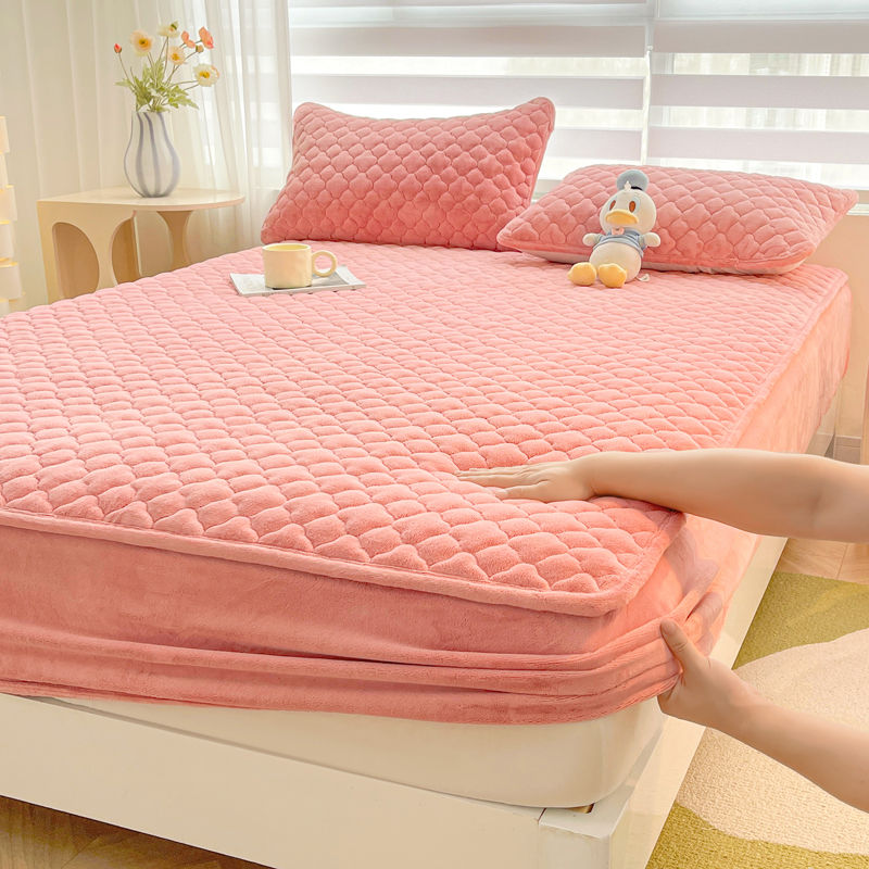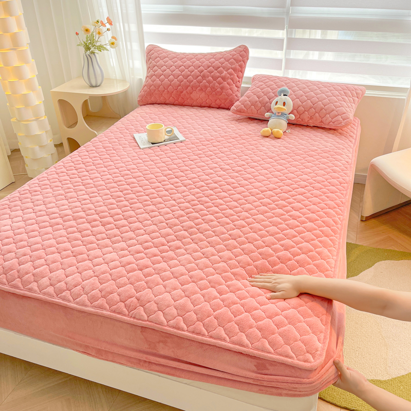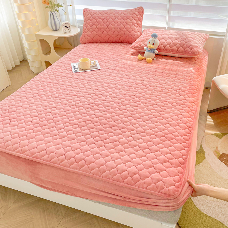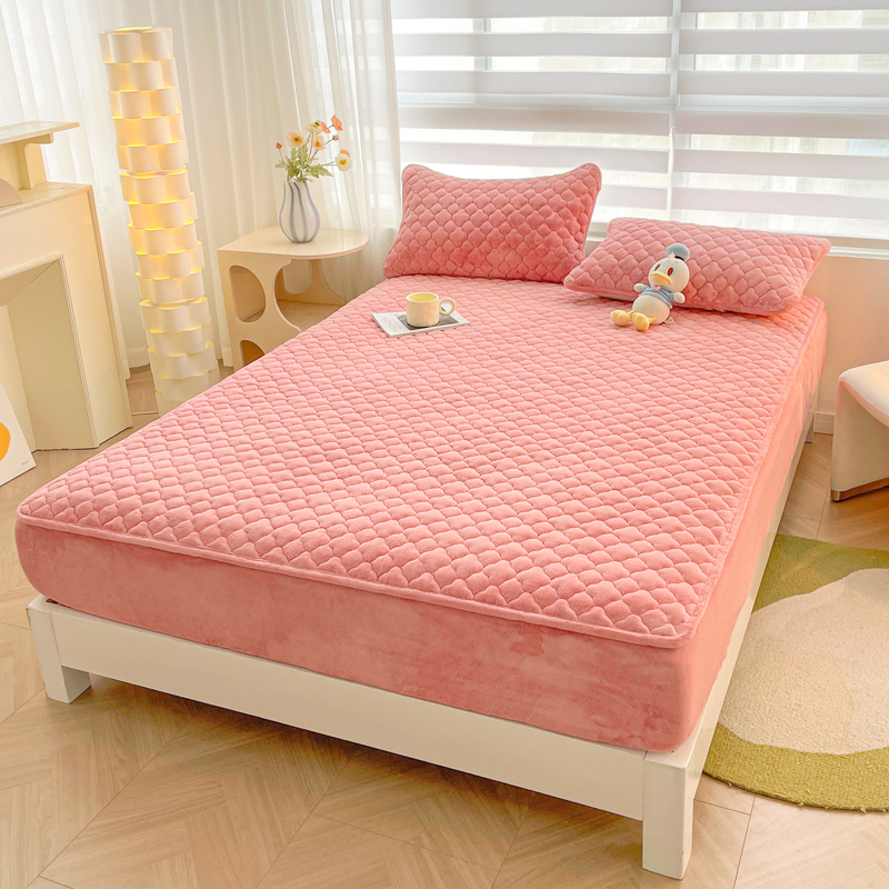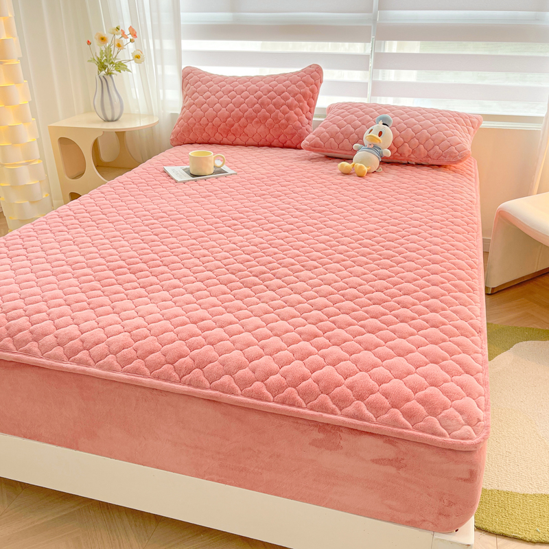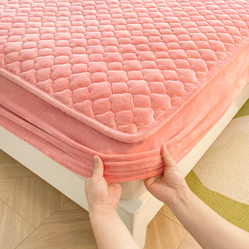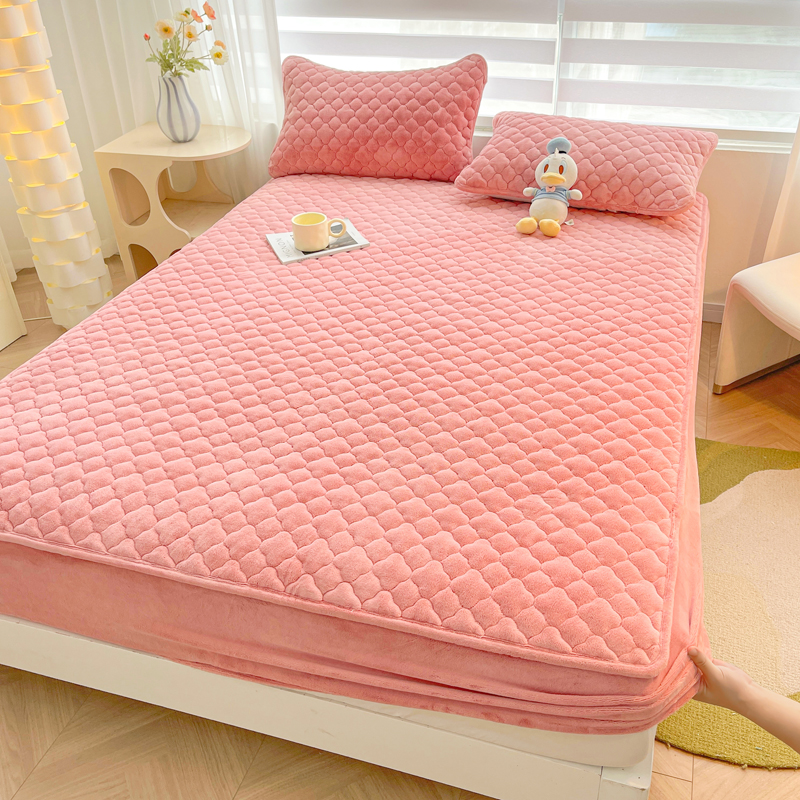 商品名称:梵朴 2023新款牛奶绒夹棉床笠 纯色-豆沙粉