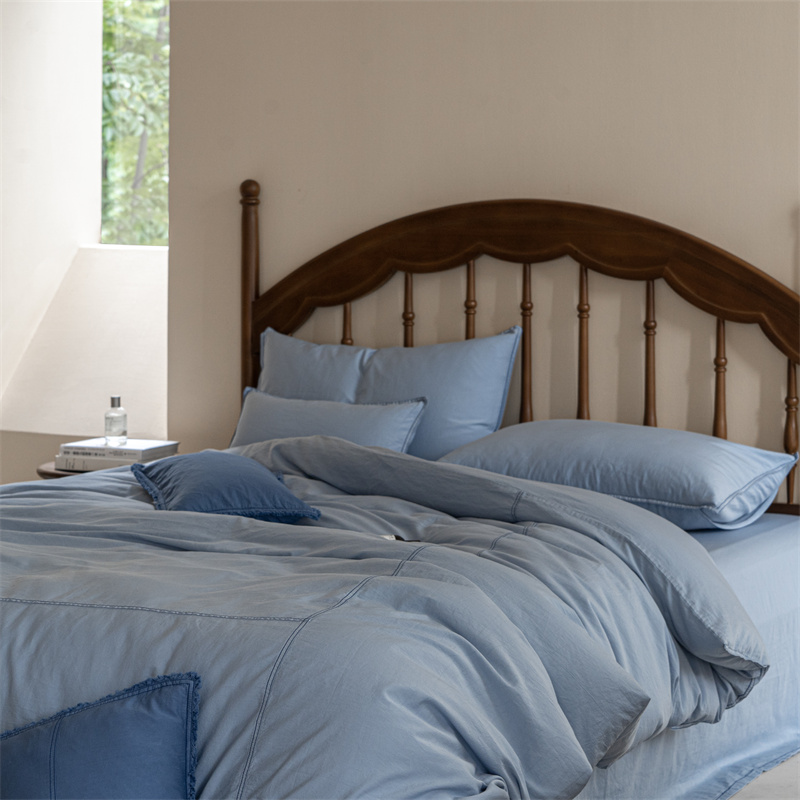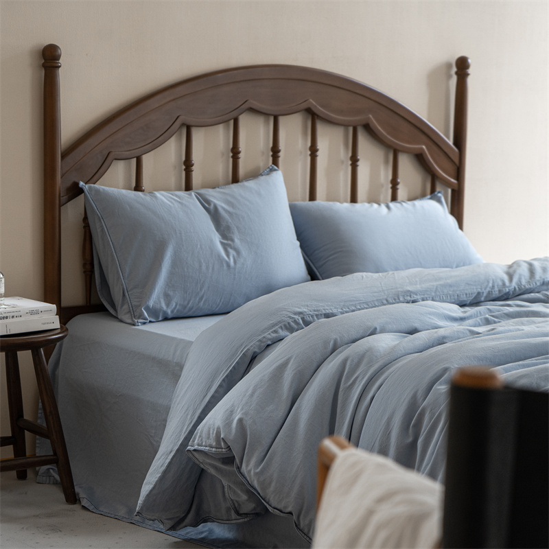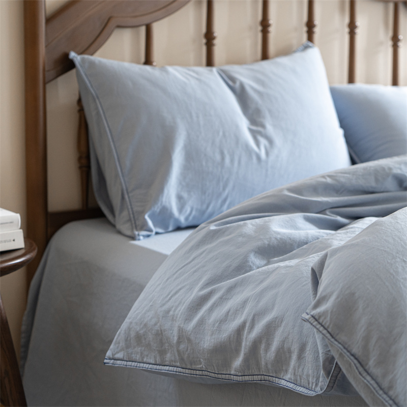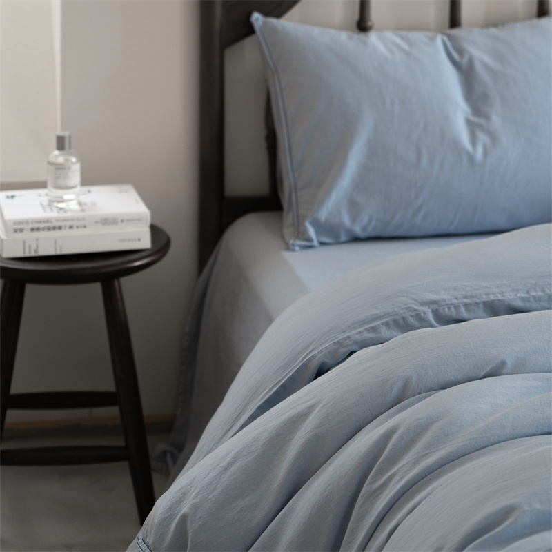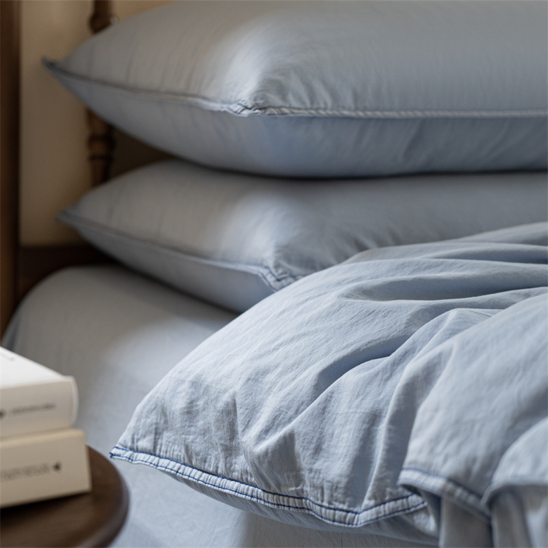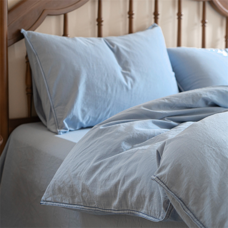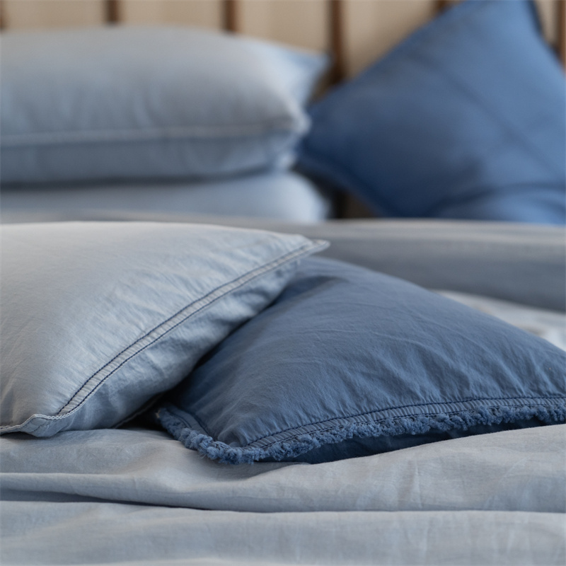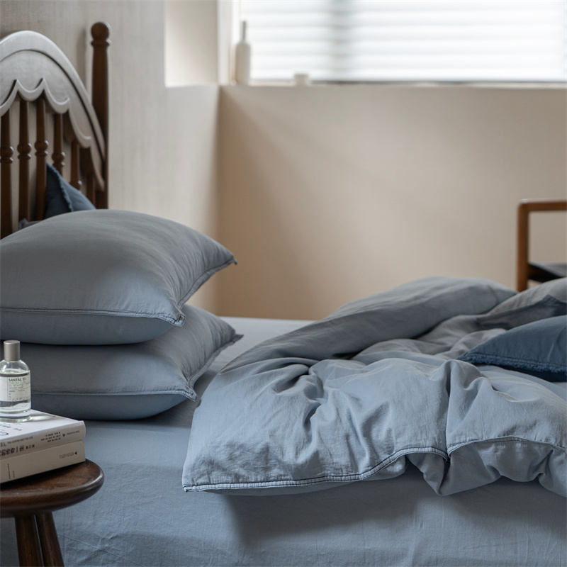 当前位置: 91家纺网 > 商品网购 > 床品套件 > 四件套 > 水洗棉四件套 > 子和 2023新款80贡缎水洗牛仔蓝四件套及搭配小件 浅色牛仔蓝色-场景二