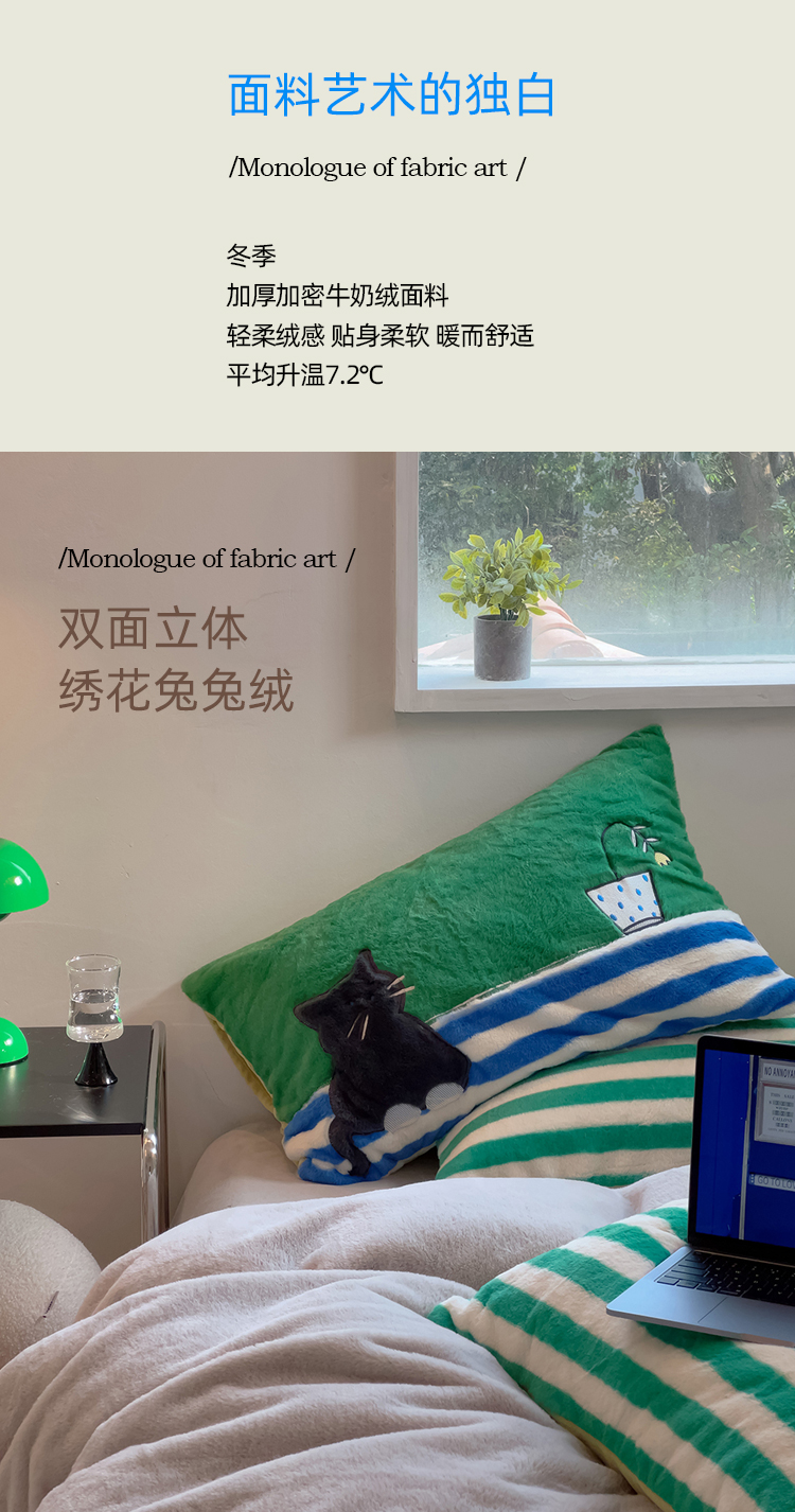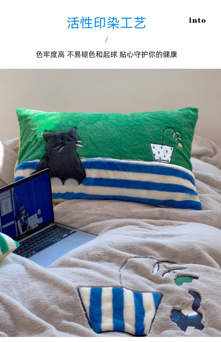 商品名称:(总)桔子家纺 2023新款全消光牛奶绒精致贴布刺绣四件套--安睡猫
