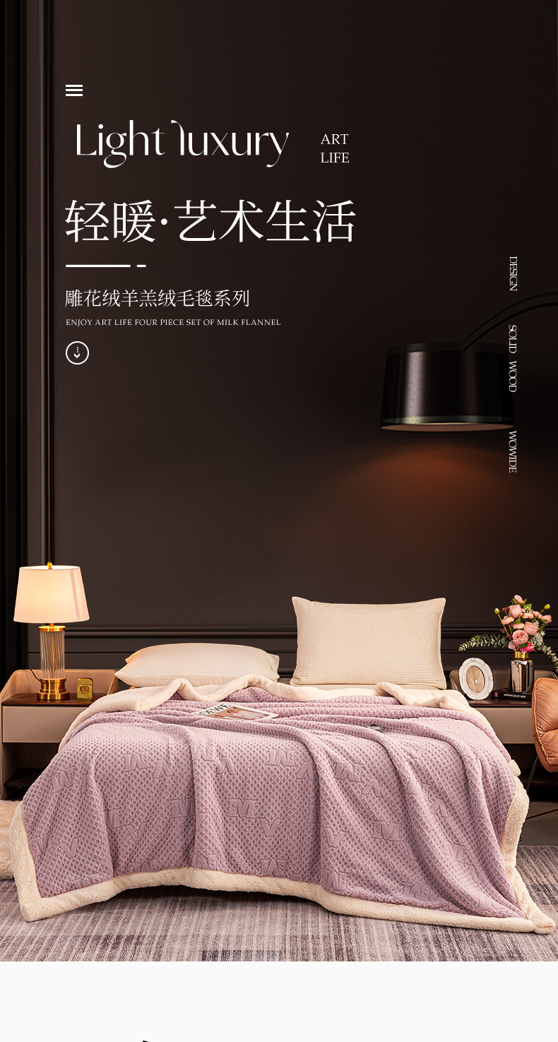 慕木家纺 2025新款爆款加厚AB版提花雕花绒羊羔绒毛毯 优雅紫