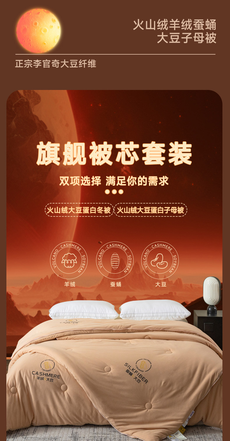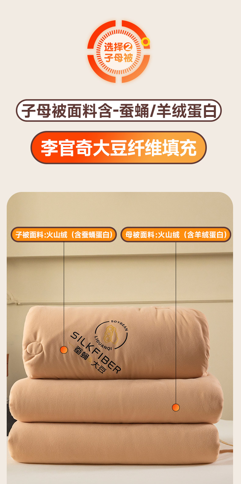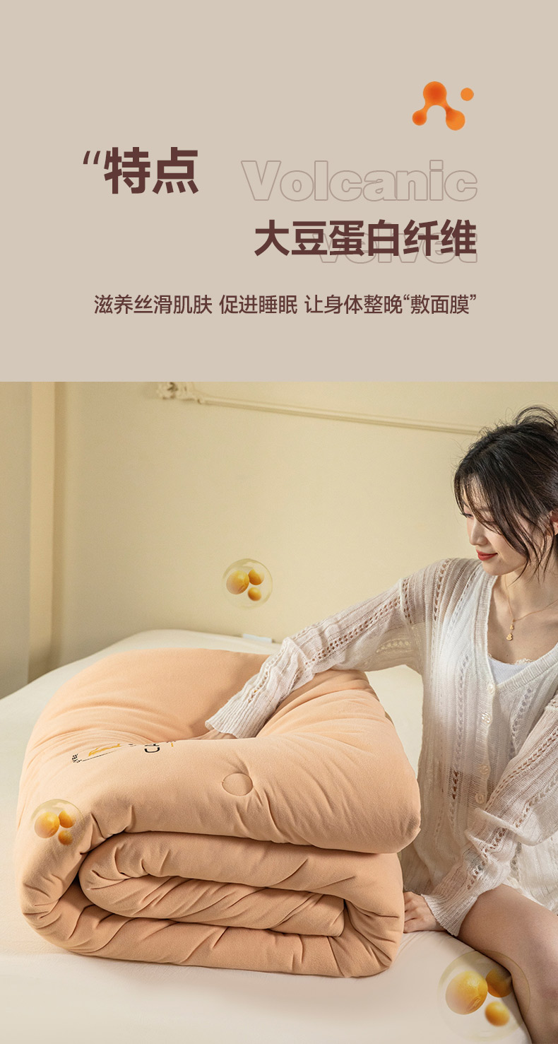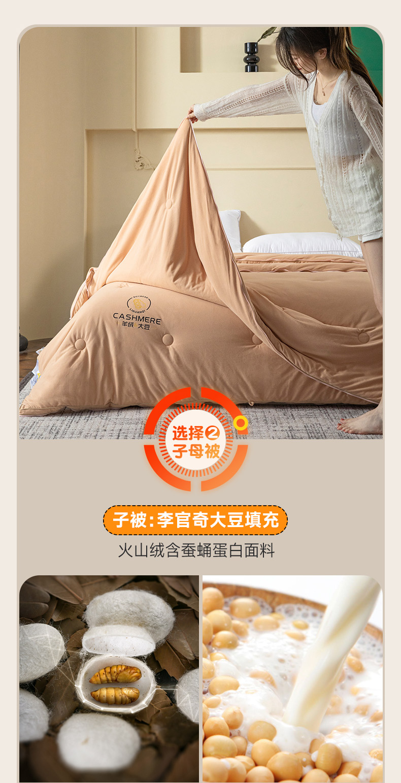 • 91家纺网 家纺一手货源 找家纺 被靠被 2023新款火山绒李官奇填充大豆被子母被春秋被芯冬被子 奶茶黄