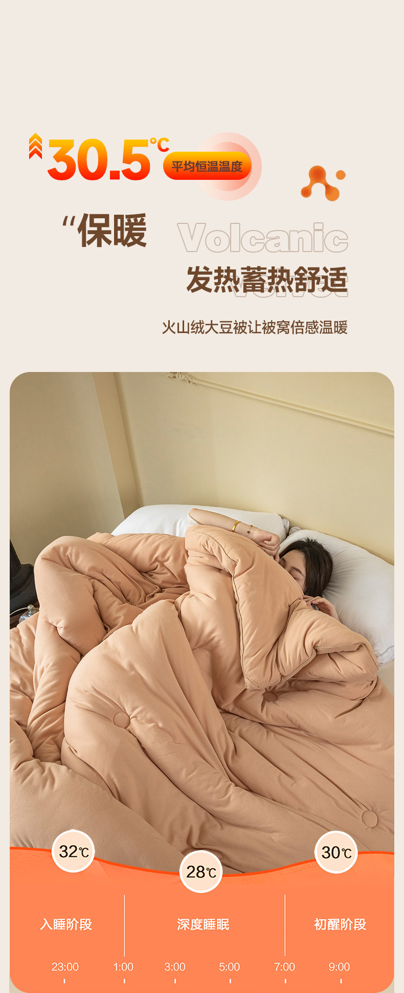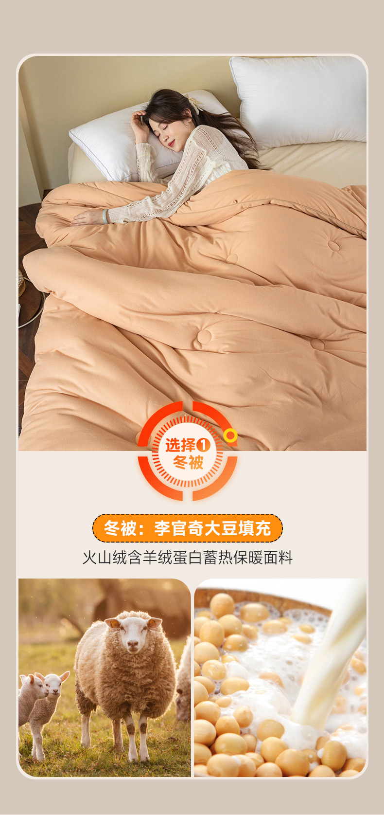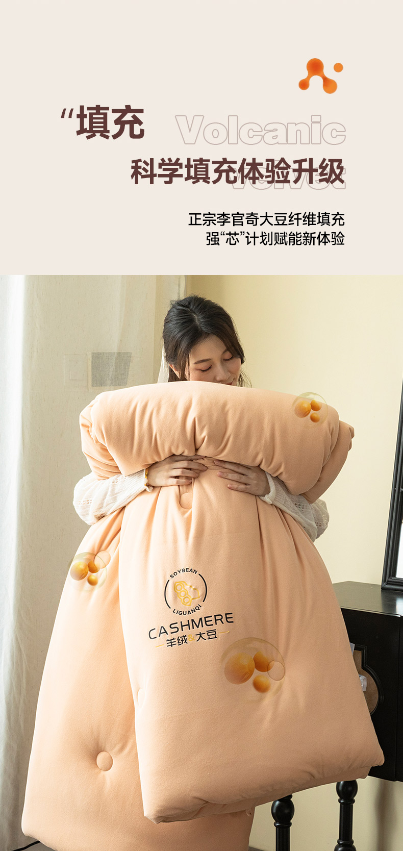 被靠被 2023新款火山绒李官奇填充大豆被子母被春秋被芯冬被子 奶茶黄