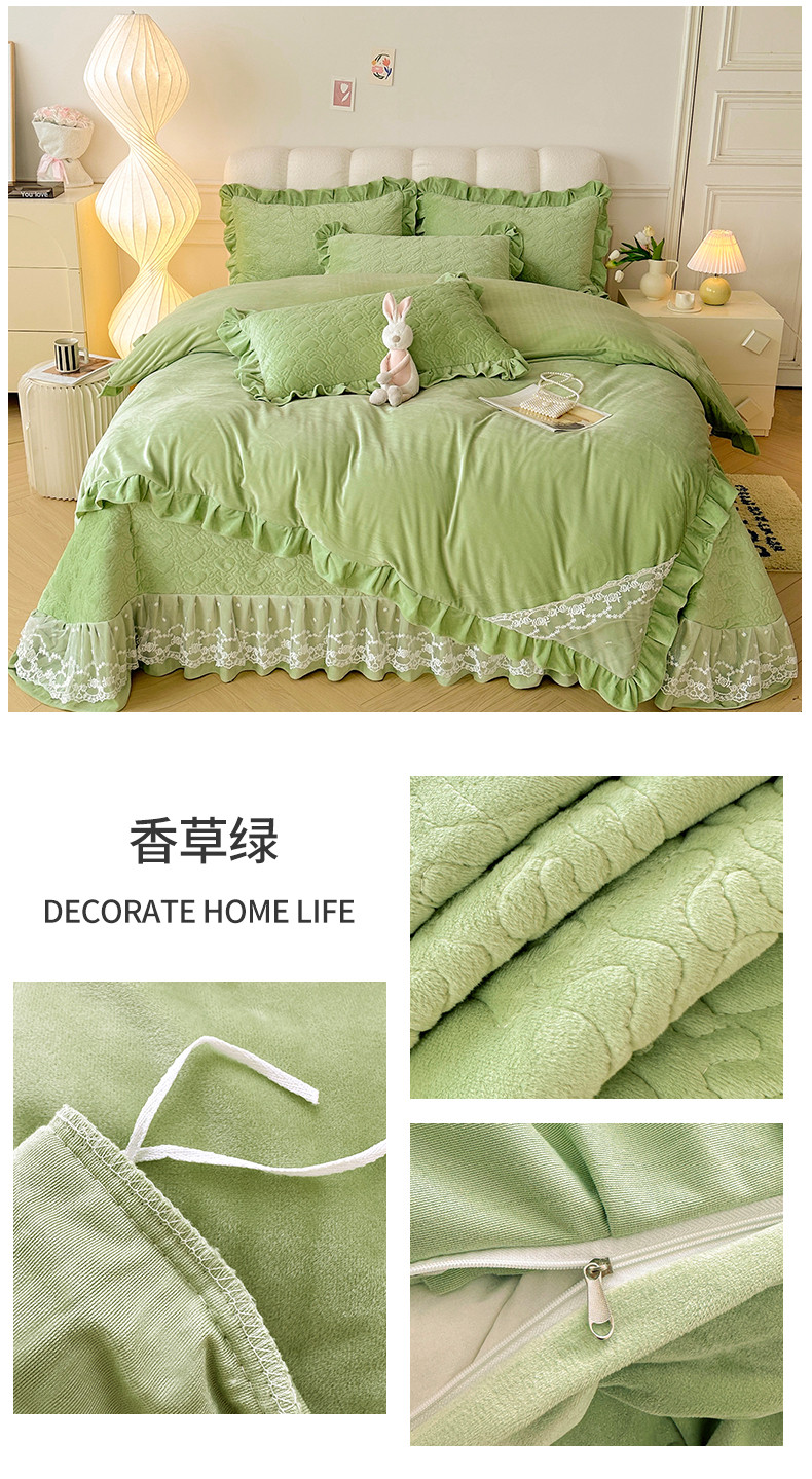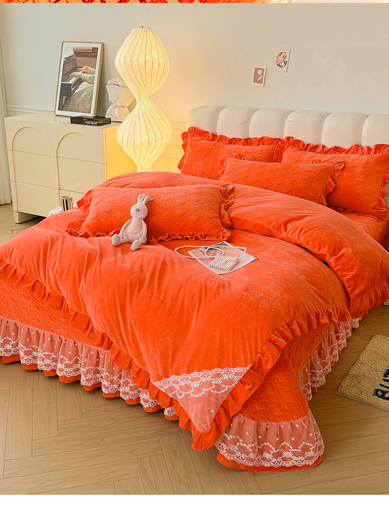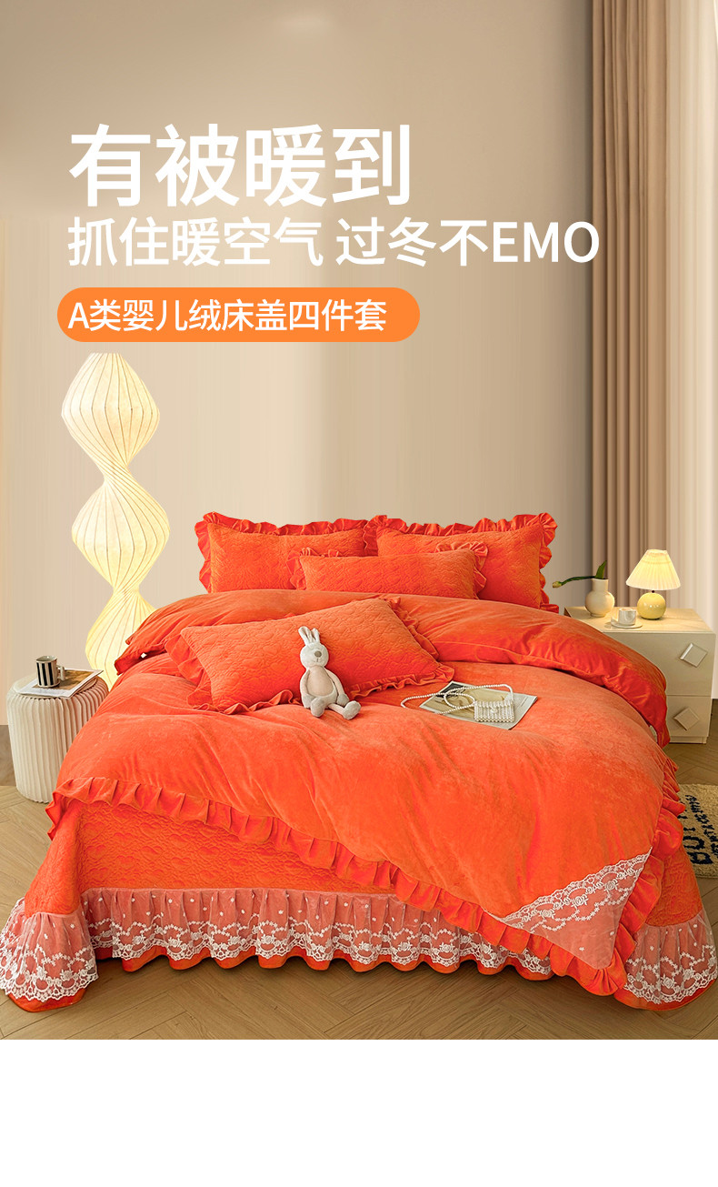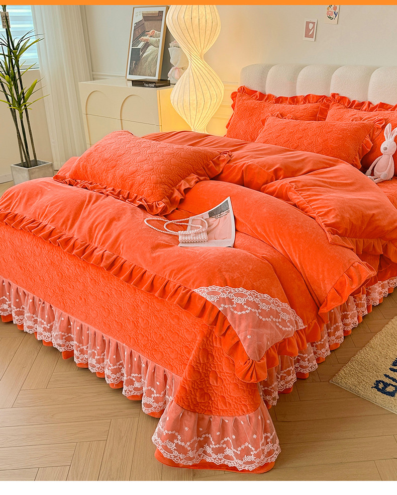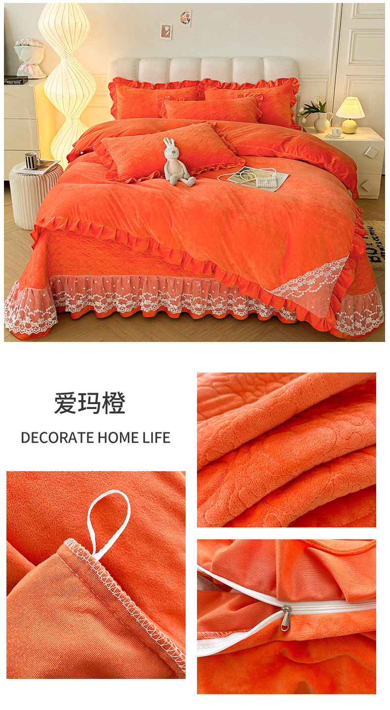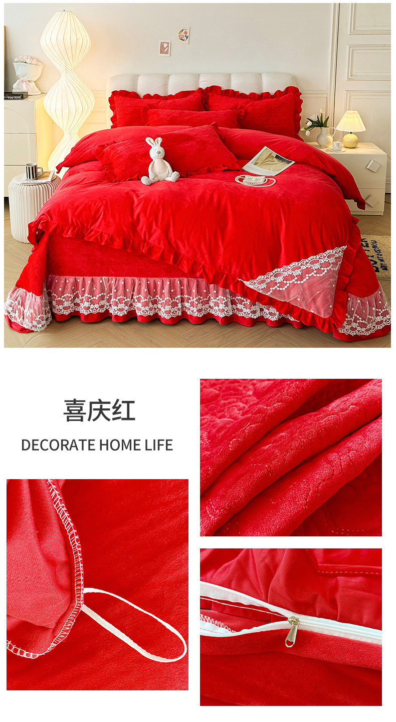 (总)恒爱 2022秋冬水晶绒翩翩花舞夹棉床裙四件套,大红色,豆沙红,橄榄绿,公主粉,桔色,咖啡色,孔雀绿,拉菲红,罗兰紫,玫红色,美人玉,米白色,米驼色,抹茶绿,浅灰色,紫色