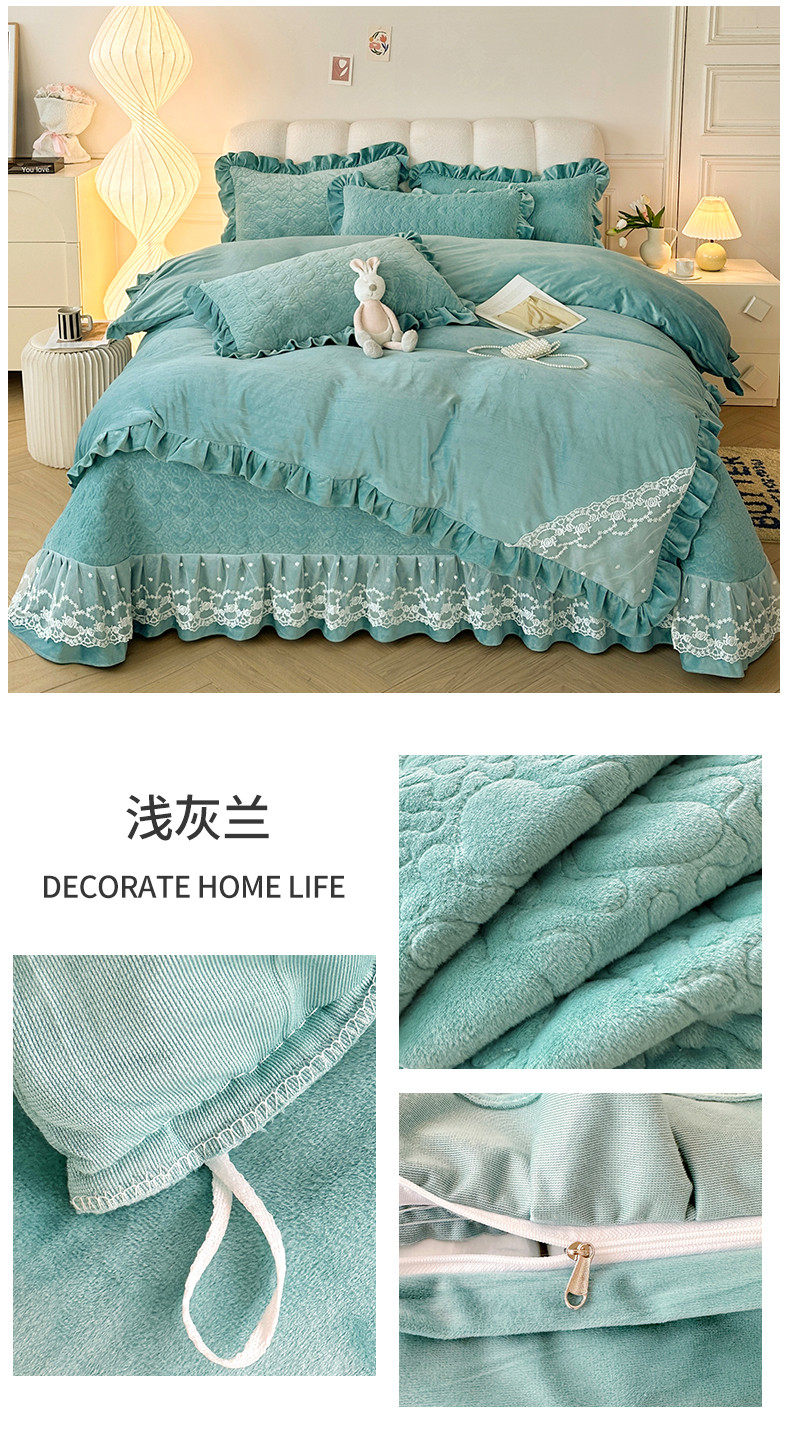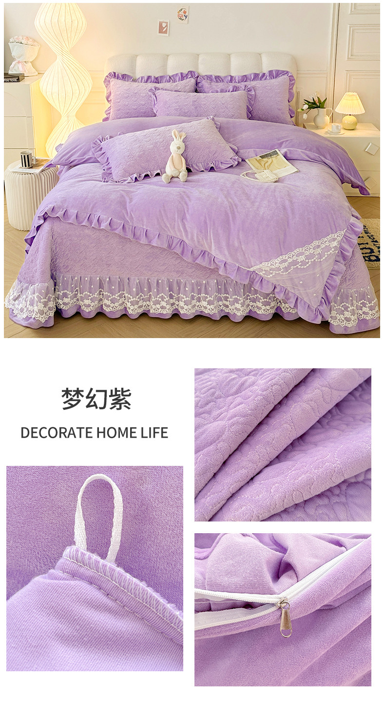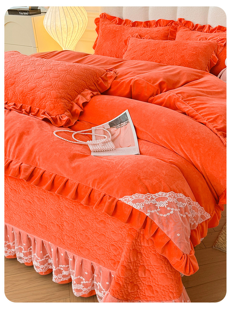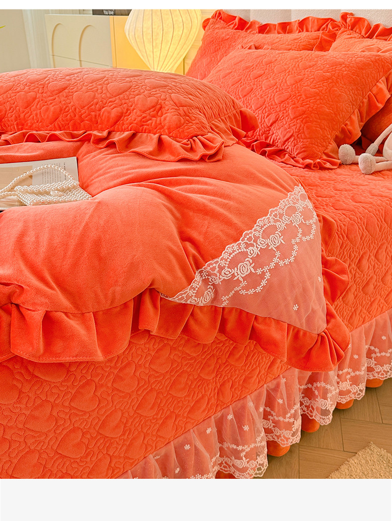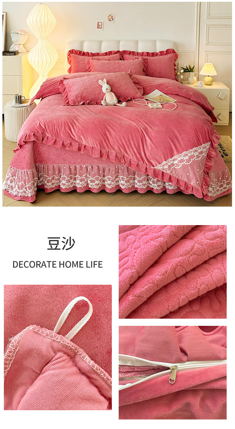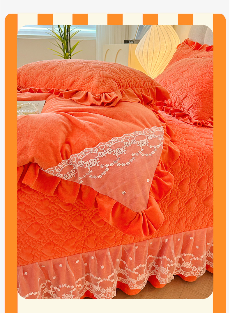(总)恒爱 2023新款A类婴儿绒立体蕾丝夹棉加高花边床盖四件套-甜心