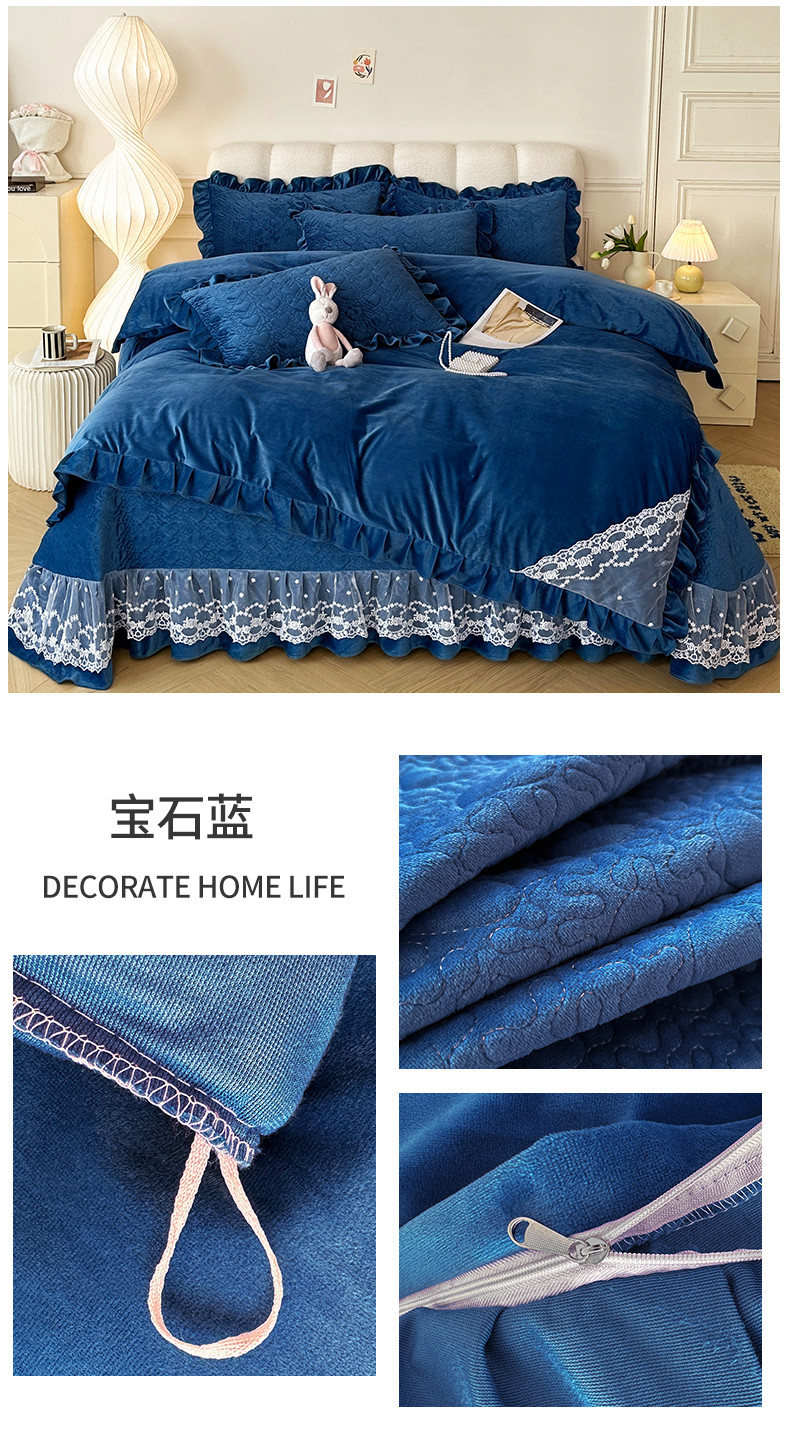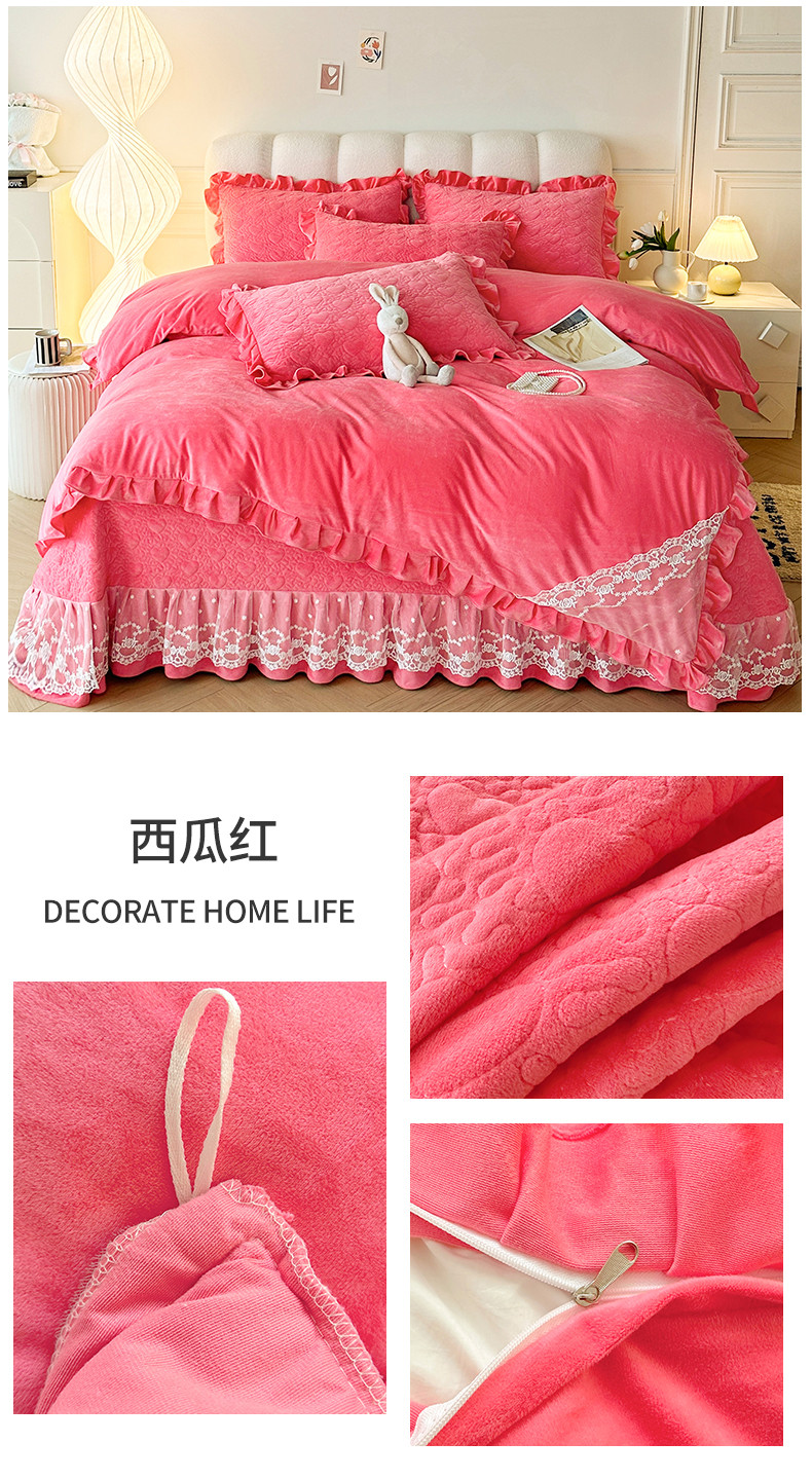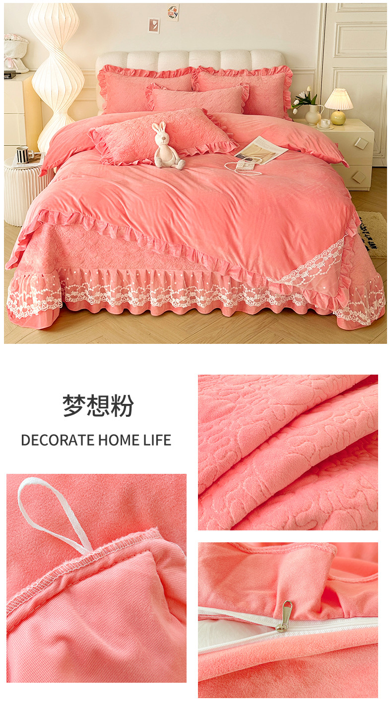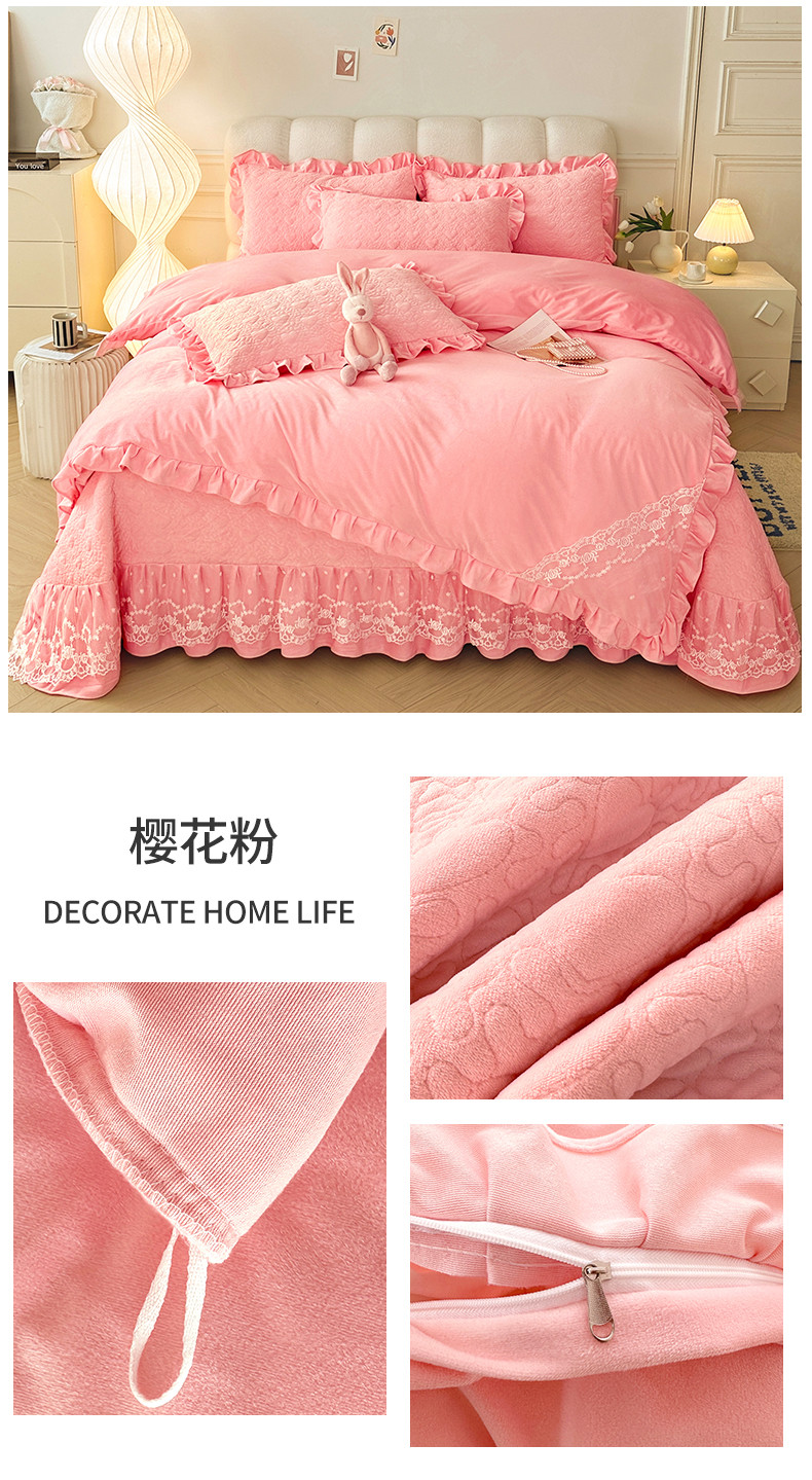 商品名称:(总)恒爱 2023新款A类婴儿绒立体蕾丝夹棉加高花边床盖四件套-甜心
