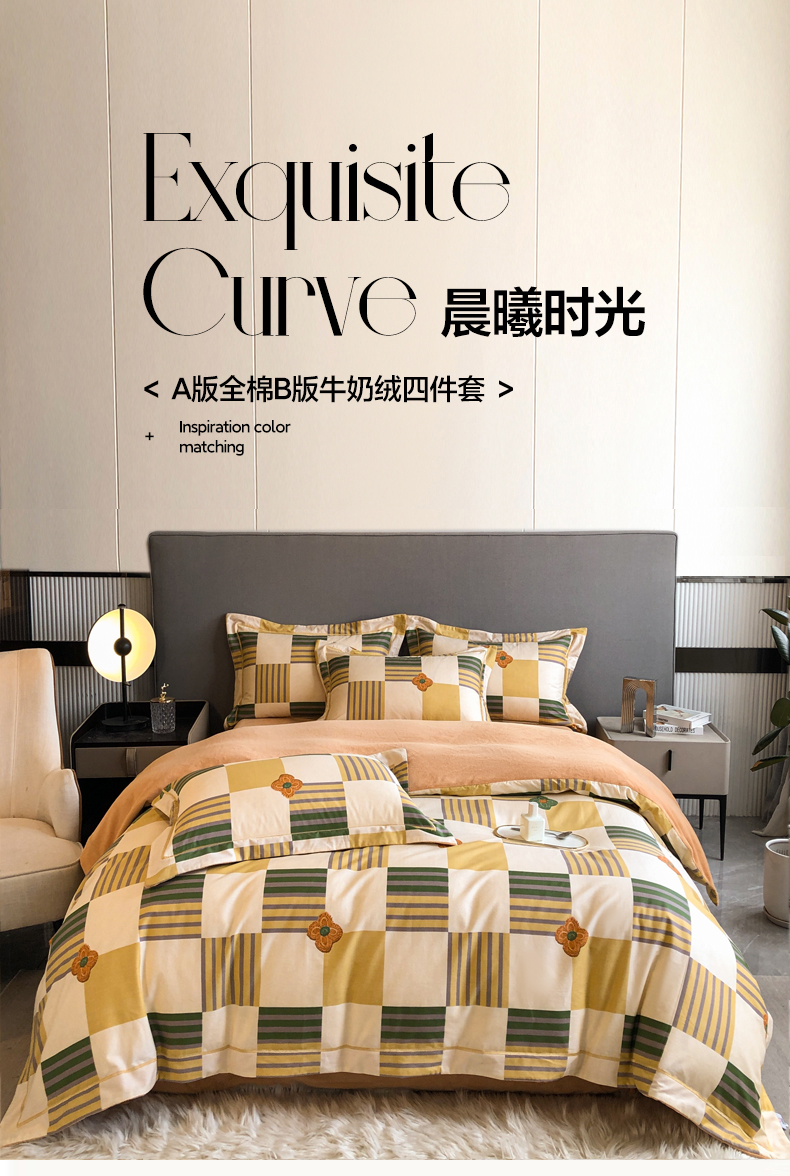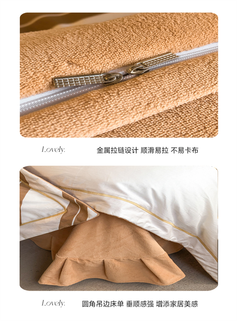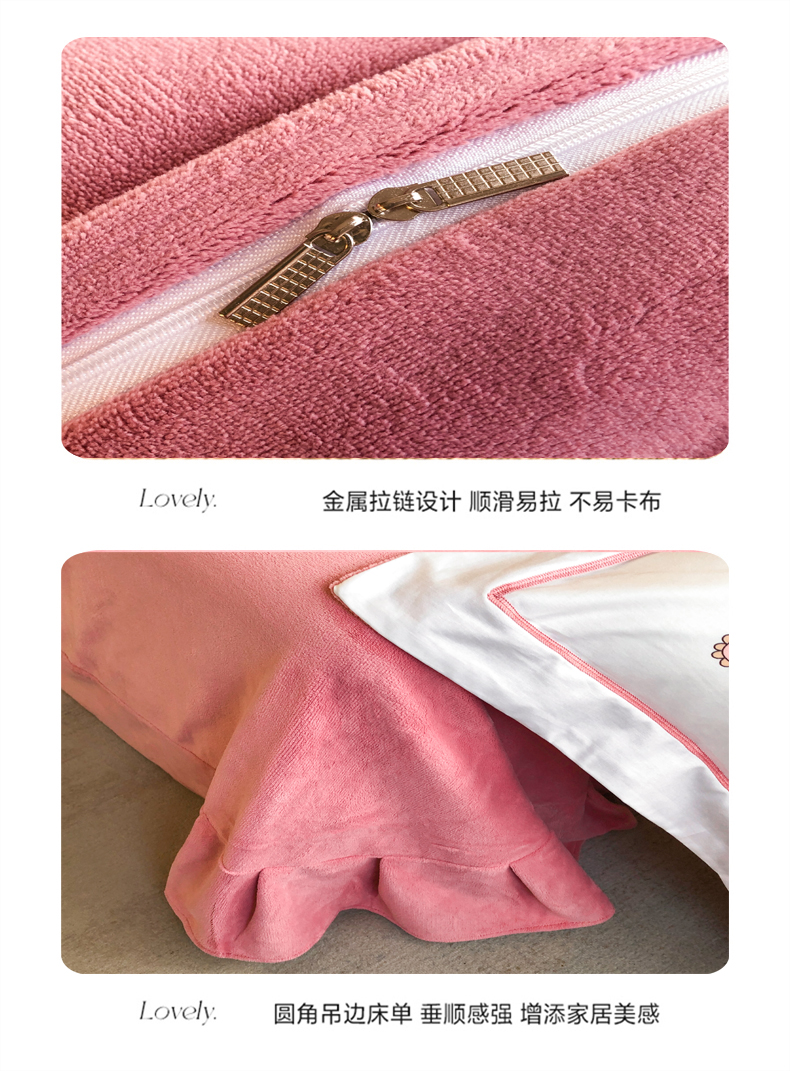 (总)大宽边A纯棉B牛奶绒四件套133*72全棉加绒法兰宝宝兔绒水晶棉加绒四件套-夹棉款