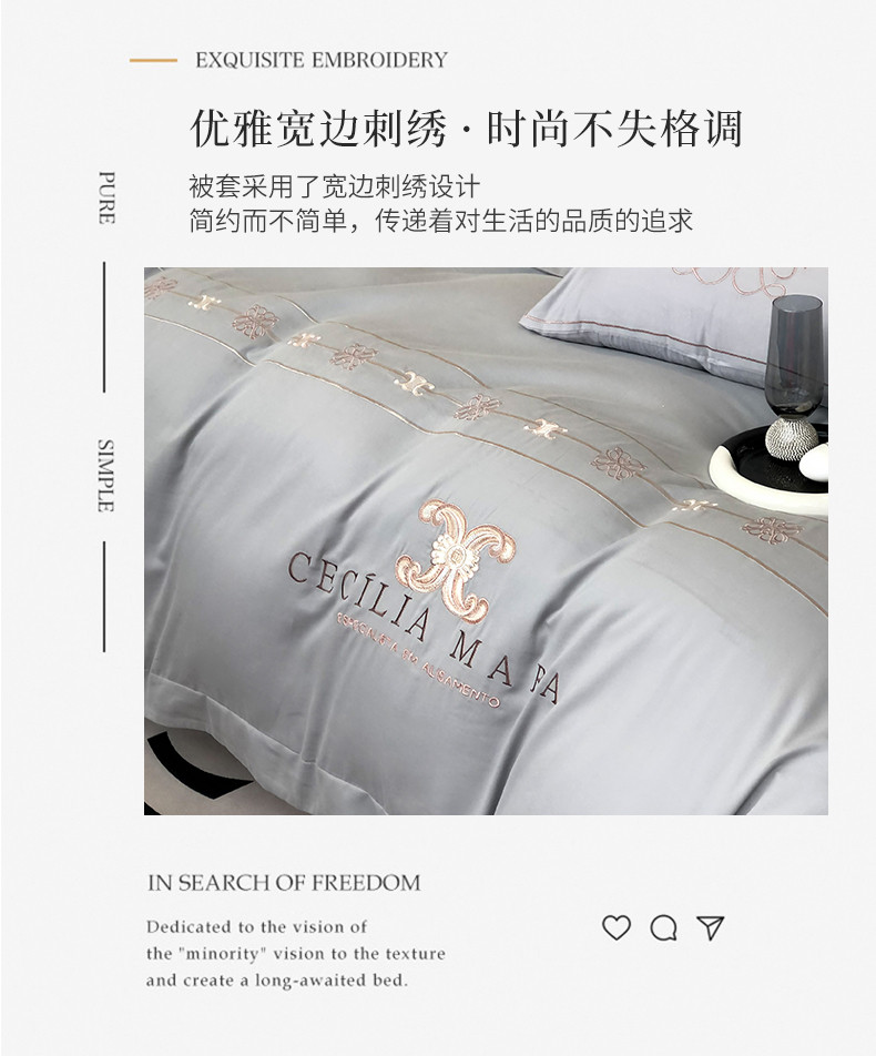 (总)家居1号家纺 2025新款长绒棉边条刺绣四件套威尼斯系列,威尼斯-高级灰,威尼斯-蝴蝶粉,威尼斯-香槟金,威尼斯-香芋紫,威尼斯-象牙白,威尼斯-月光蓝
