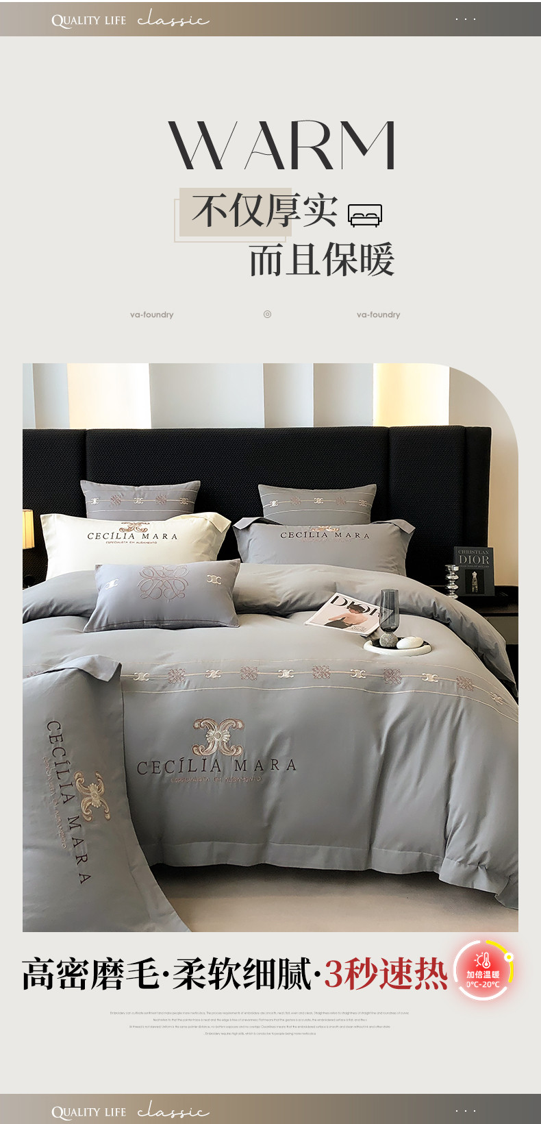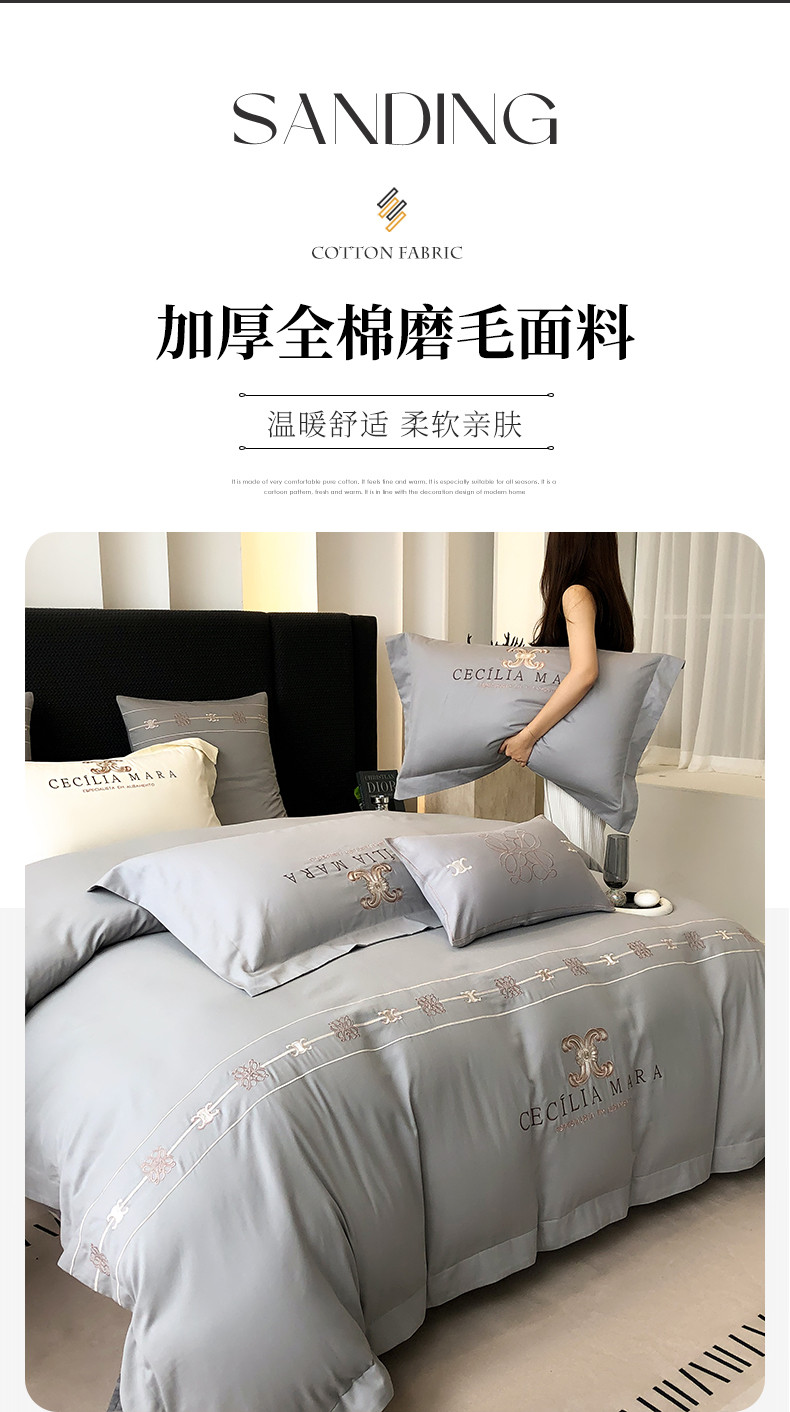 商品名称:家居1号家纺 2024新款海莉全棉磨毛四件套 海莉-绅士灰