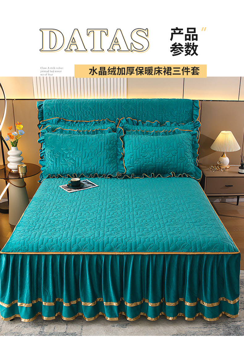 新款水晶绒加厚保暖单床裙-盛世花颜 盛世花颜-翡翠绿