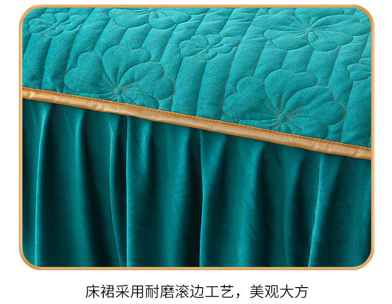 商品名称:新款水晶绒加厚保暖单床裙-盛世花颜 盛世花颜-翡翠绿