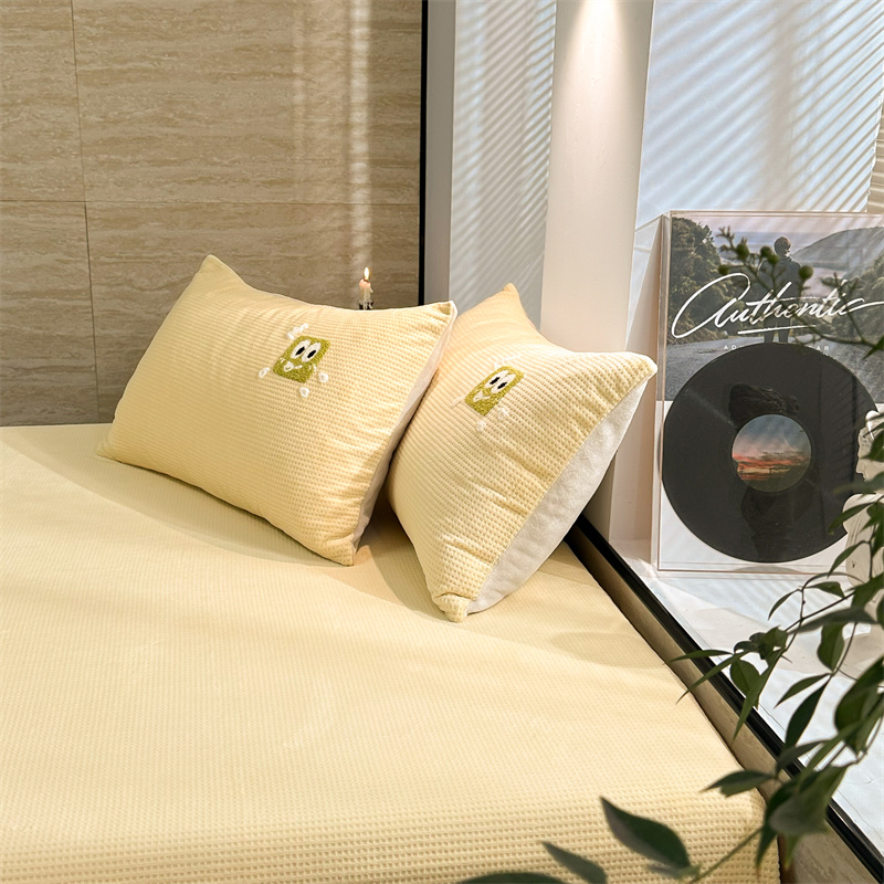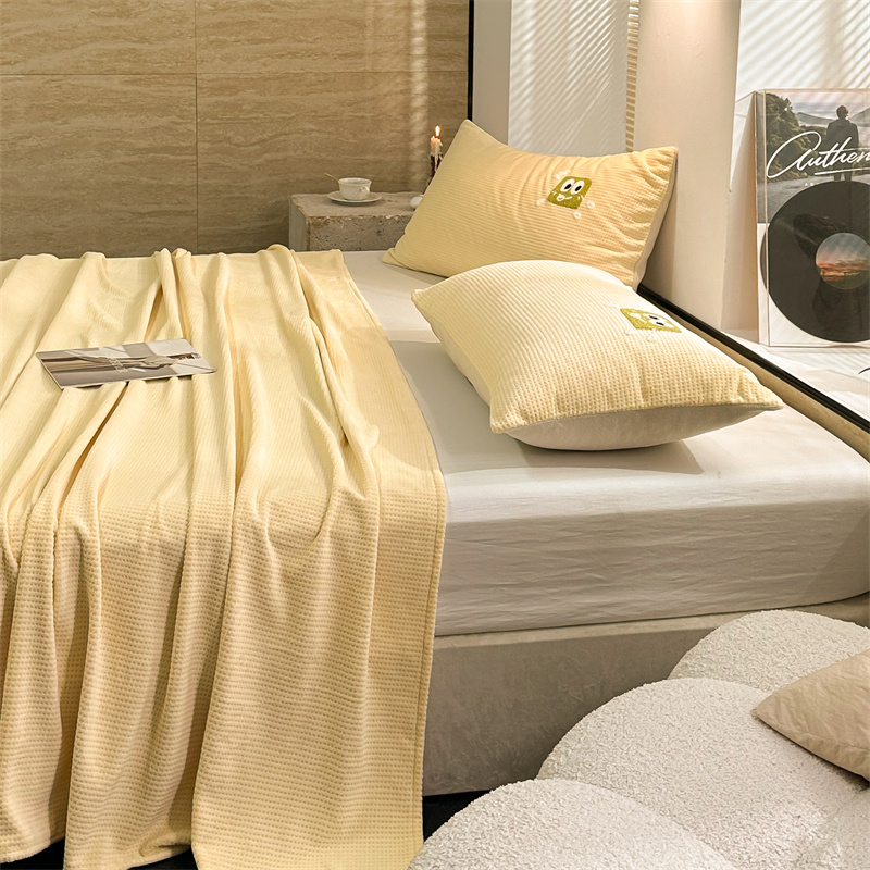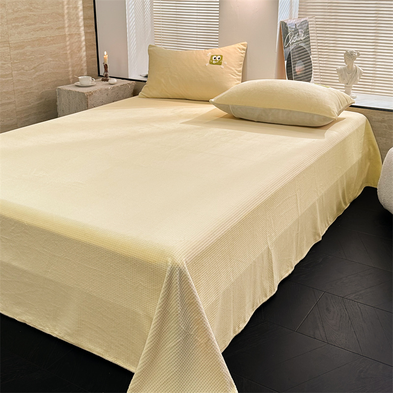 商品名称:洋铭区(原狠狠爱) 2023新款华夫格单品绒床单 华夫格-暖黄
